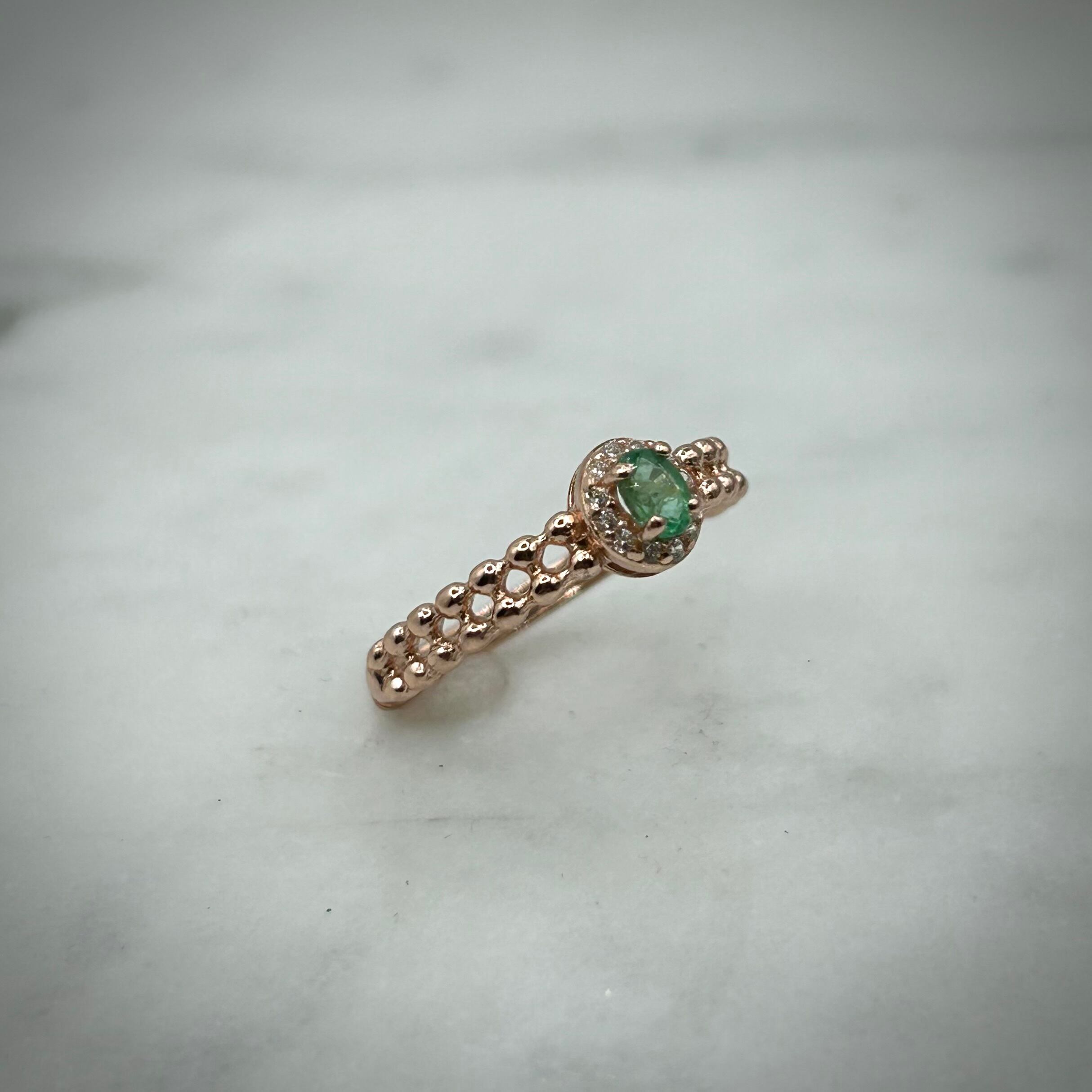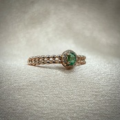 ピンクゴールドカラーにエメラルドが映える素敵なリングです。