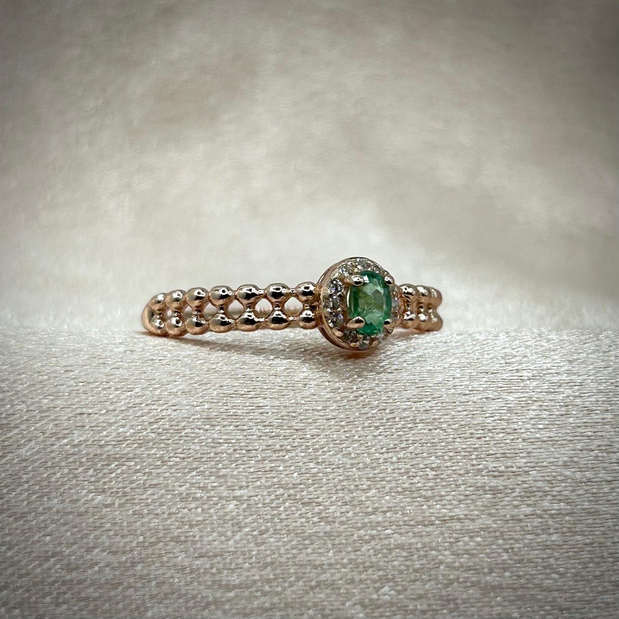 シルバー製ピンクゴールドカラー 、エメラルドの粒リング。