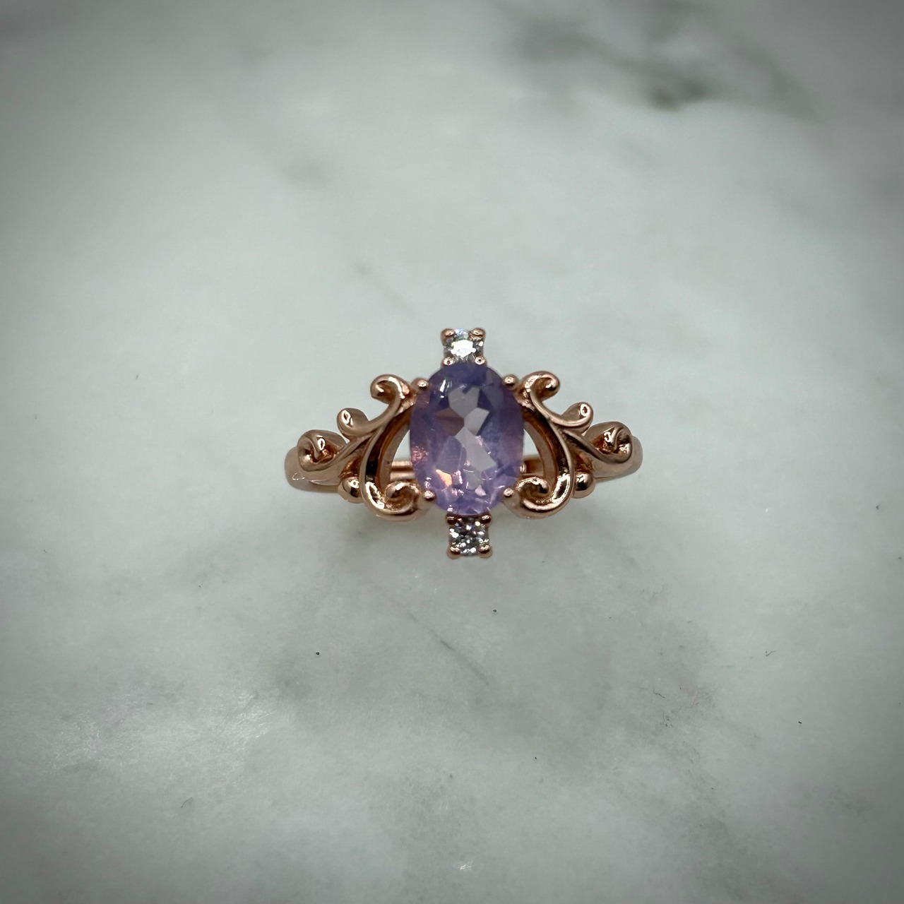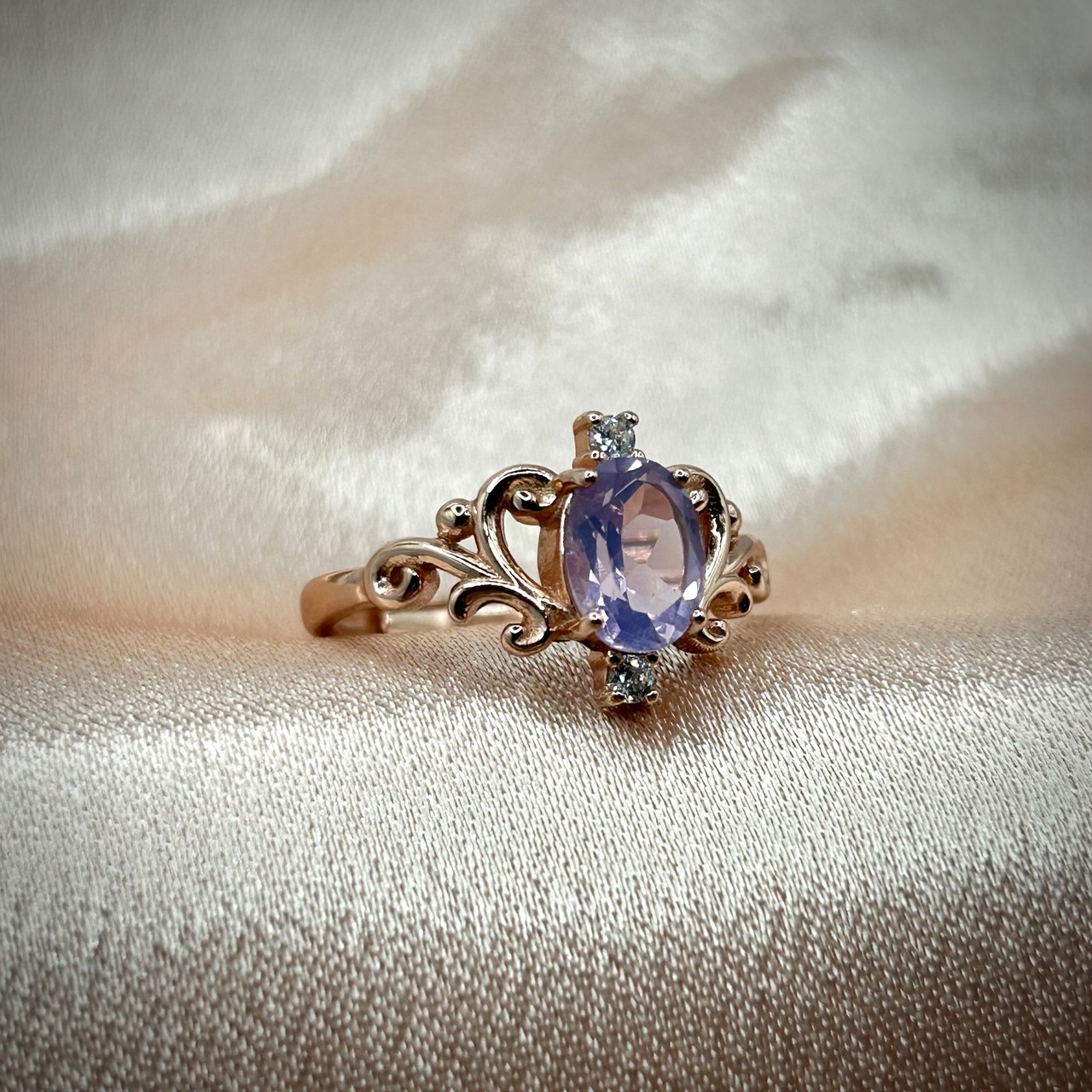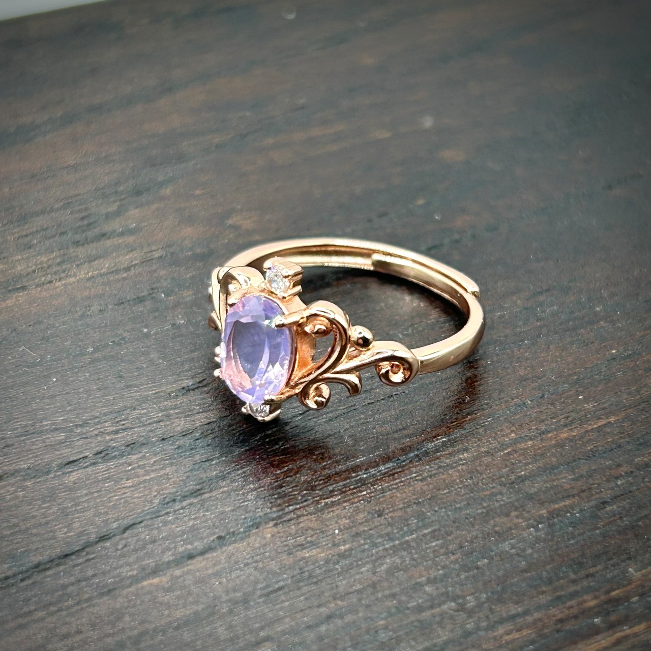 乳白色で淡いパープルカラーのスコロライトを使用した、美しい曲線デザインで高貴な印象のロイヤルリング。