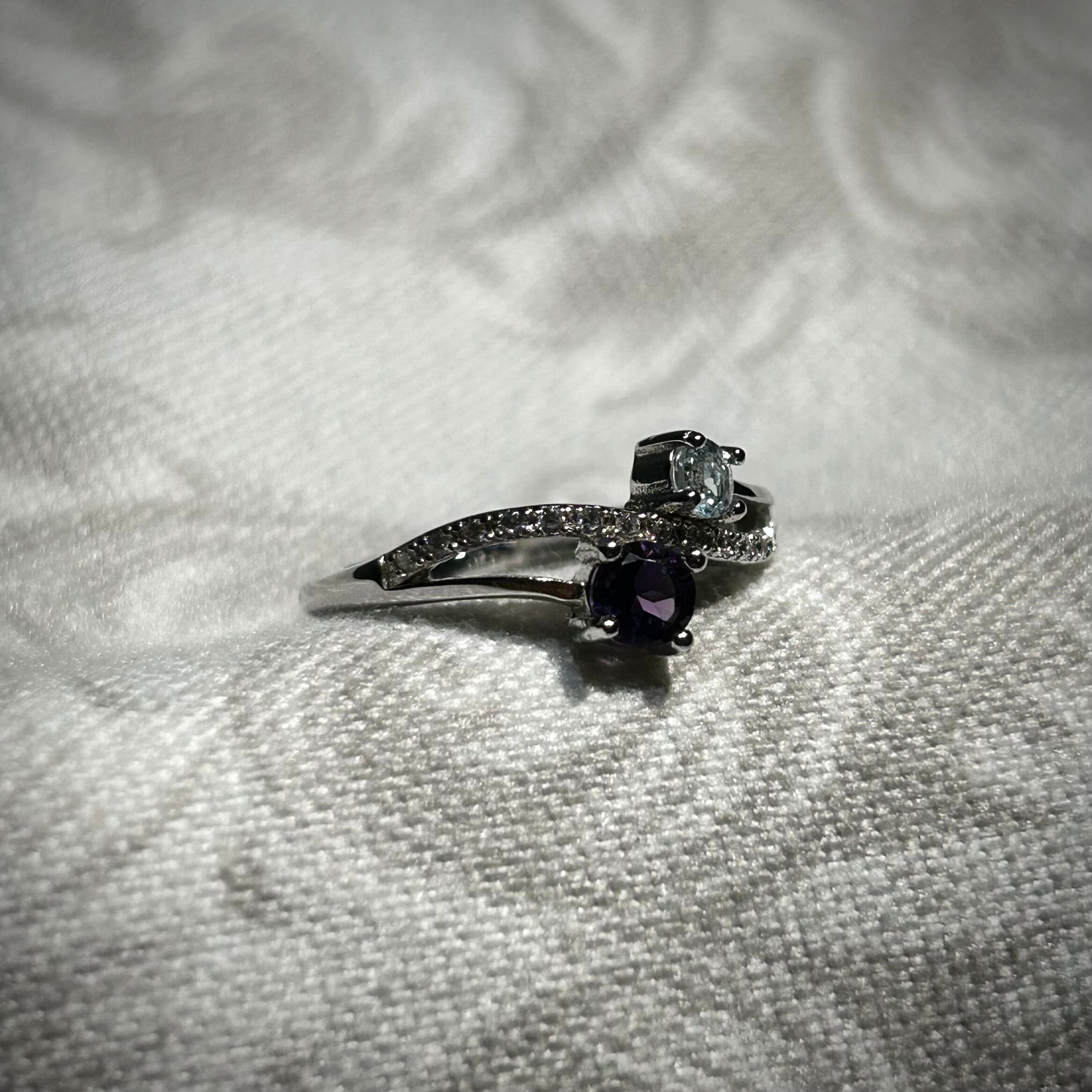 シルバー製、アメシスト&アクアマリンのツインリング。