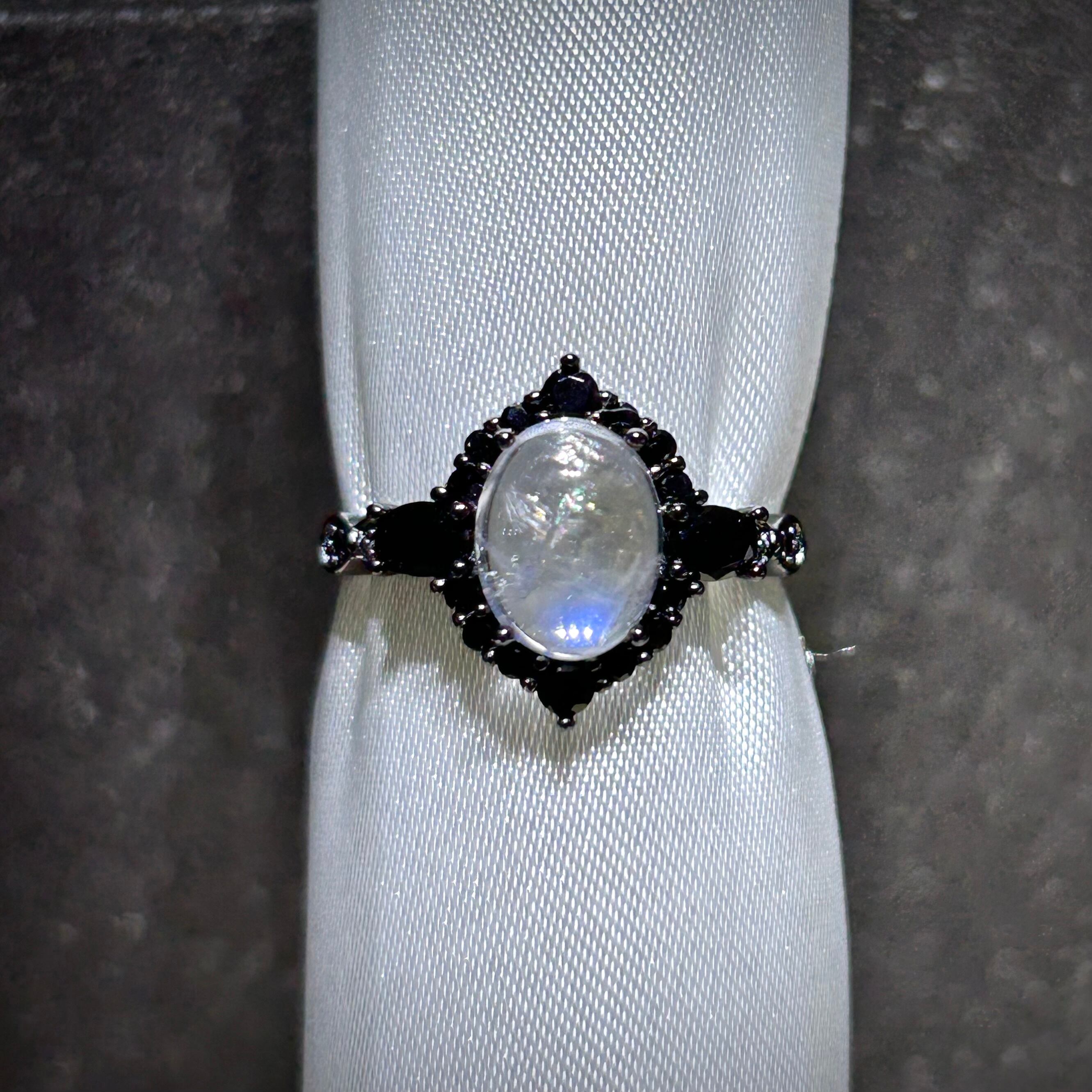 シルバー製ブラックカラー、ブルームーンストーンのミッドナイトリング。