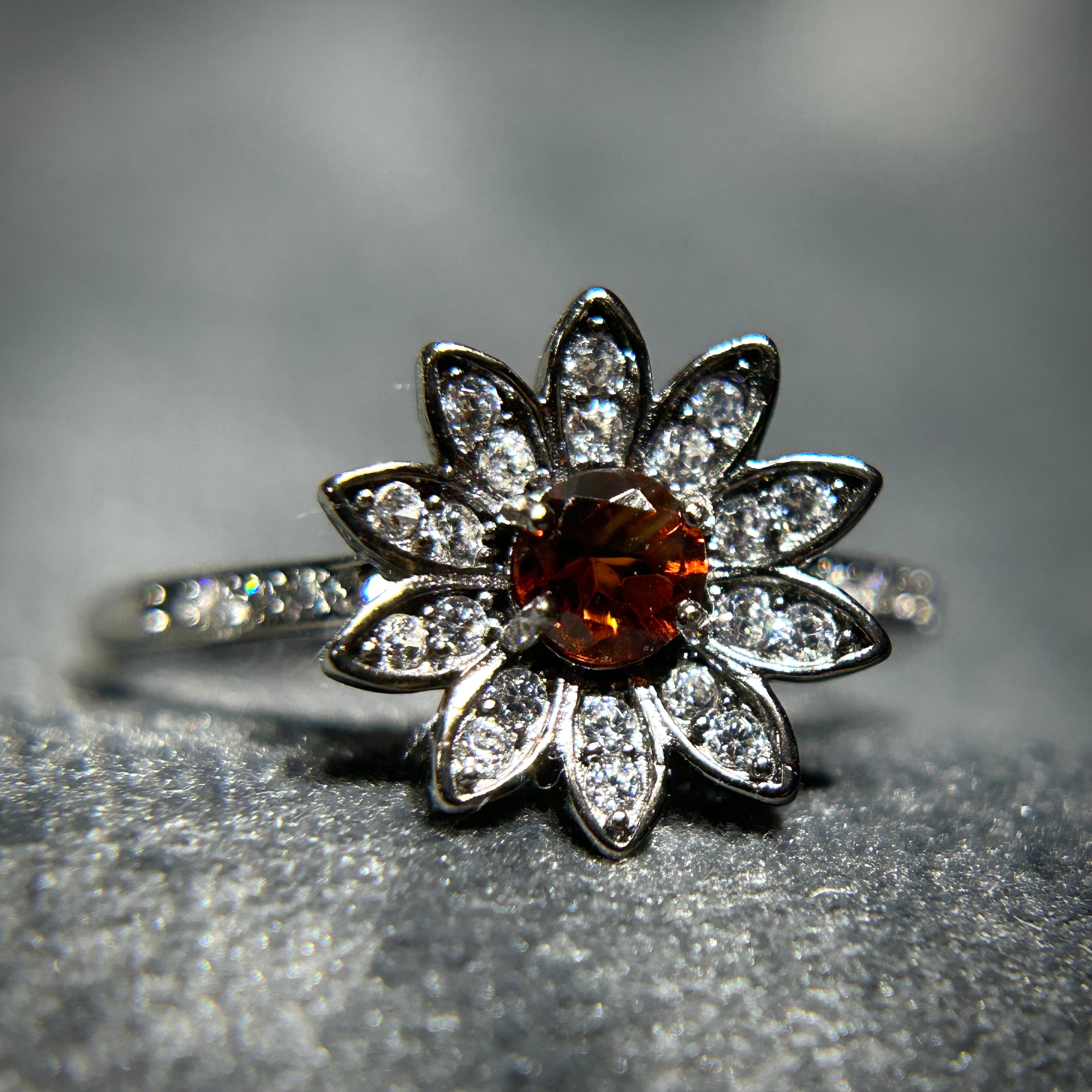 シルバー製ブラックカラー、マデイラシトリンのフラワーリング。