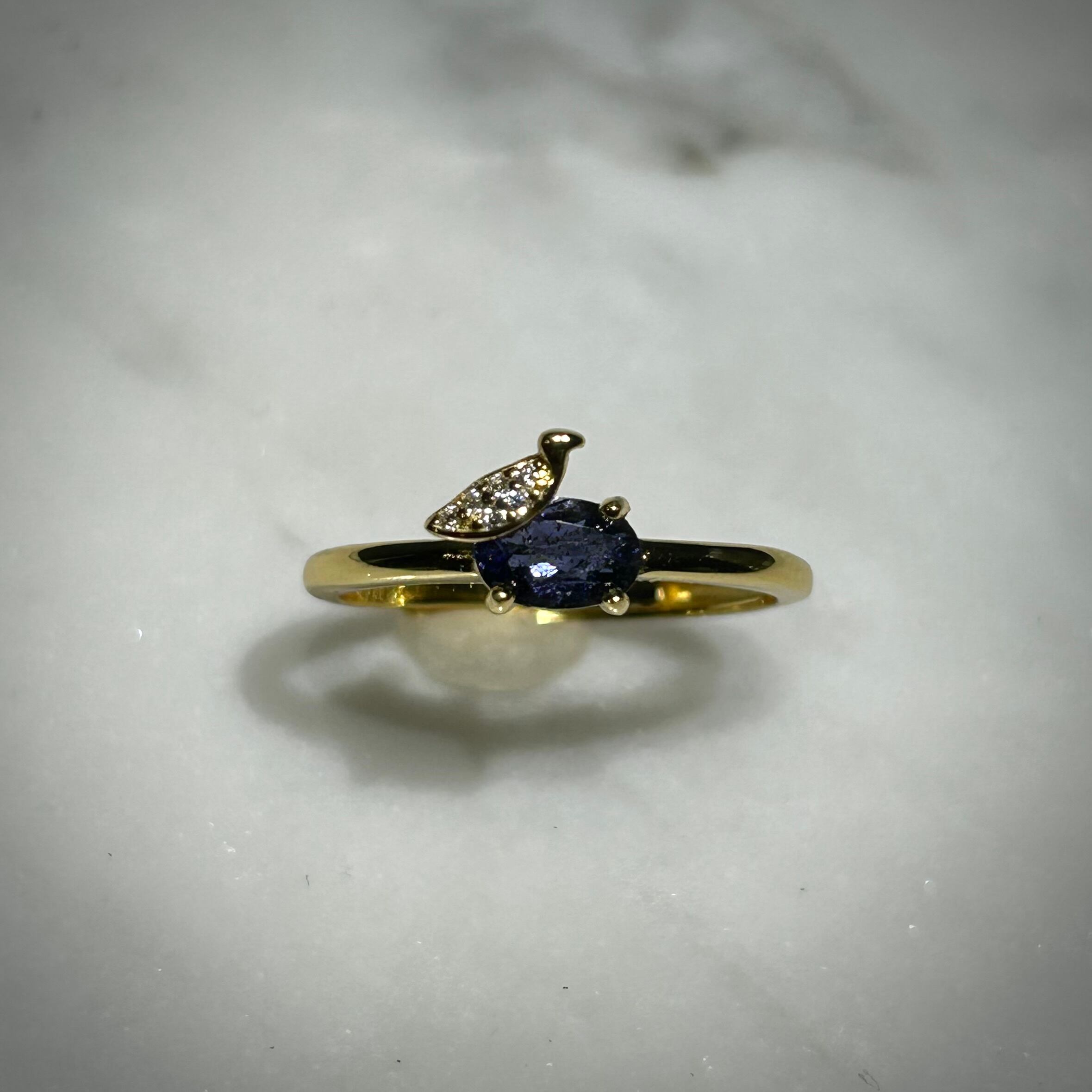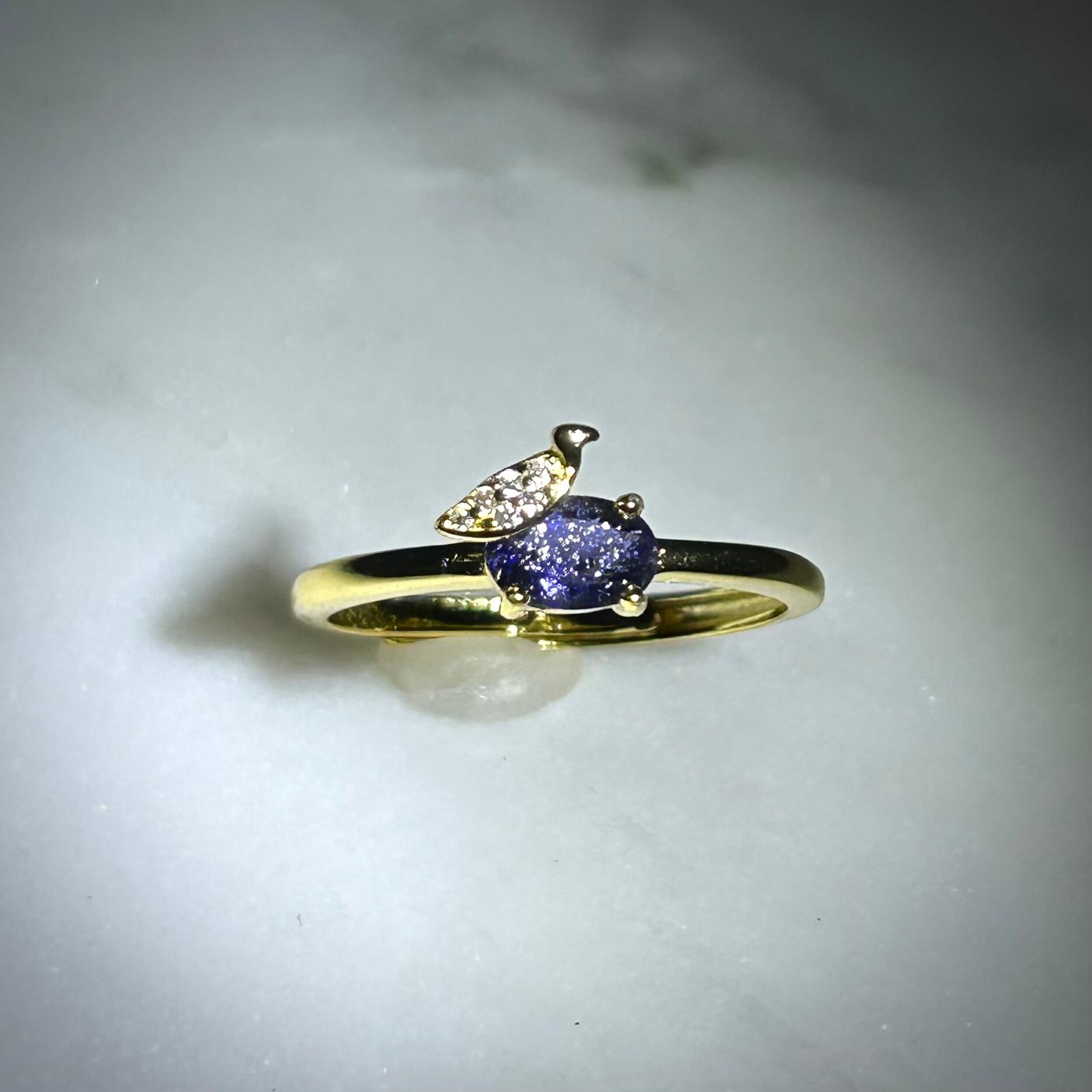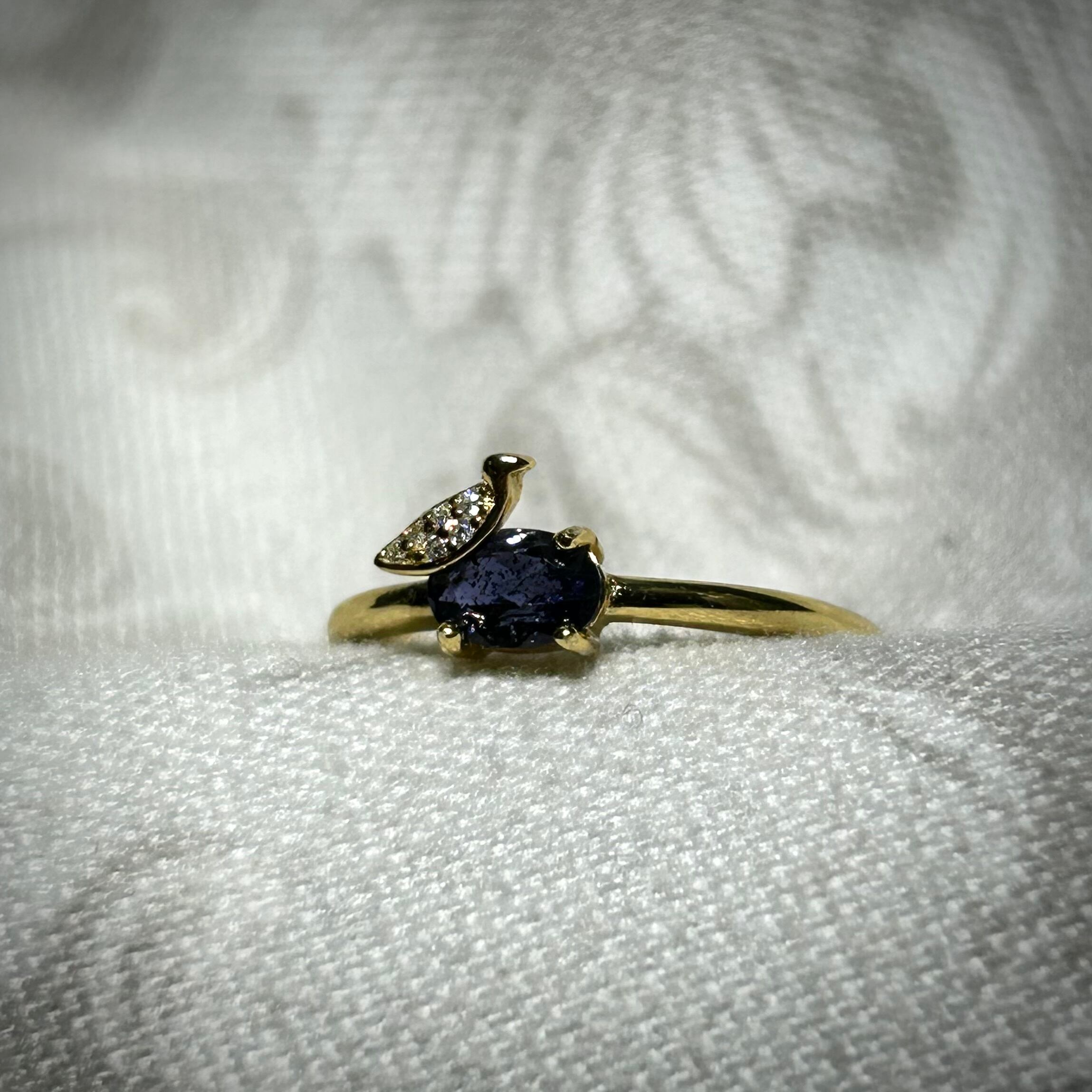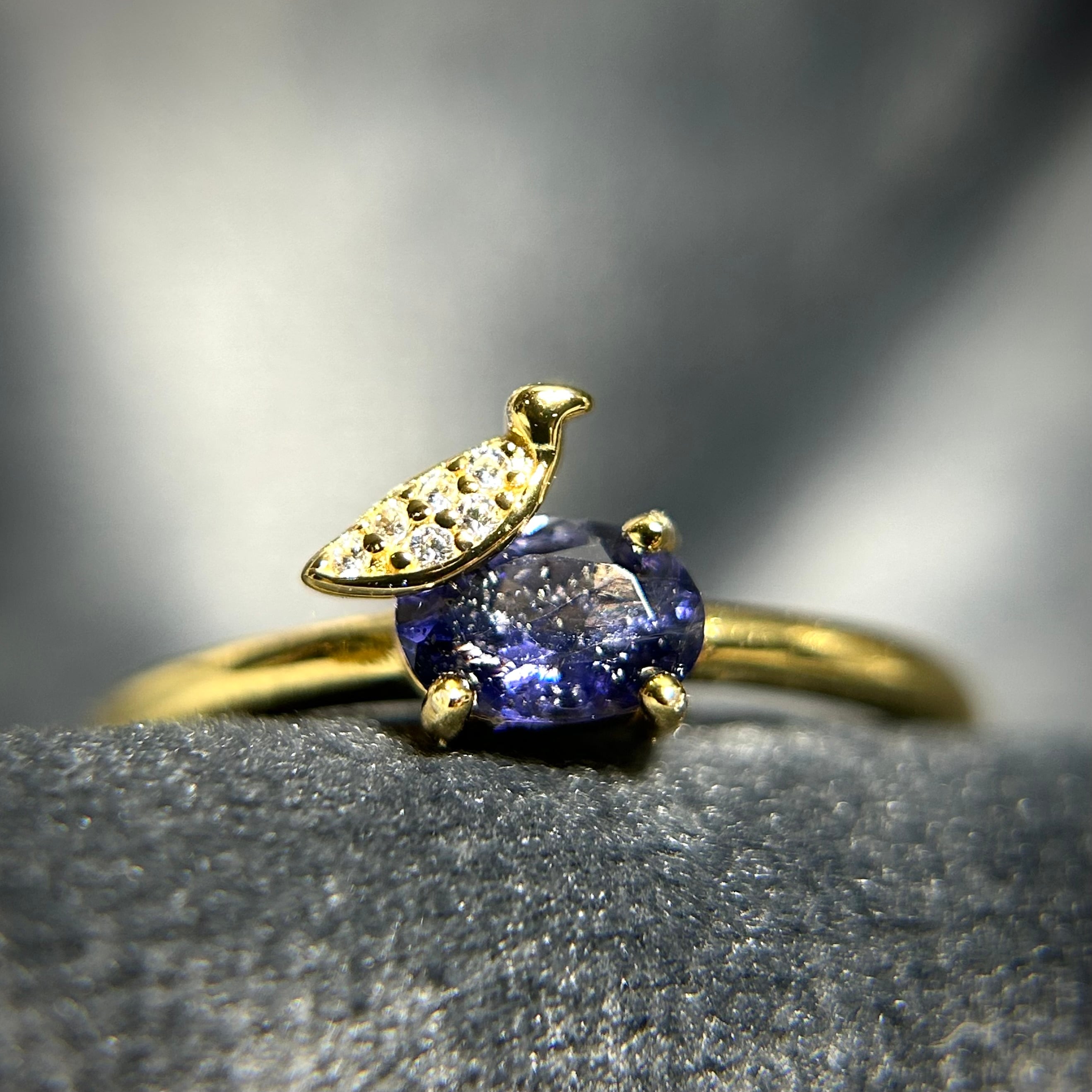 ゴールドカラーにも映え、可愛い鳥と美しいアイオライトサンストーンを楽しめるリングです。