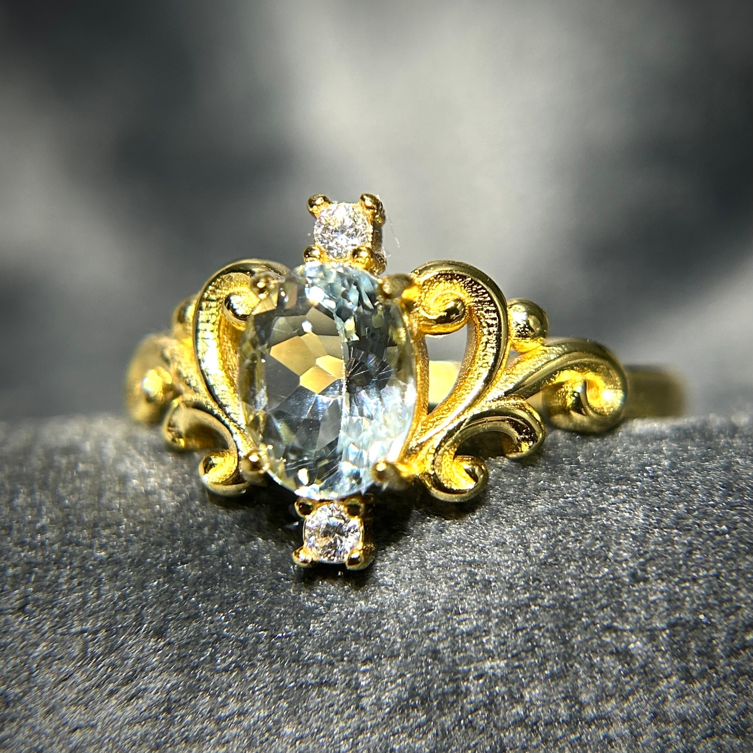 シルバー製ゴールドカラー、アクアマリンのロイヤルリング。