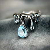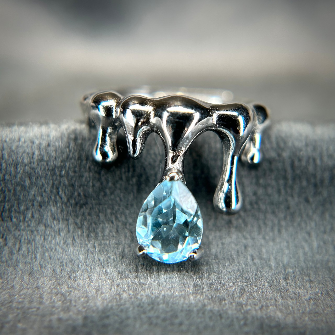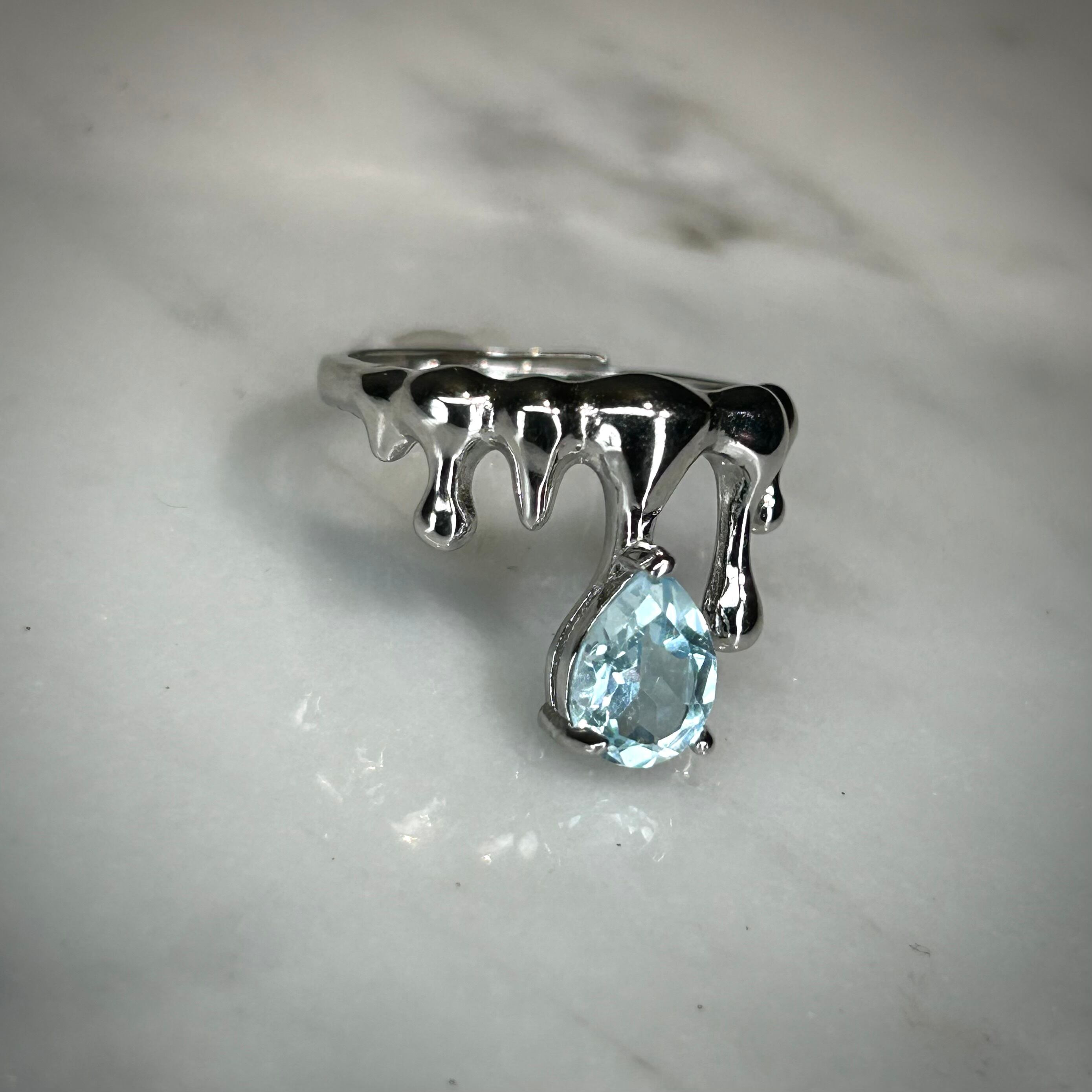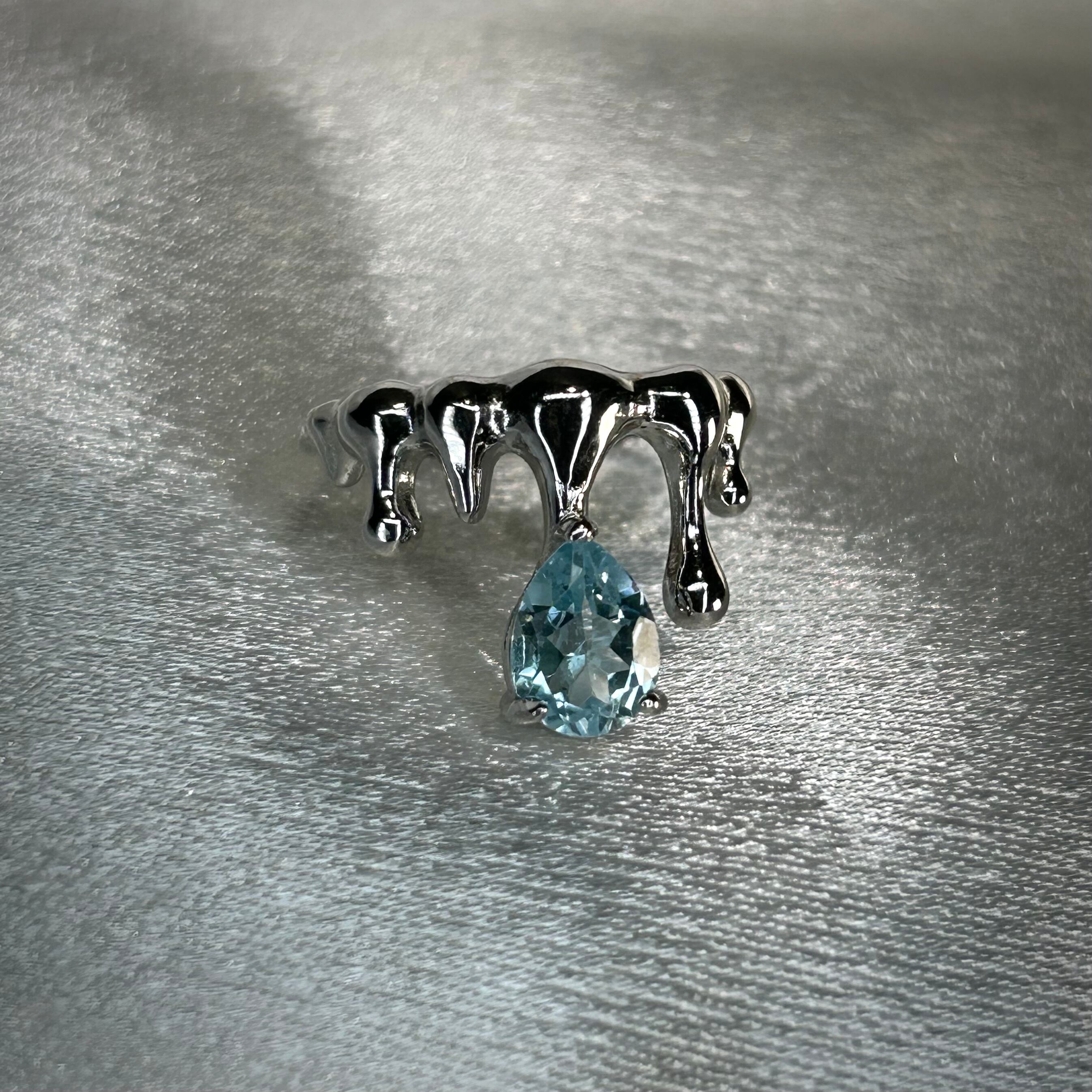 液体が滴るようなクールなデザインに、美しく煌めくトパーズを合わせることで、甘辛ミックスで個性のあるリングとなりました。