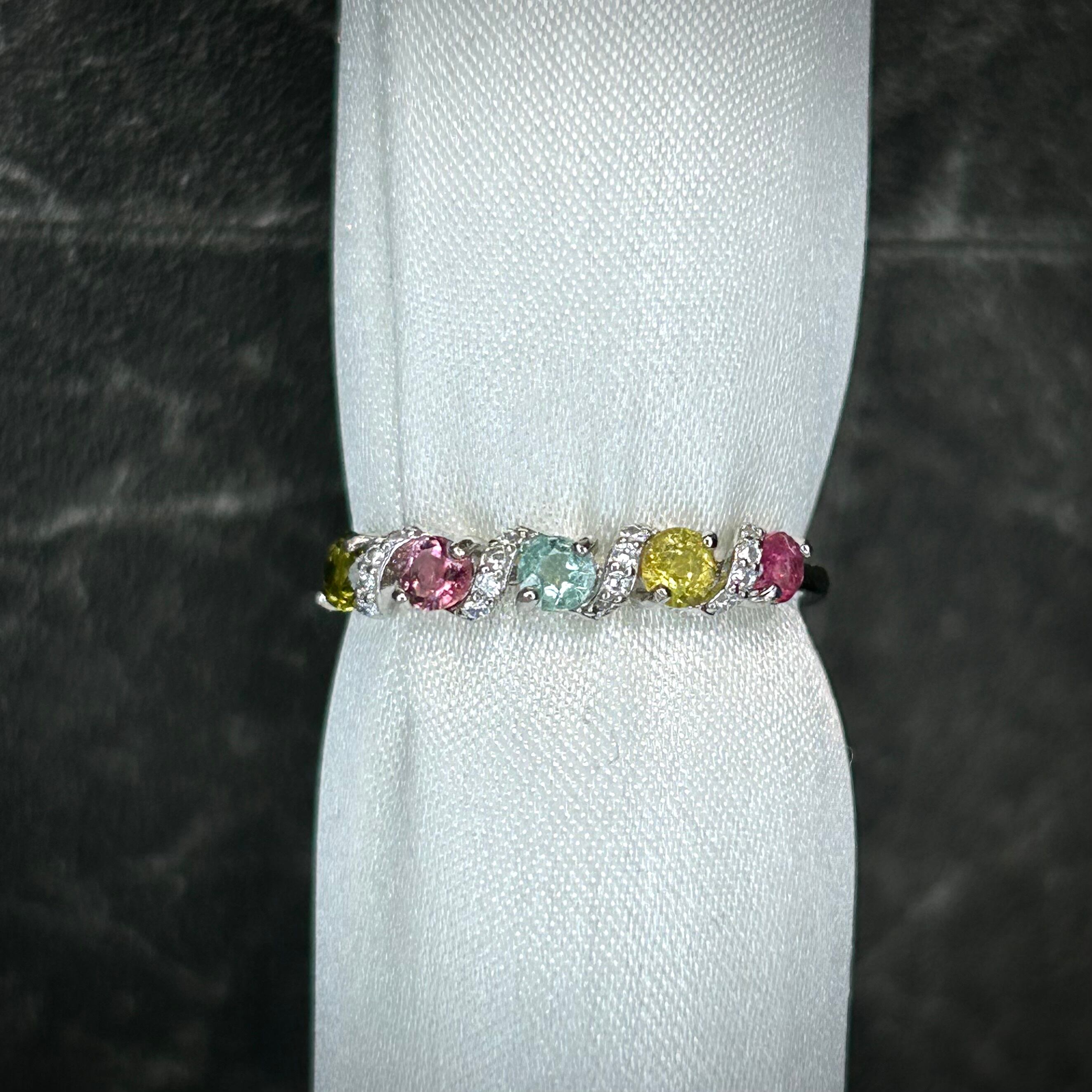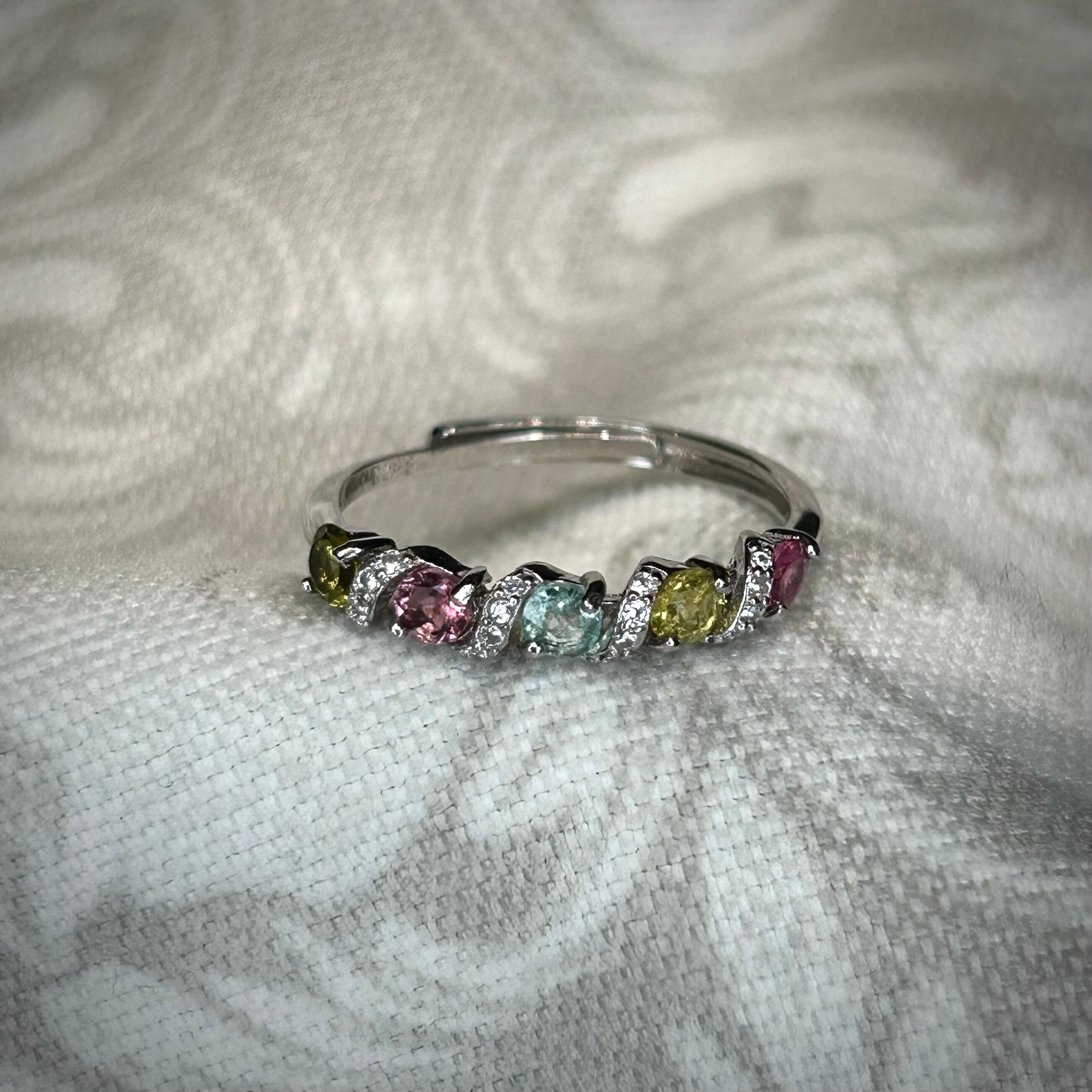 シルバー製 トルマリン 5石スパイラルリング 10月誕生石 フリーサイズ