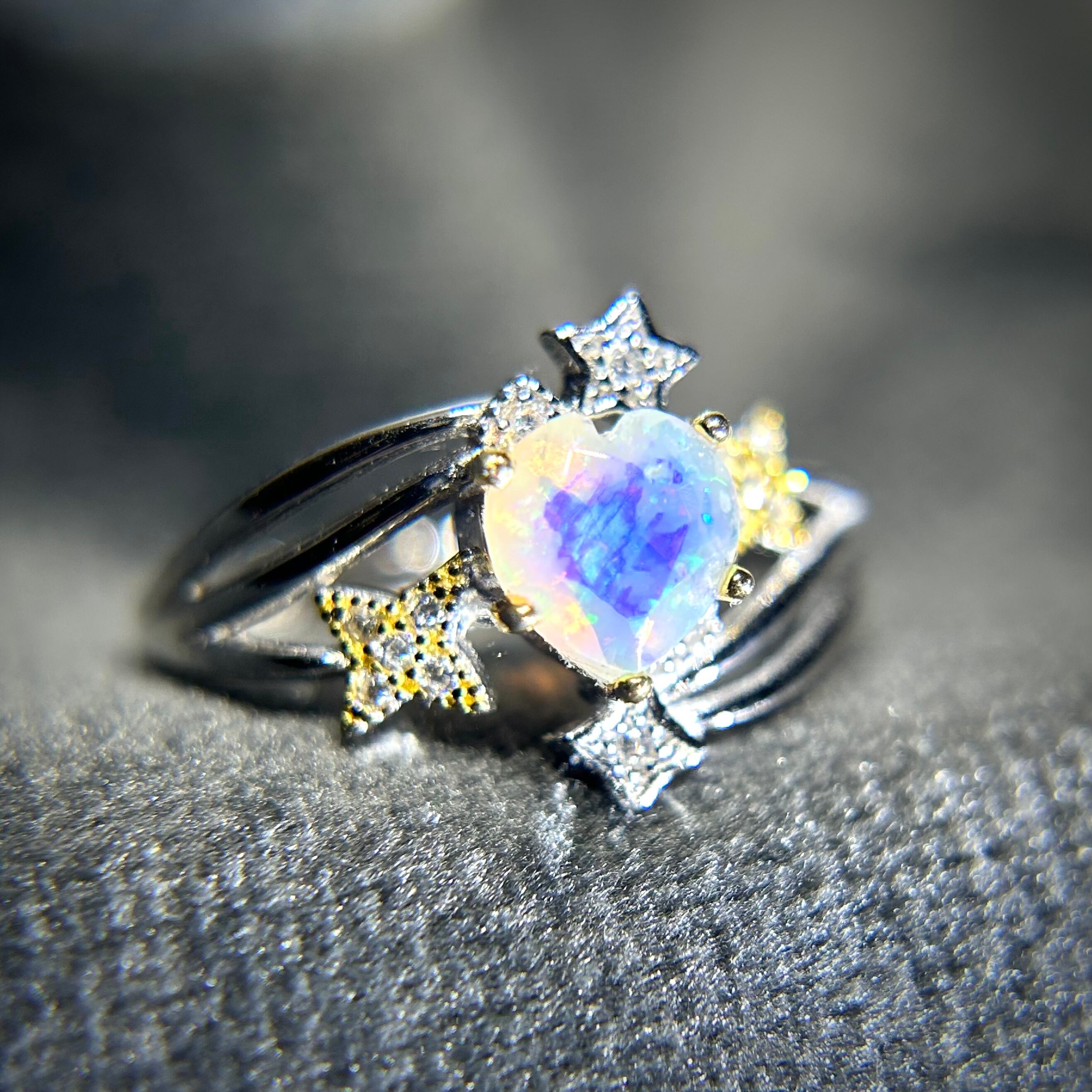 シルバー製コンビカラー オパール ときめきリング 10月誕生石 フリーサイズ