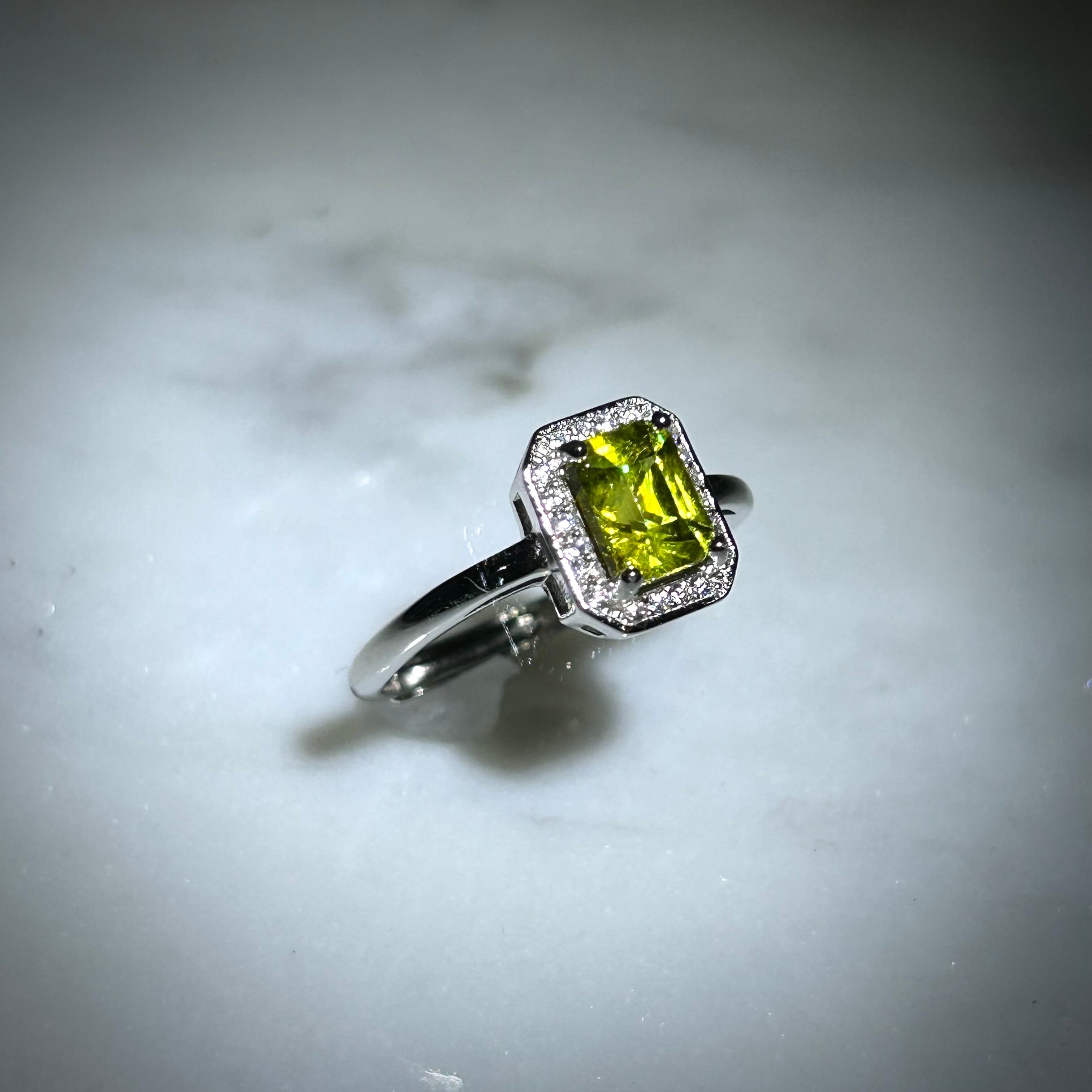 シルバー製 スフェーン レクタングルリング 7月誕生石 フリーサイズ