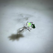 シルバー製 オパール&ダイオプサイト ダブルハートリング フリーサイズ