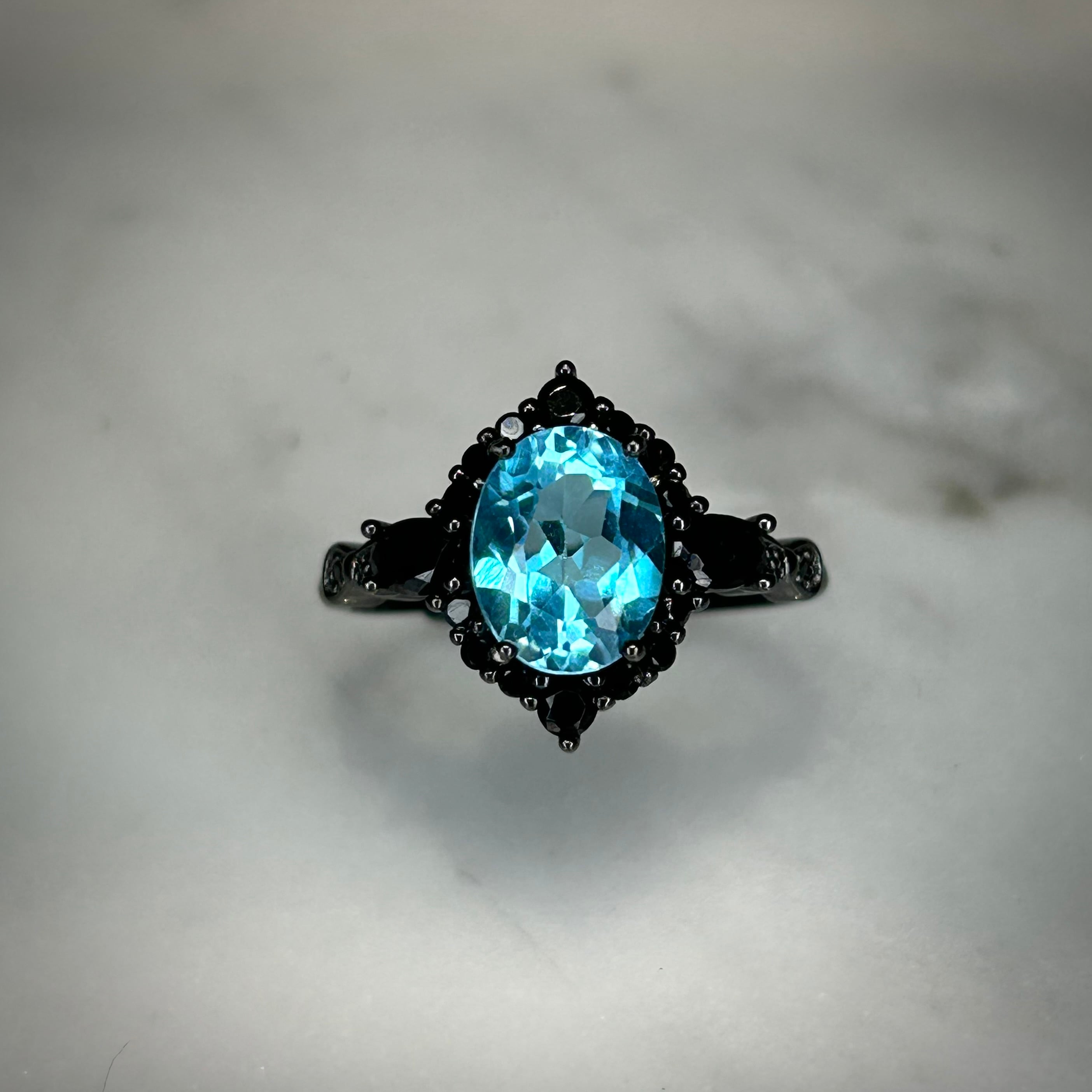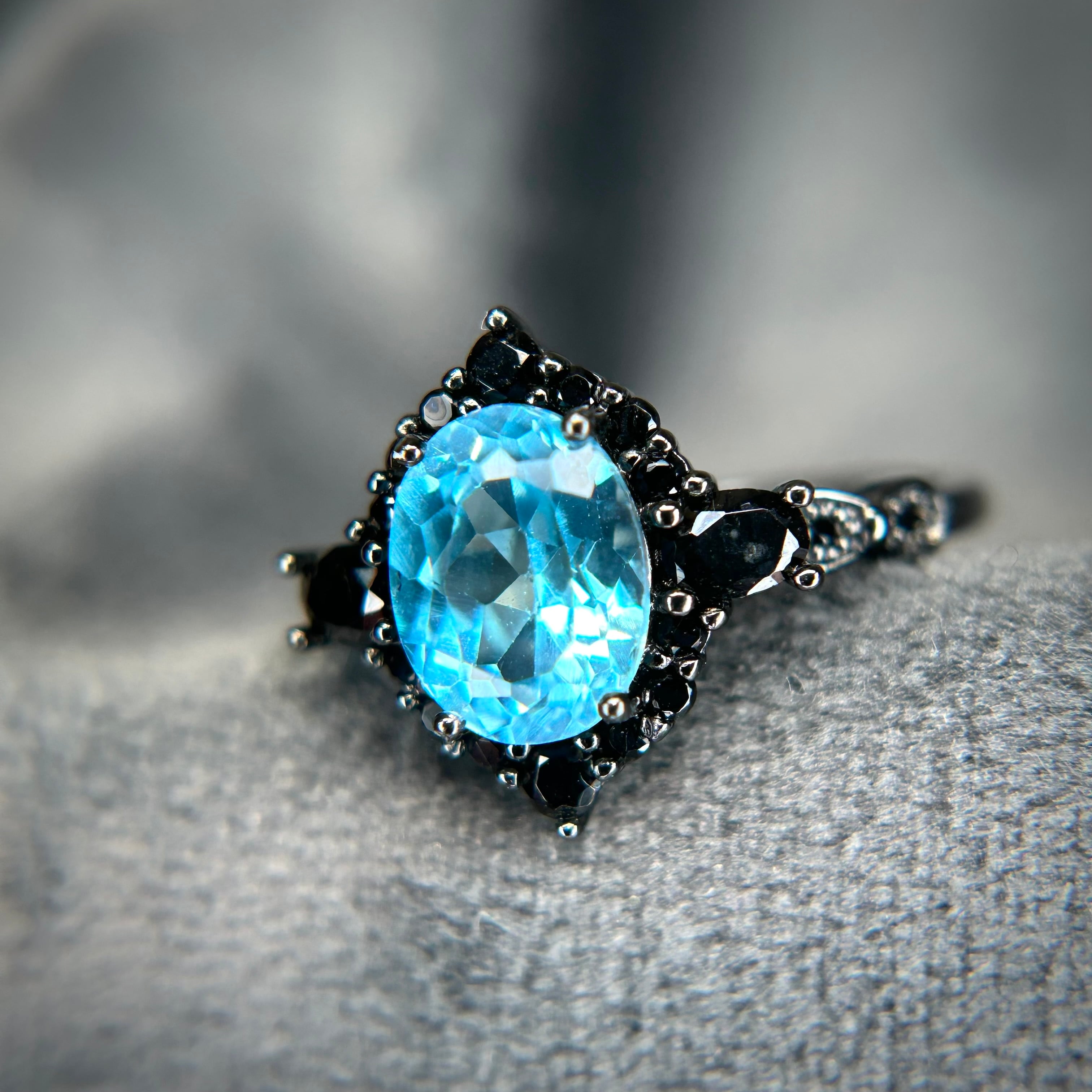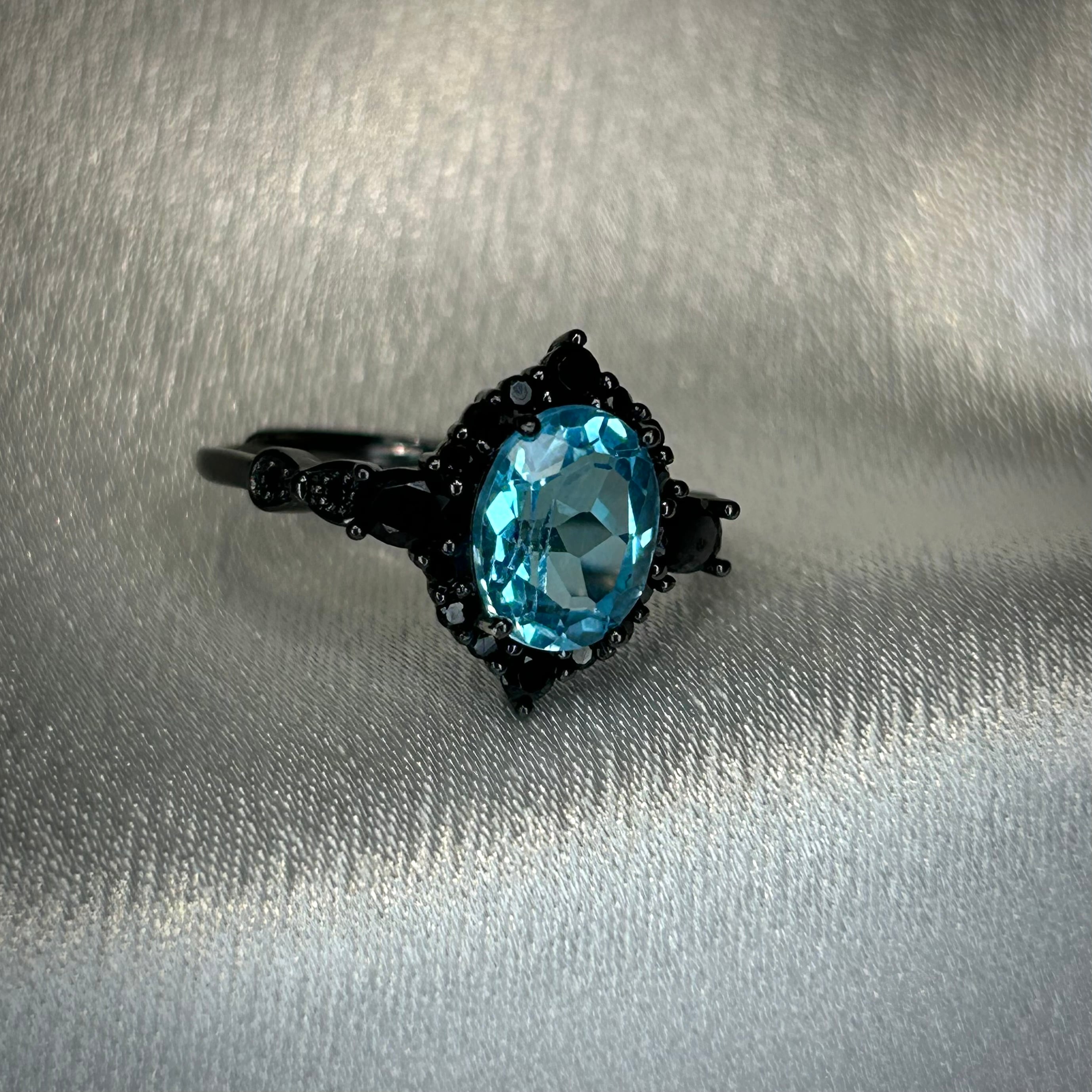シルバー製ブラックカラー、スイスブルートパーズのミッドナイトリング。