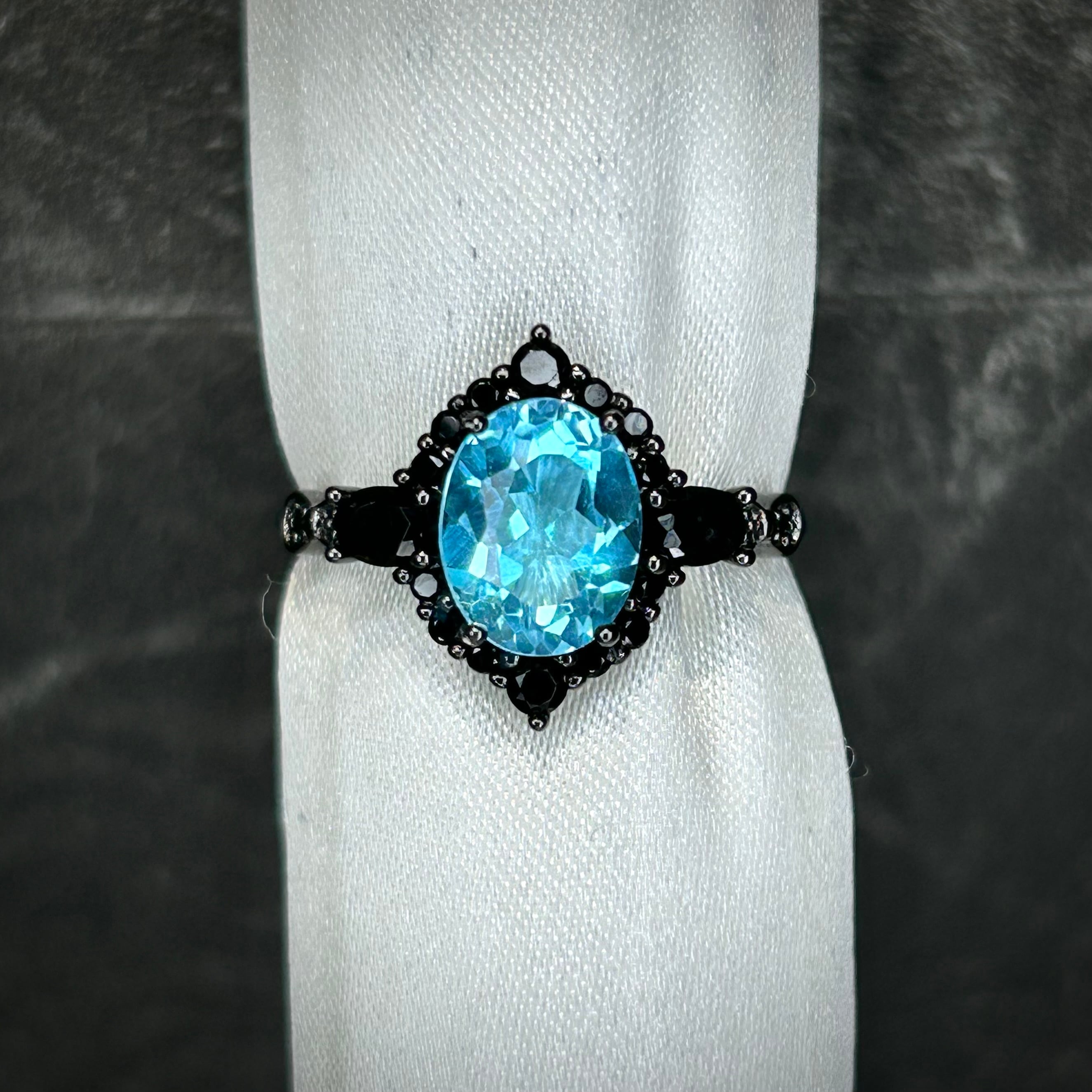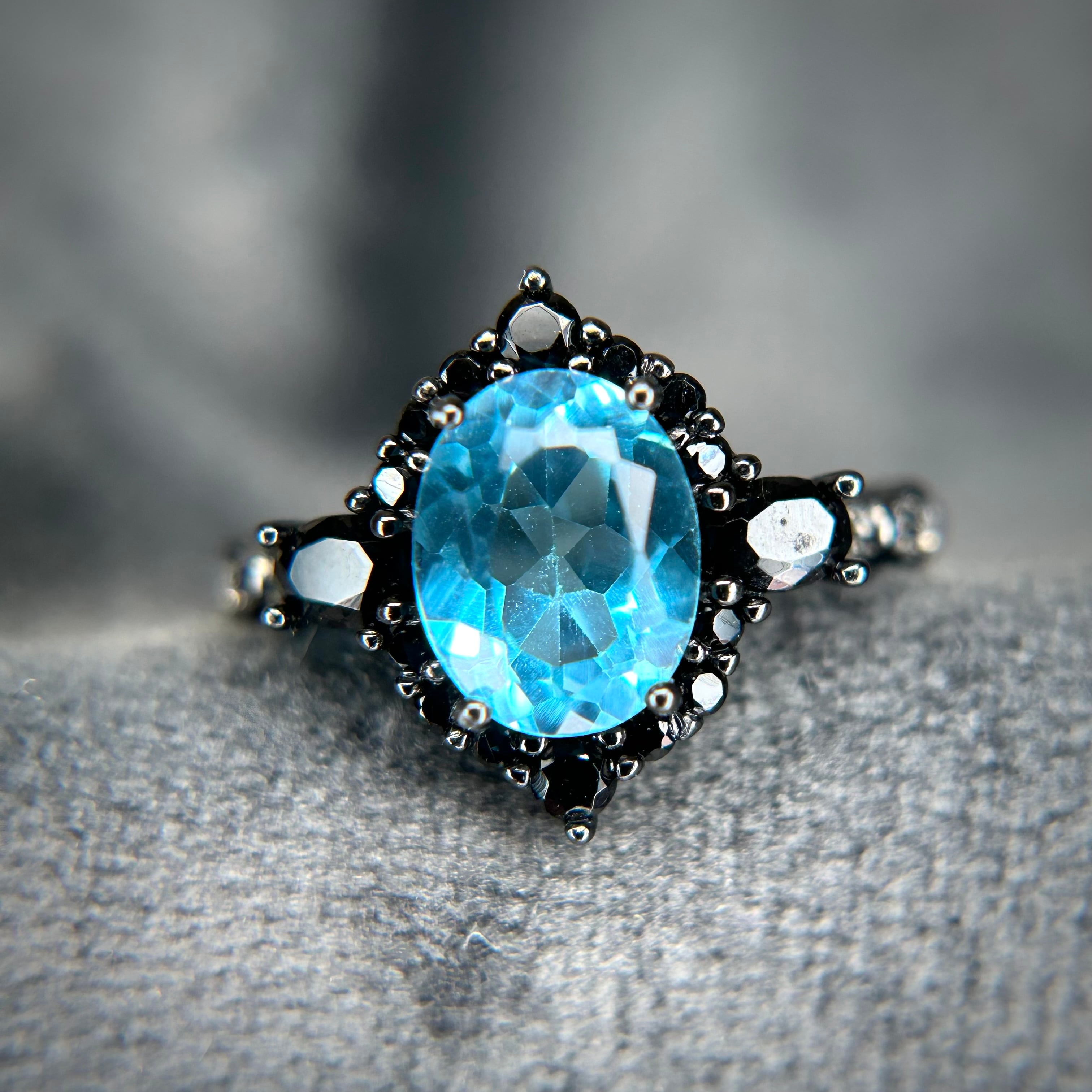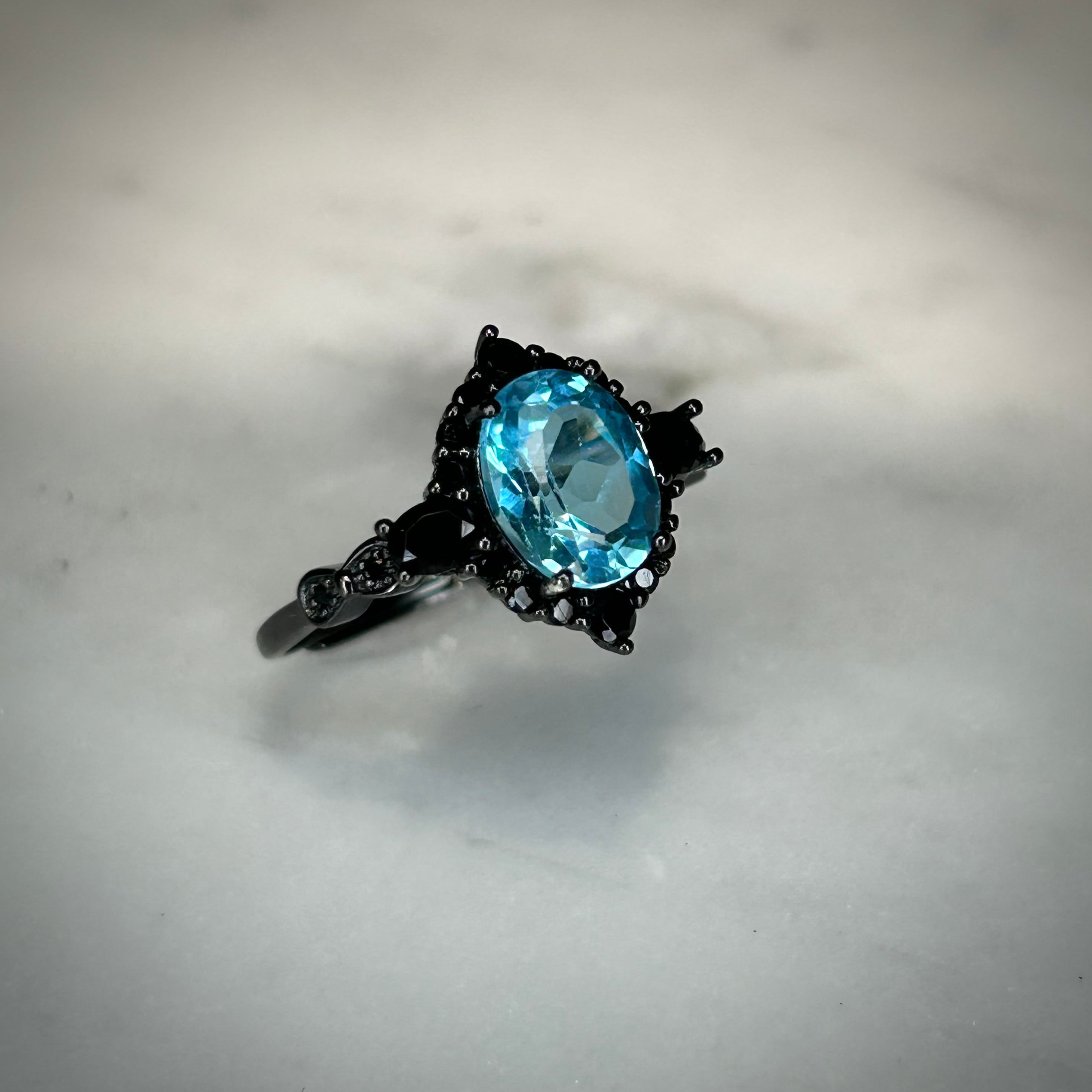 シルバー製ブラックカラー、スイスブルートパーズのミッドナイトリング。