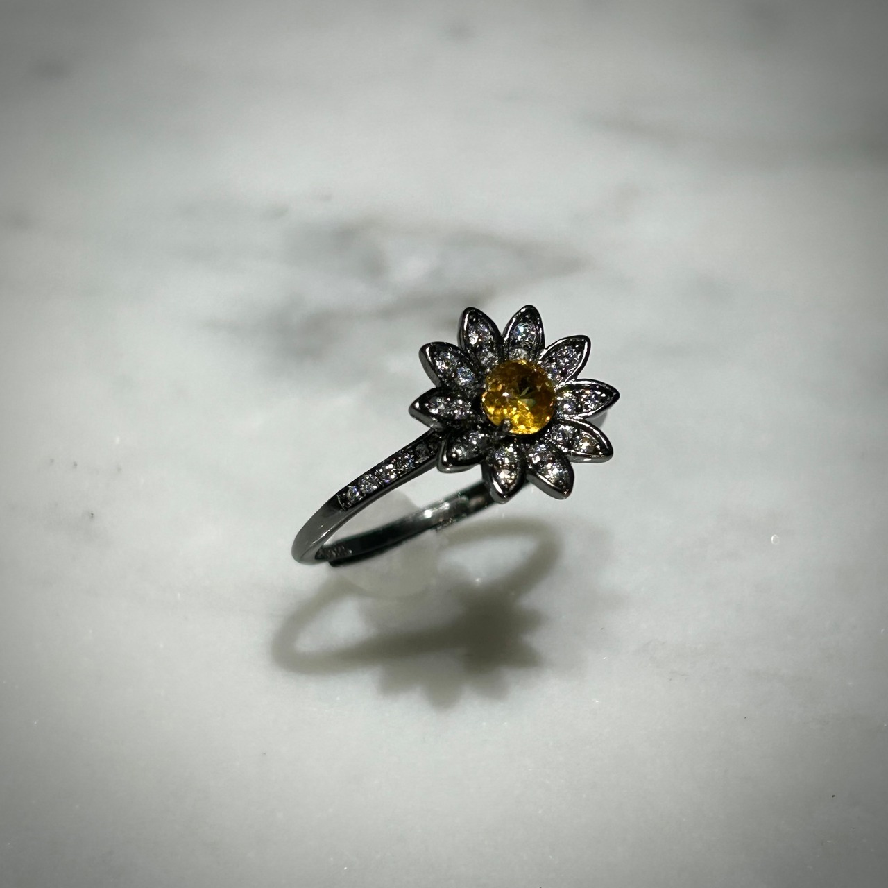 シルバー製ブラックカラー、スフェーンのフラワーリング。