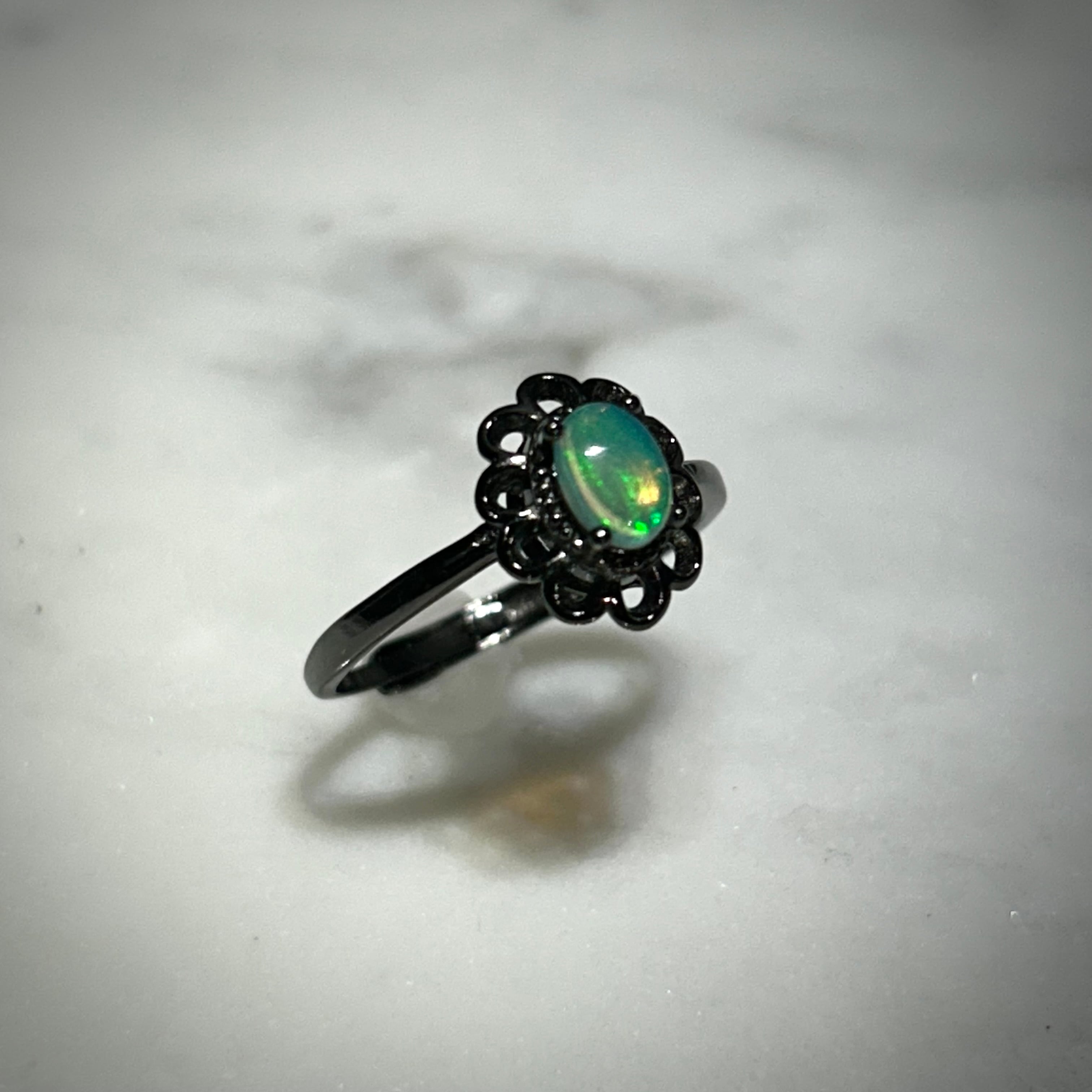シルバー製ブラックカラー、オパールのダークフラワーリング。