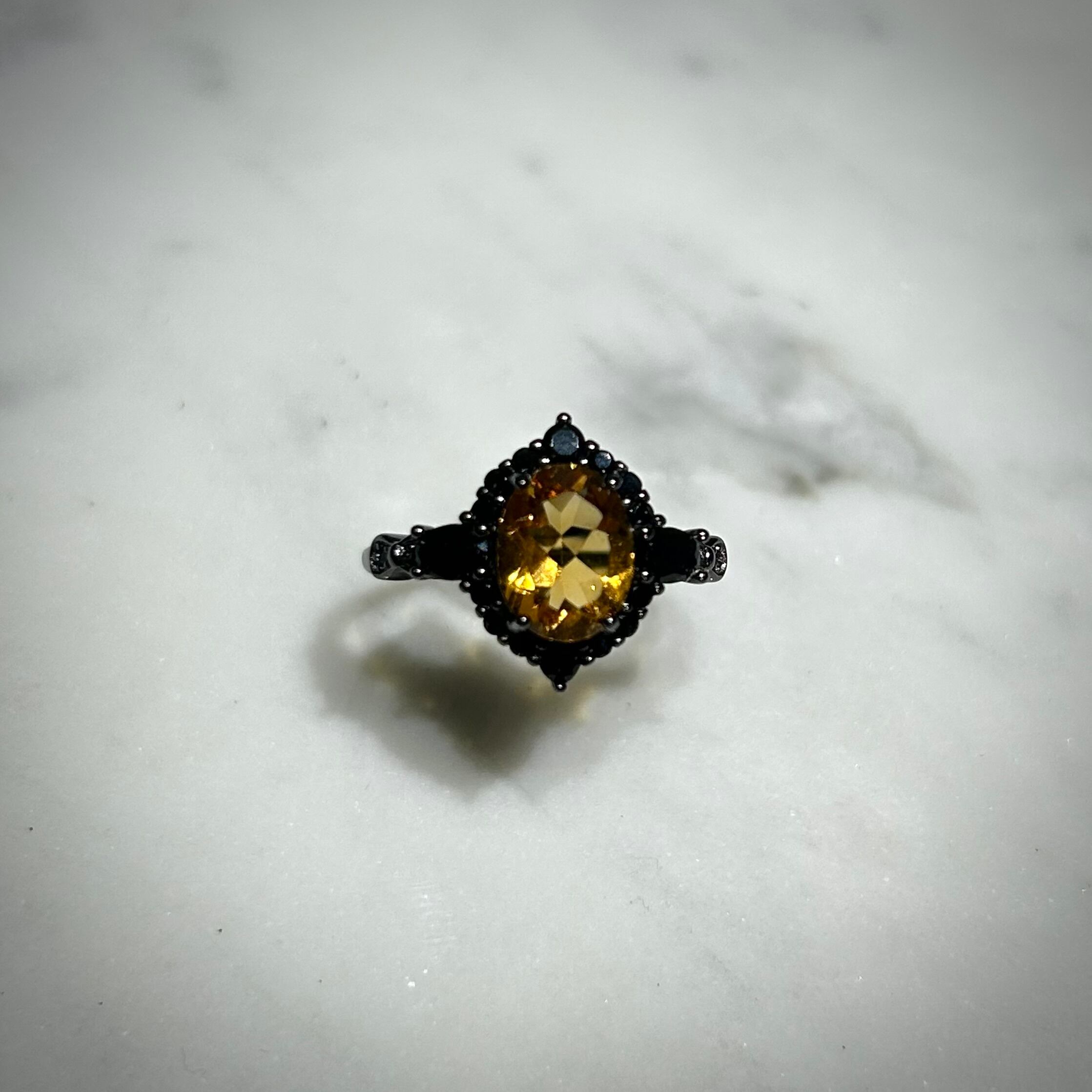 シルバー製ブラックカラー、シトリンのミッドナイトリング。
