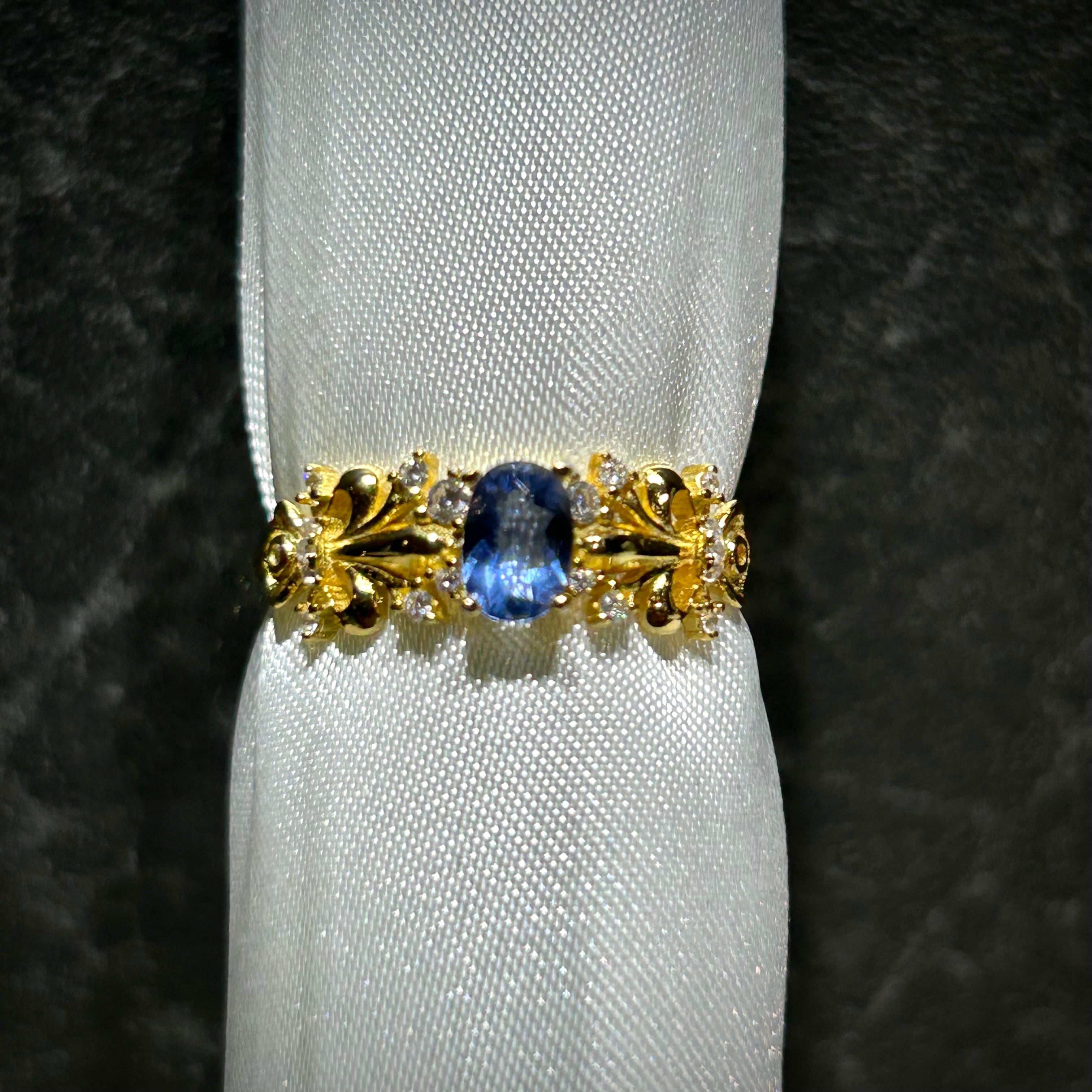 中石をしっかりと引き立ててつつ、存在感のある両脇の百合の紋章デザインが素敵なリングです。