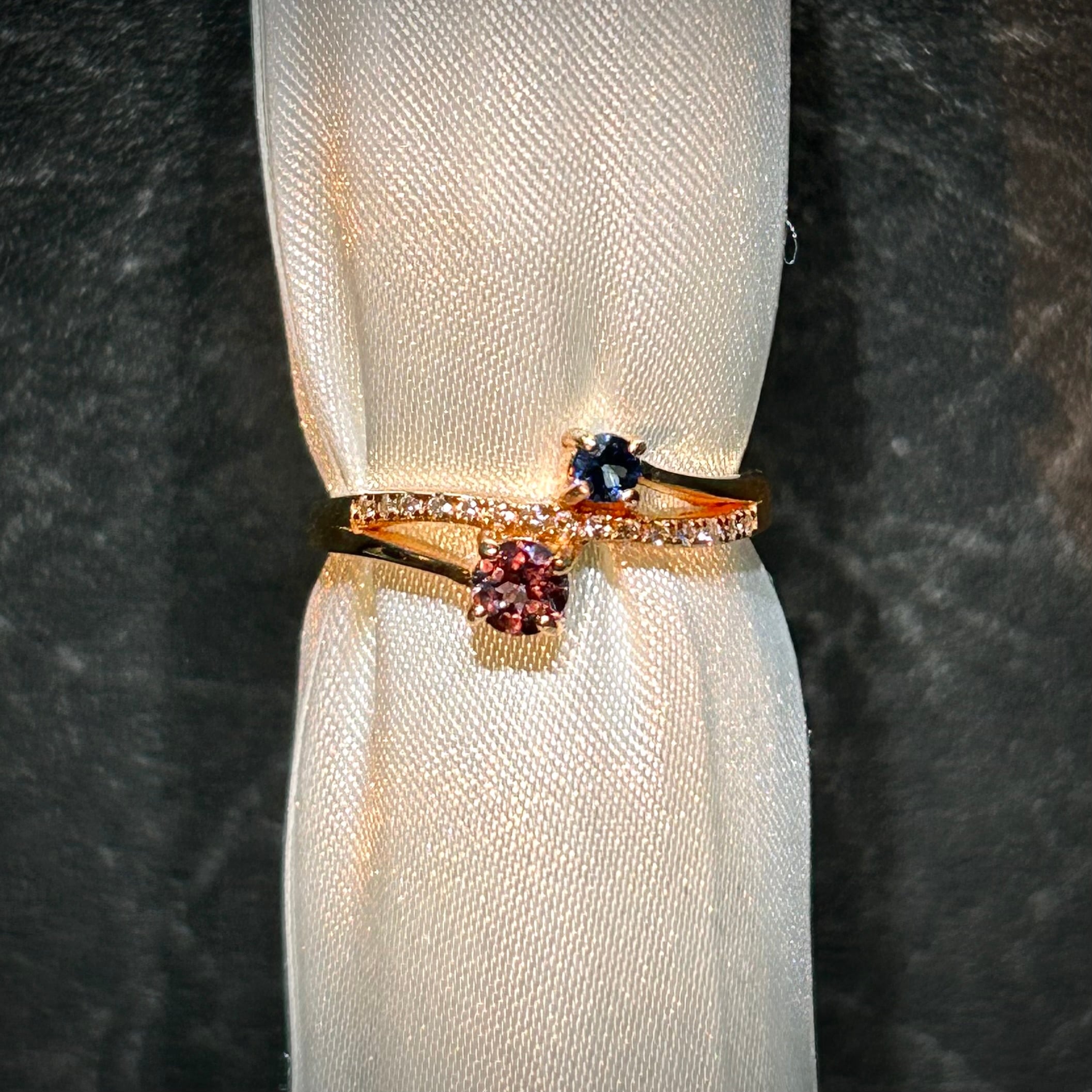 シルバー製ピンクゴールドカラー 、カラーチェンジガーネット&サファイアのツインリング。