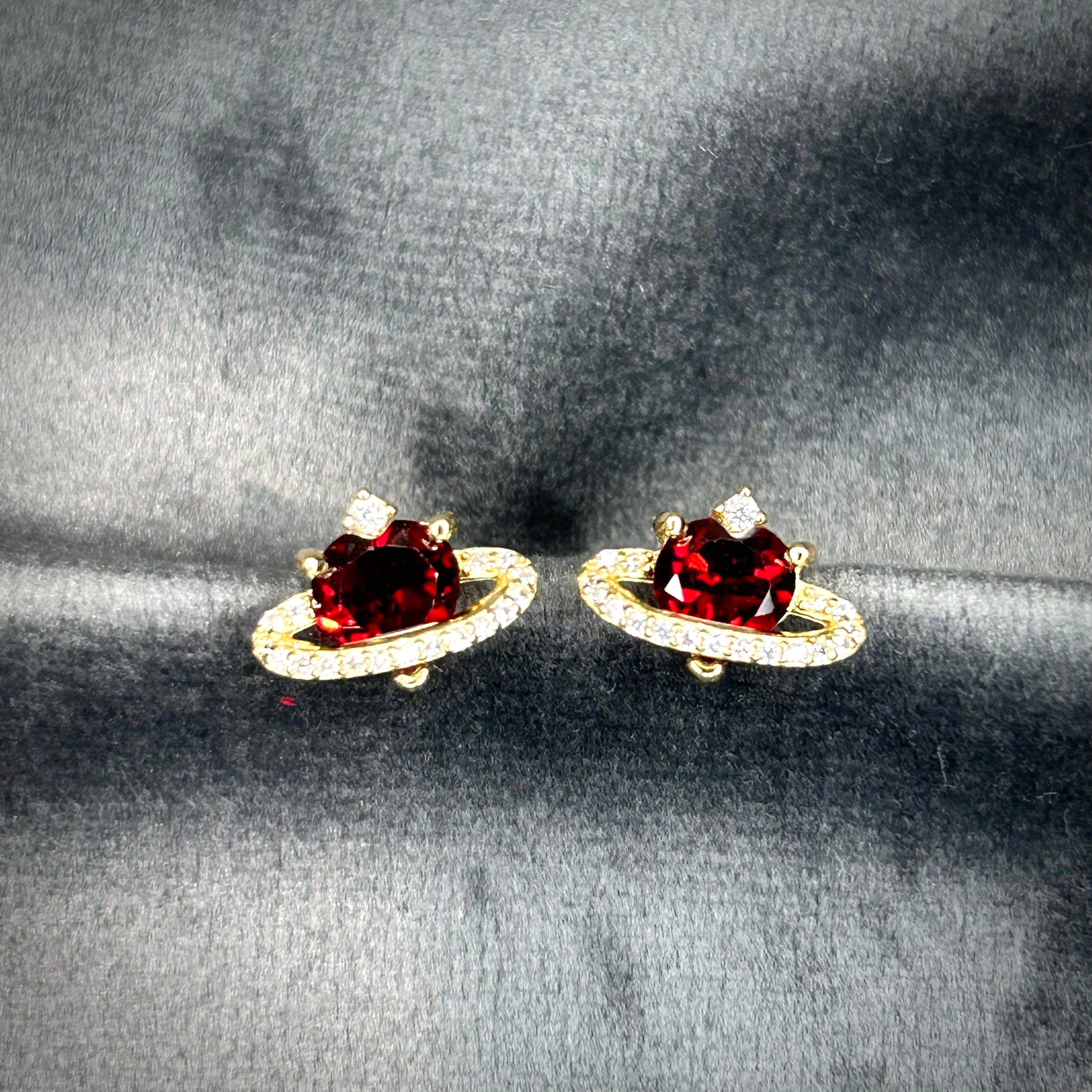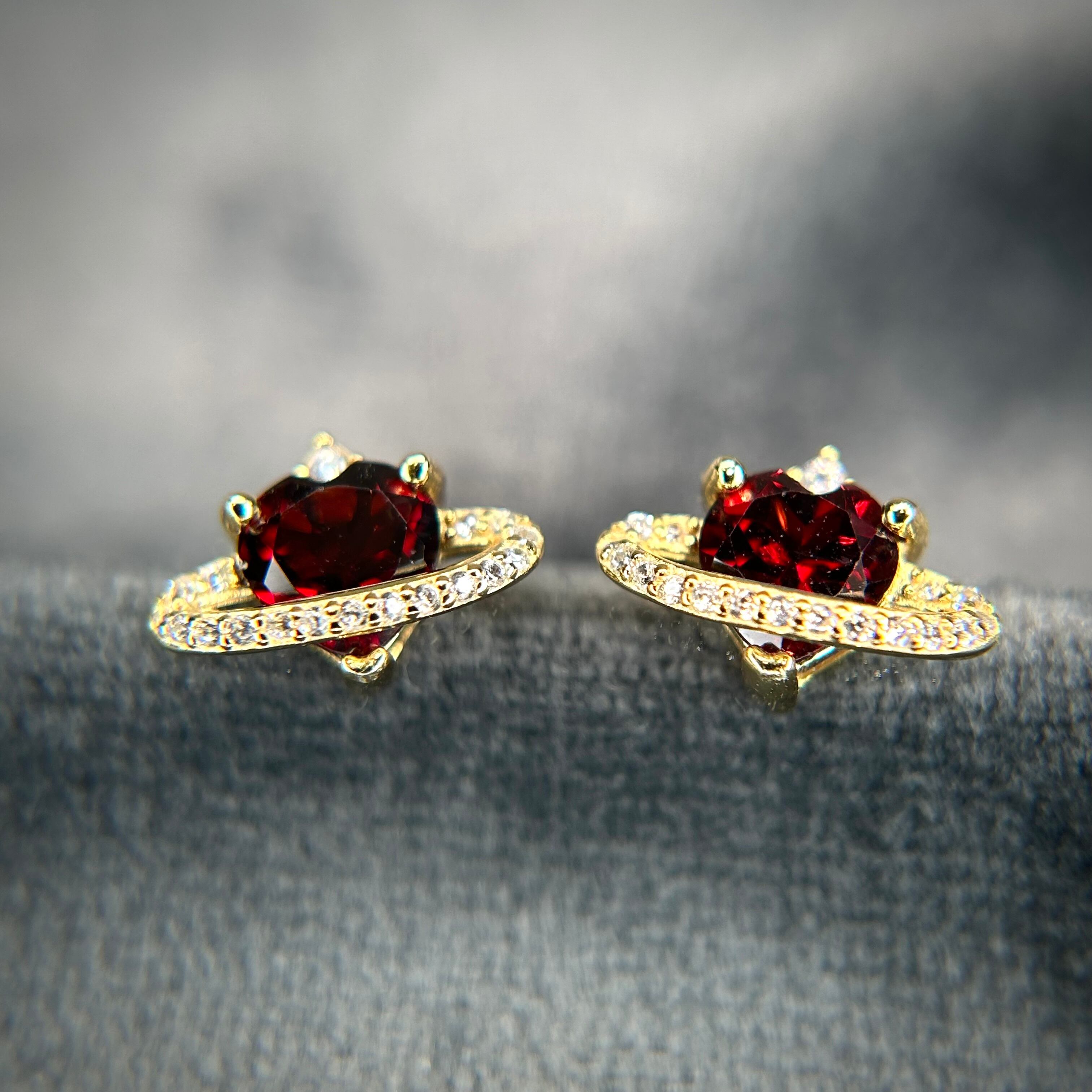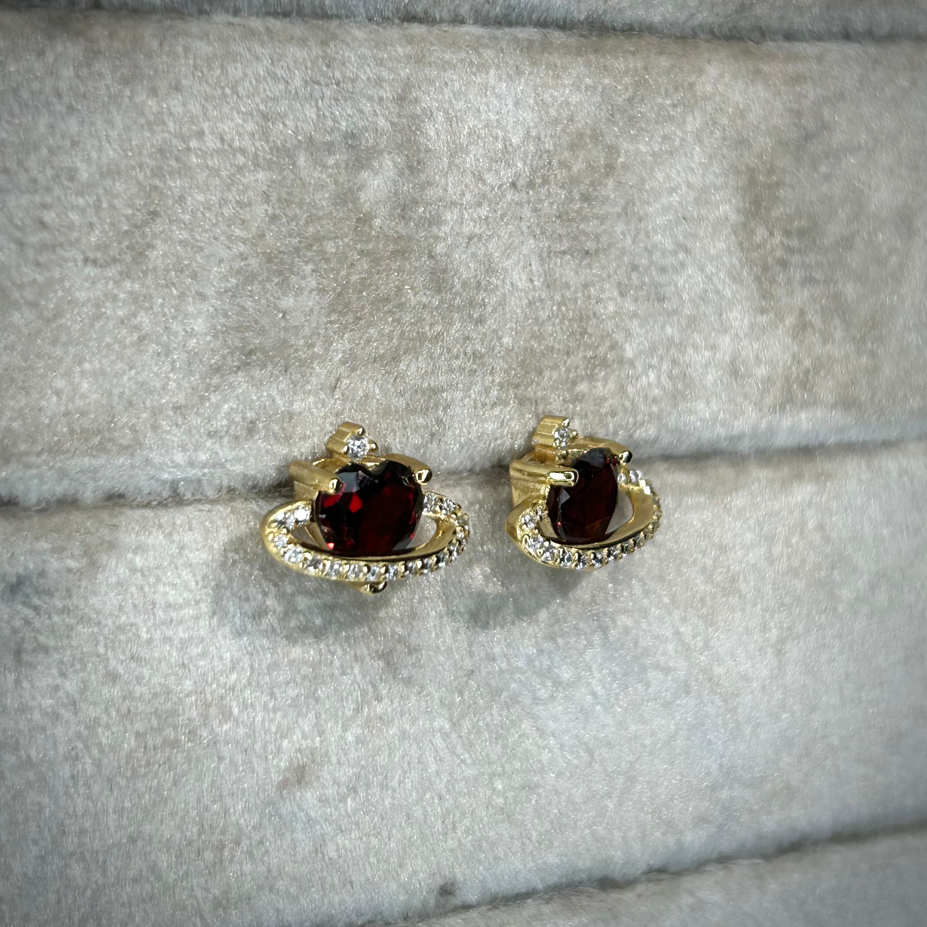 ゴールドカラーに映える真っ赤なハートのガーネットが可愛いピアスです。