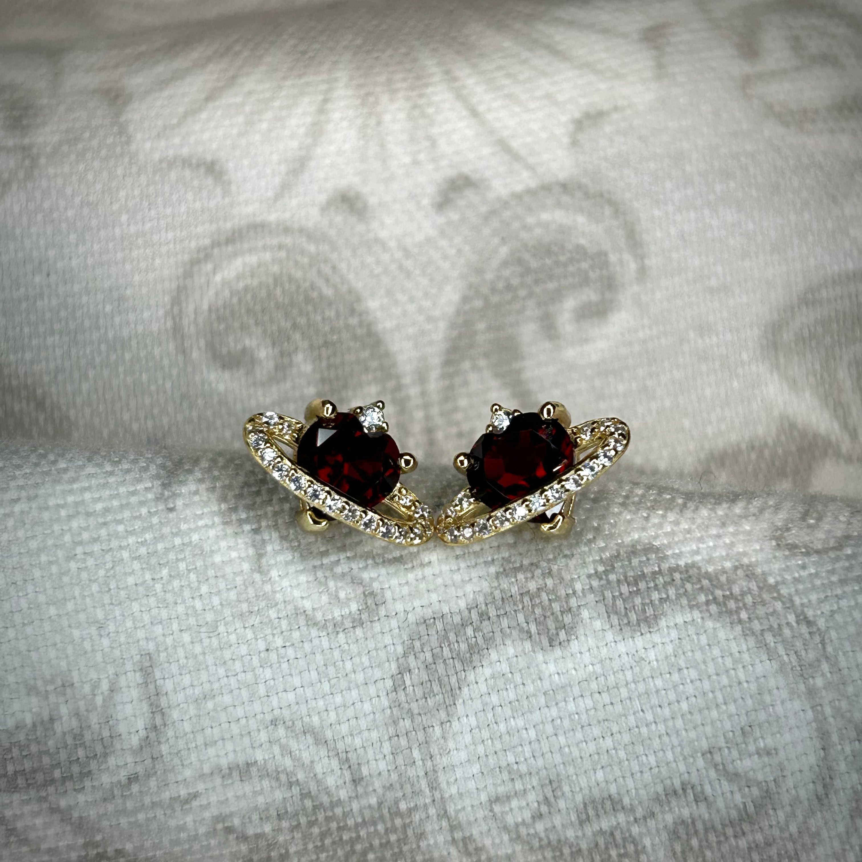 シルバー製ゴールドカラー ガーネット ハートピアス 1月誕生石 1ペア