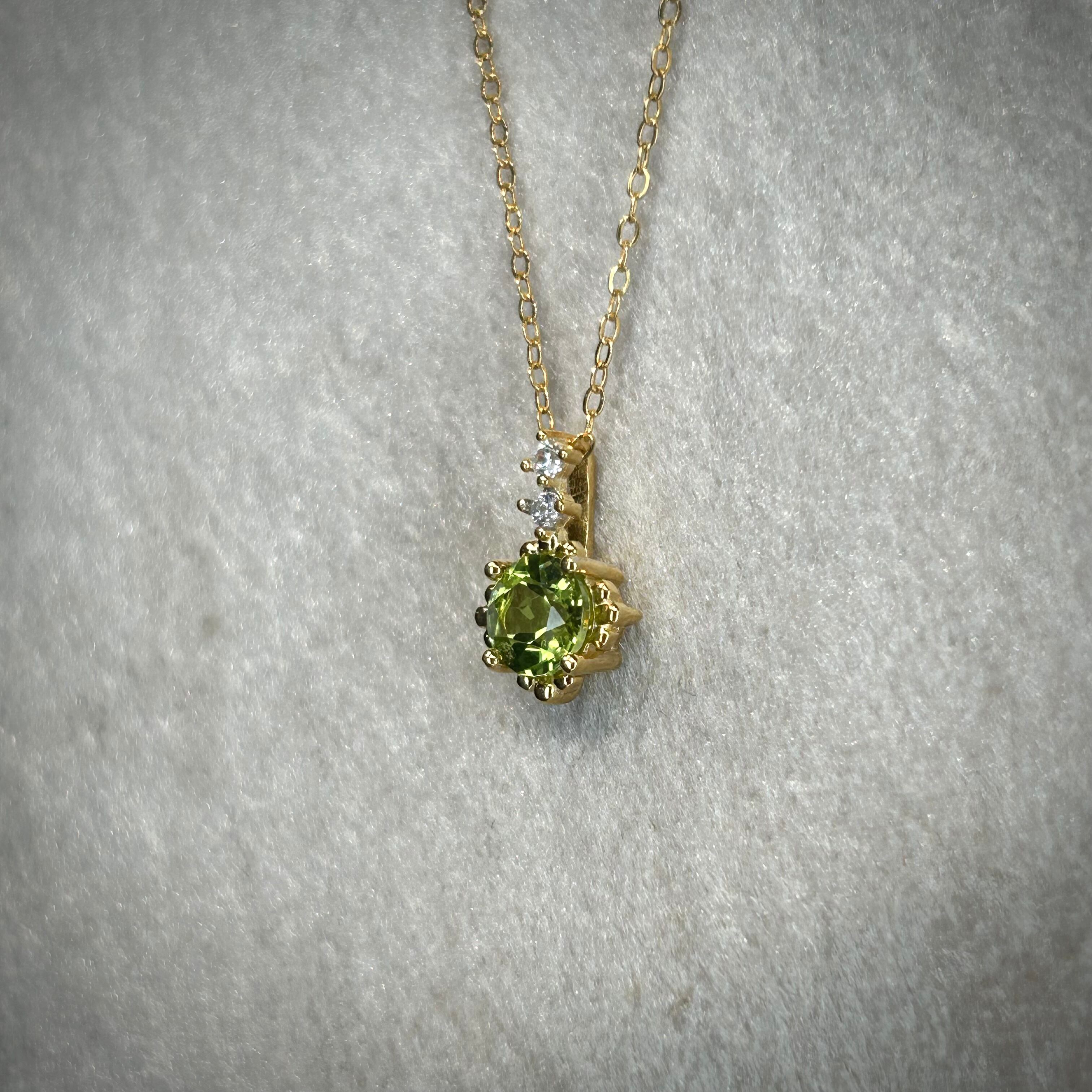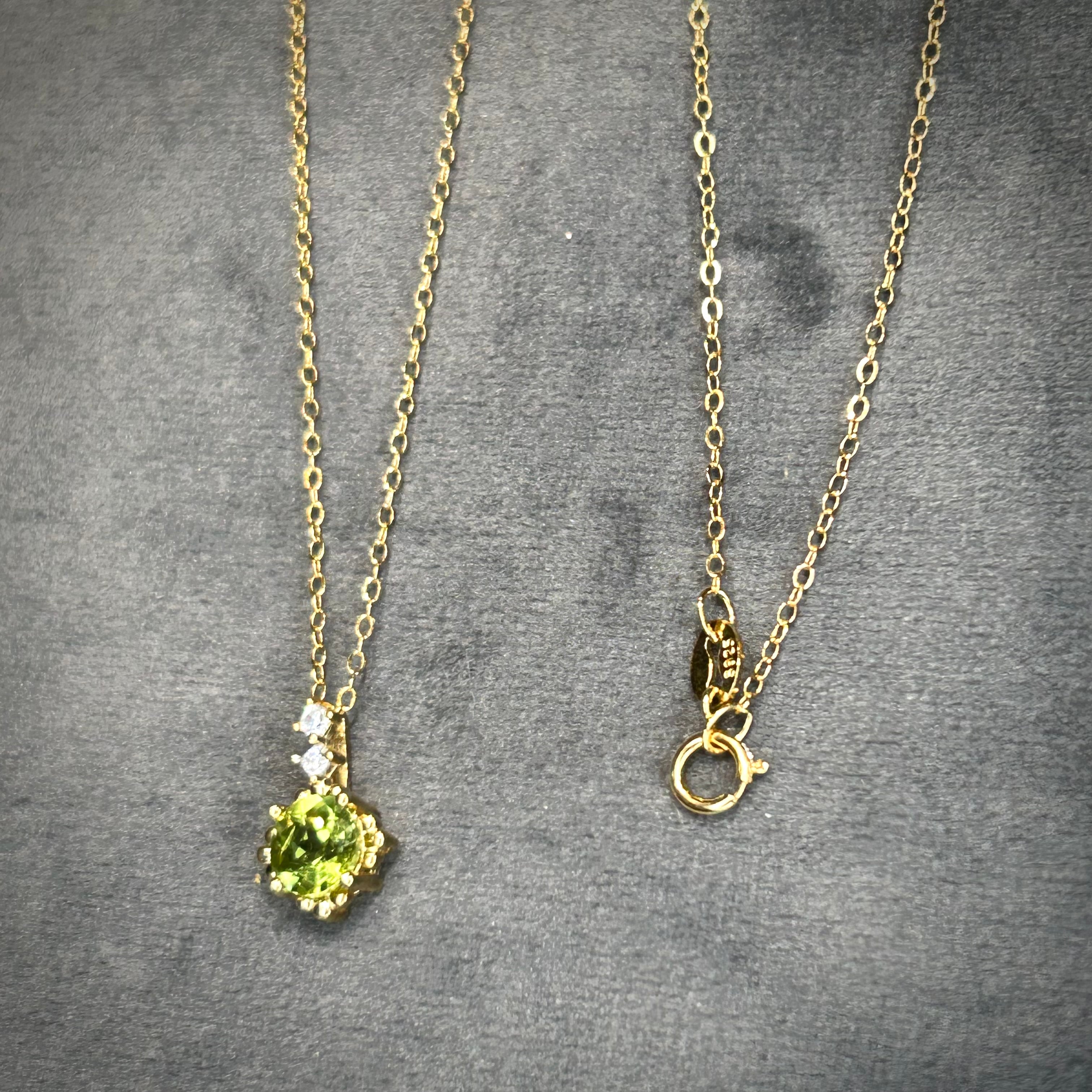 シルバー製ゴールドカラー ペリドット ルミナスネックレス 8月誕生石 チェーン付き