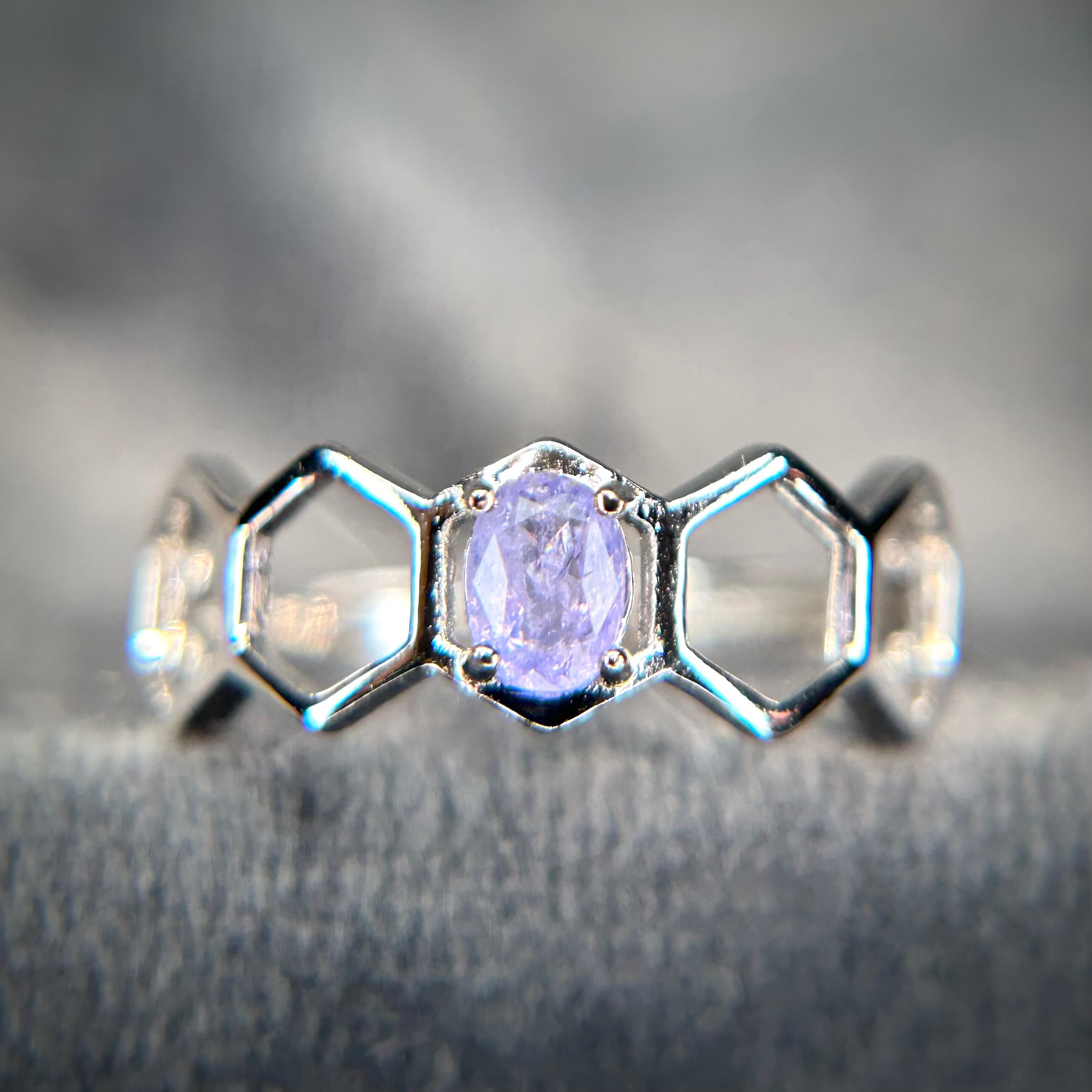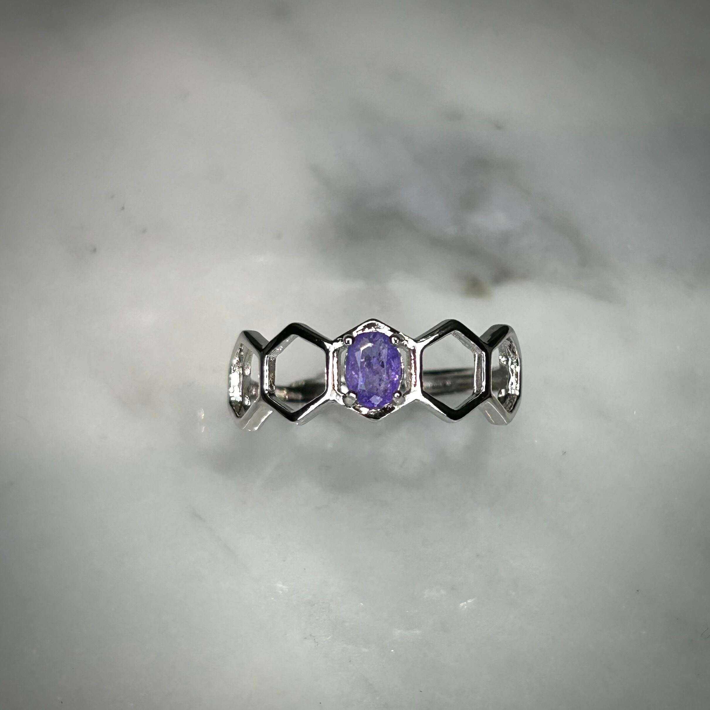 シルバー製、ハックマナイトのヘキサゴンリング。