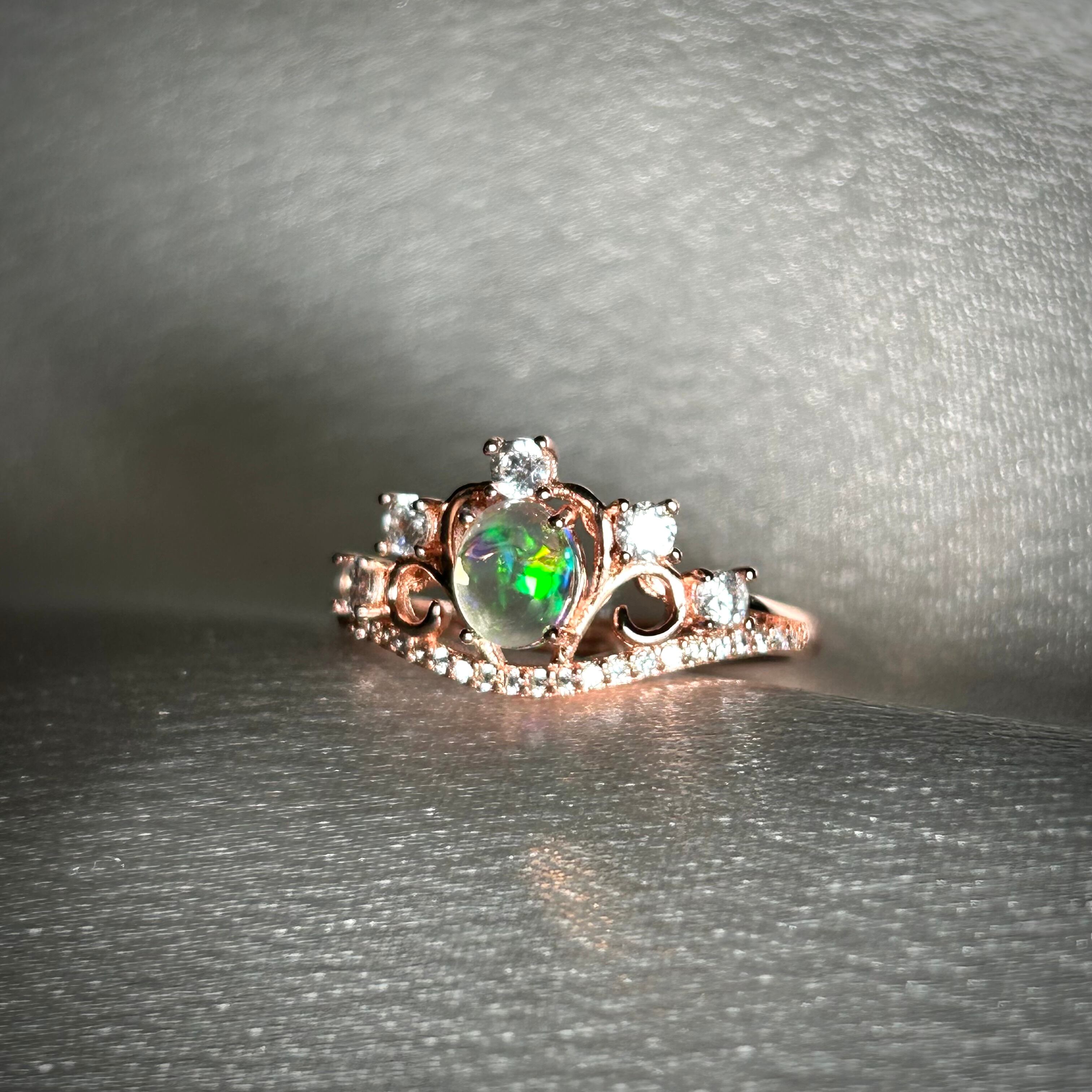 シルバー製ピンクゴールドカラー、 メキシコオパールのティアラリング。