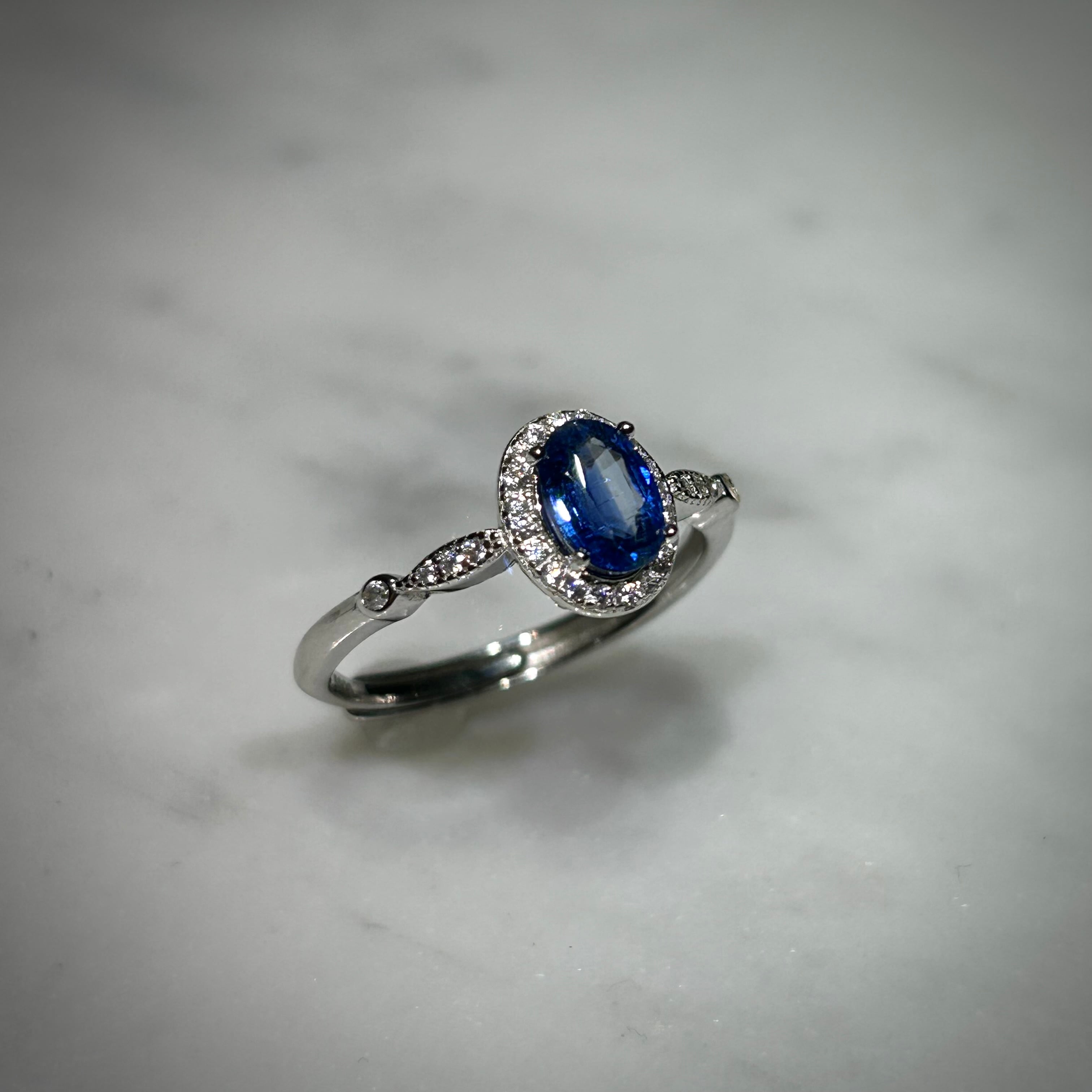 品があり落ち着きのあるデザインにマッチしたカイヤナイトの組み合わせが凛とした印象のリングです。
