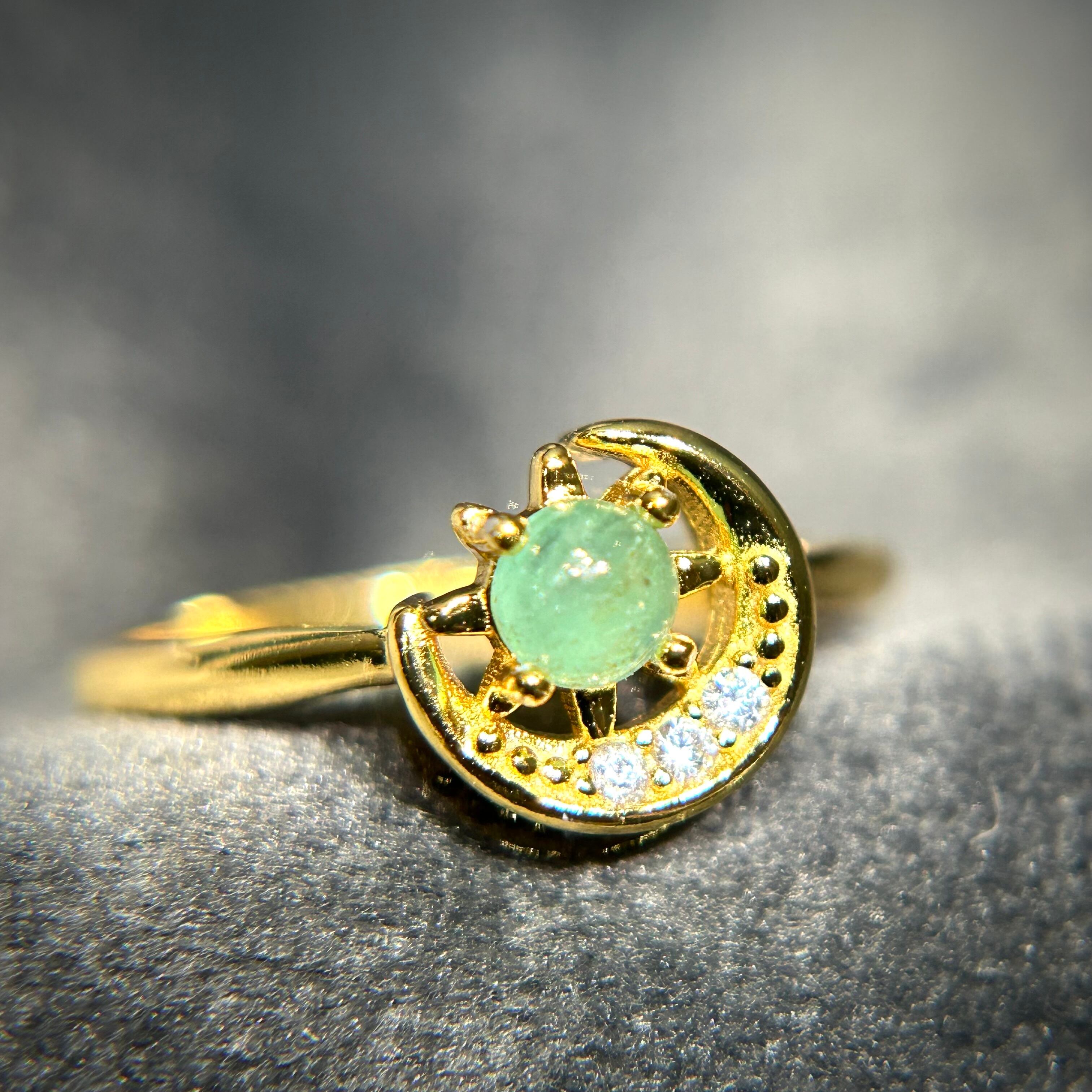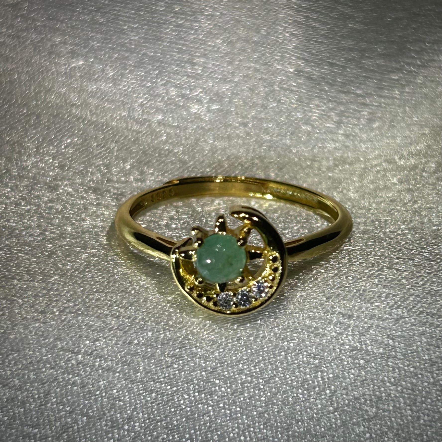 シルバー製ゴールドカラー エメラルド プラネットリング 5月誕生石 フリーサイズ