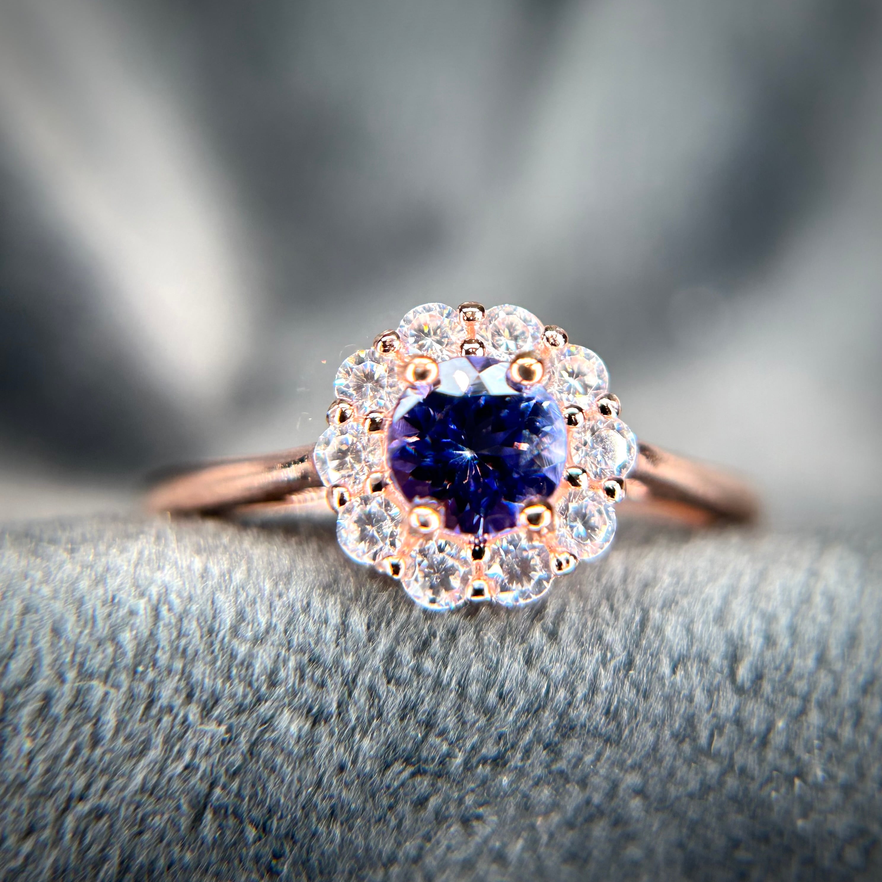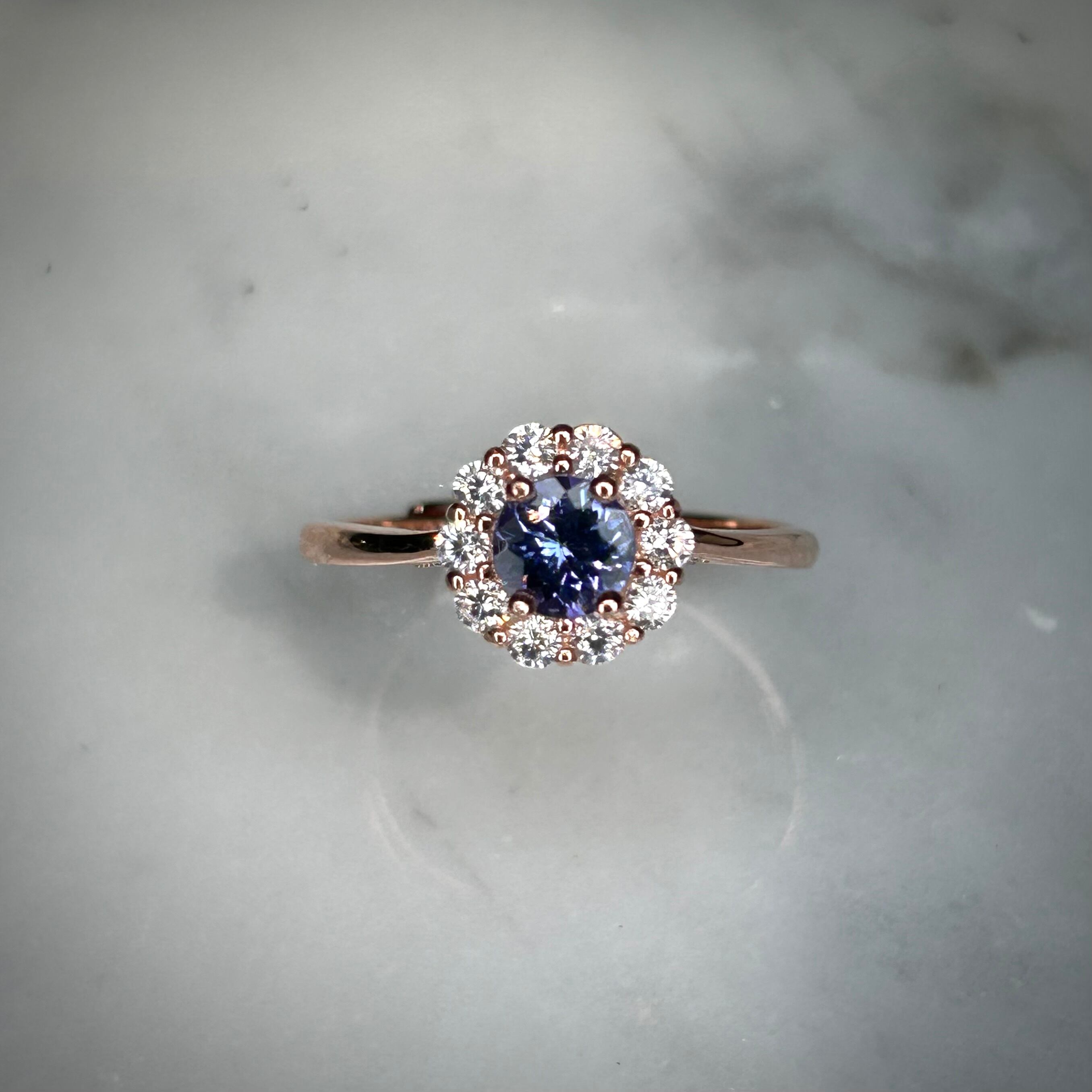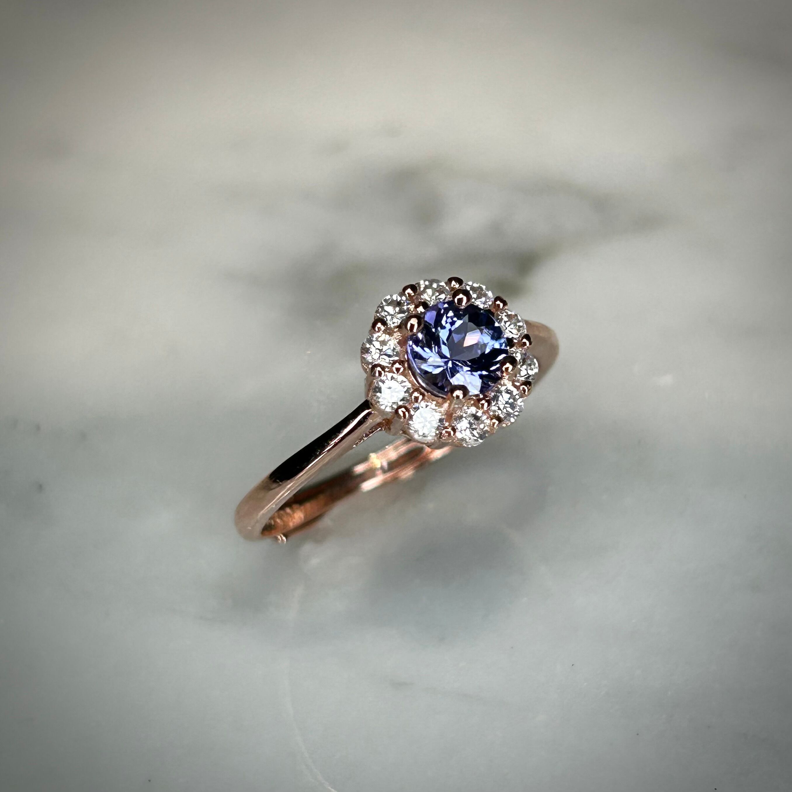 シルバー製ピンクゴールドカラー、タンザナイトのサークルリング。