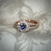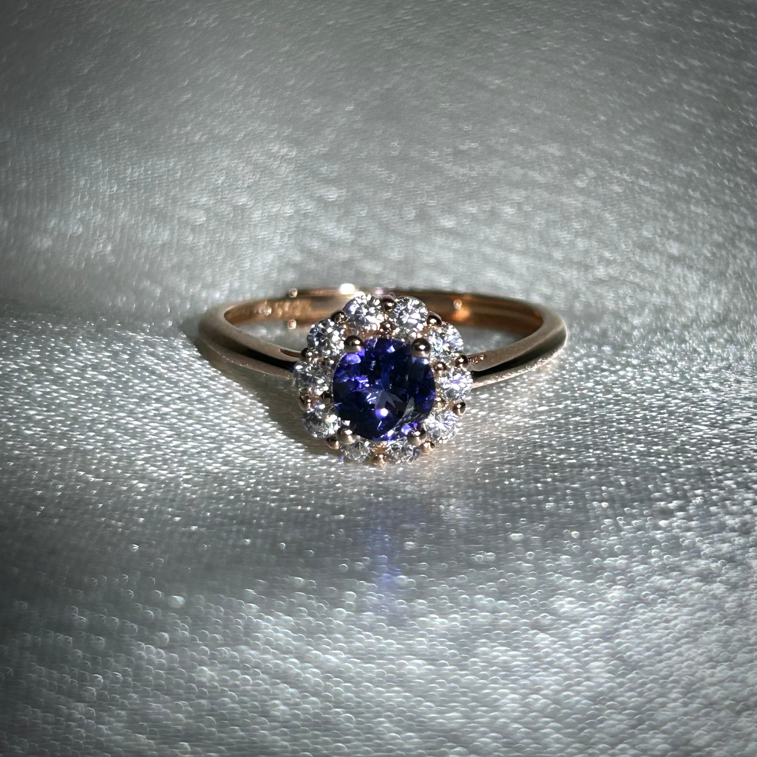 神秘的な色合いで高貴な印象を感じさせるタンザナイトが脇石の輝きに負けないほど美しいです。