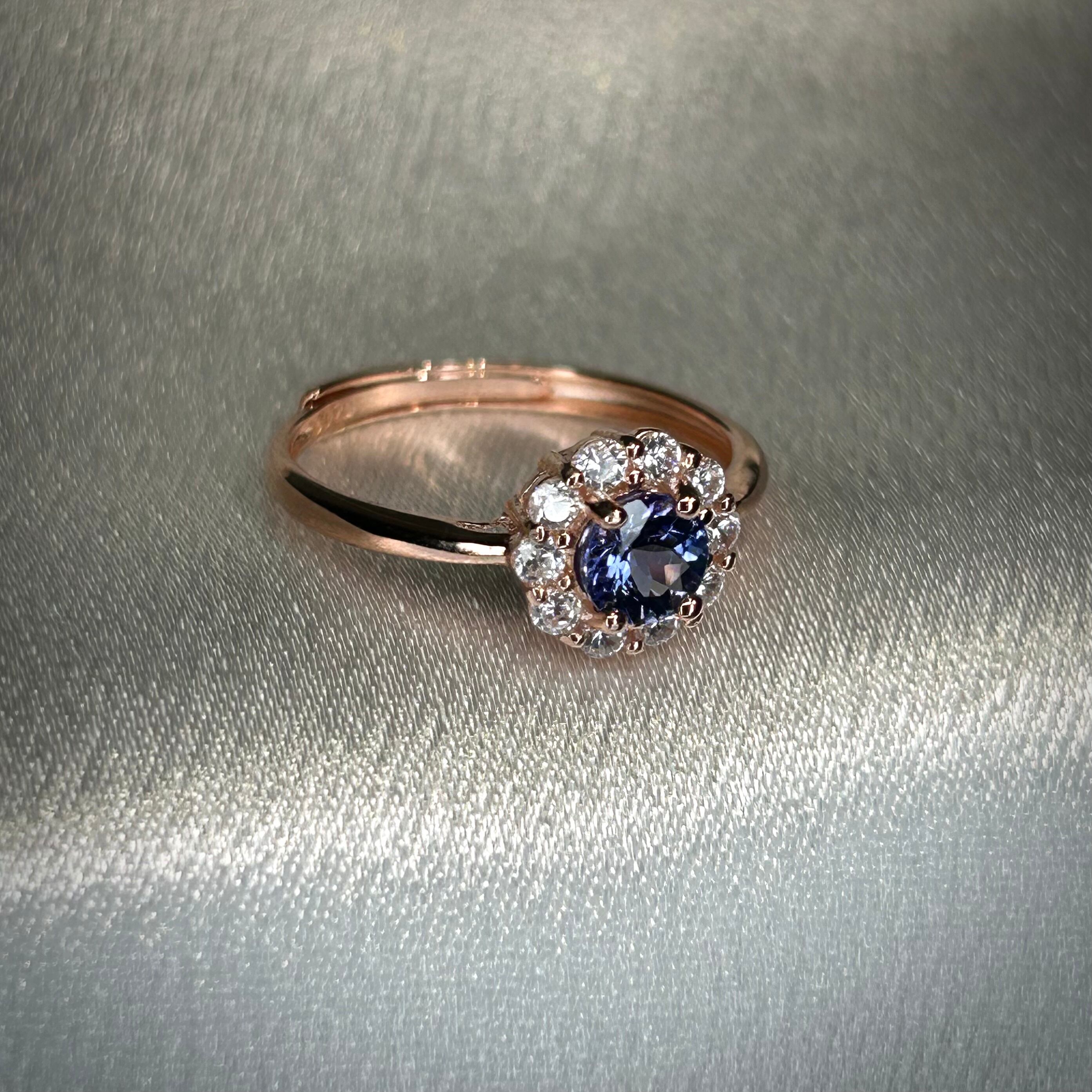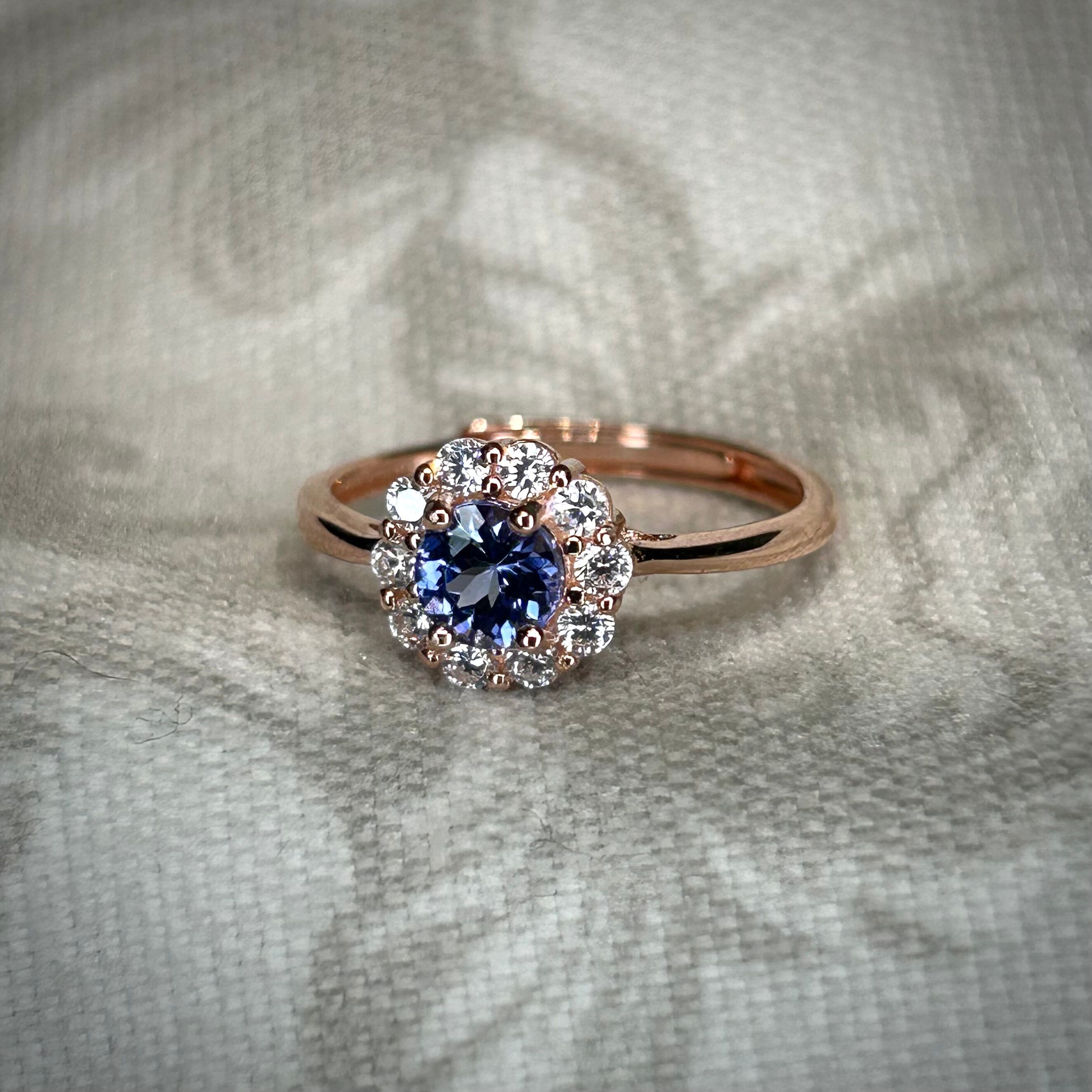 シルバー製ピンクゴールドカラー タンザナイト サークルリング 12月誕生石 フリーサイズ