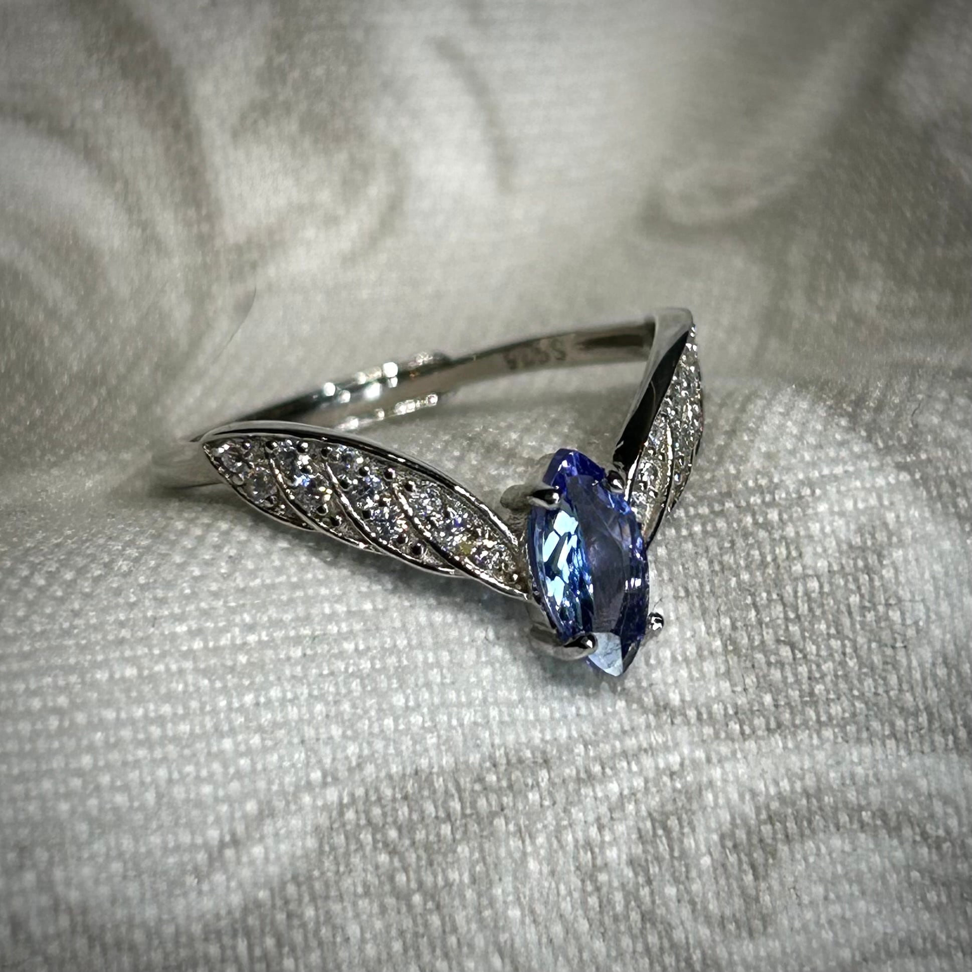 シルバー製 タンザナイト Vラインリング 12月誕生石 フリーサイズ