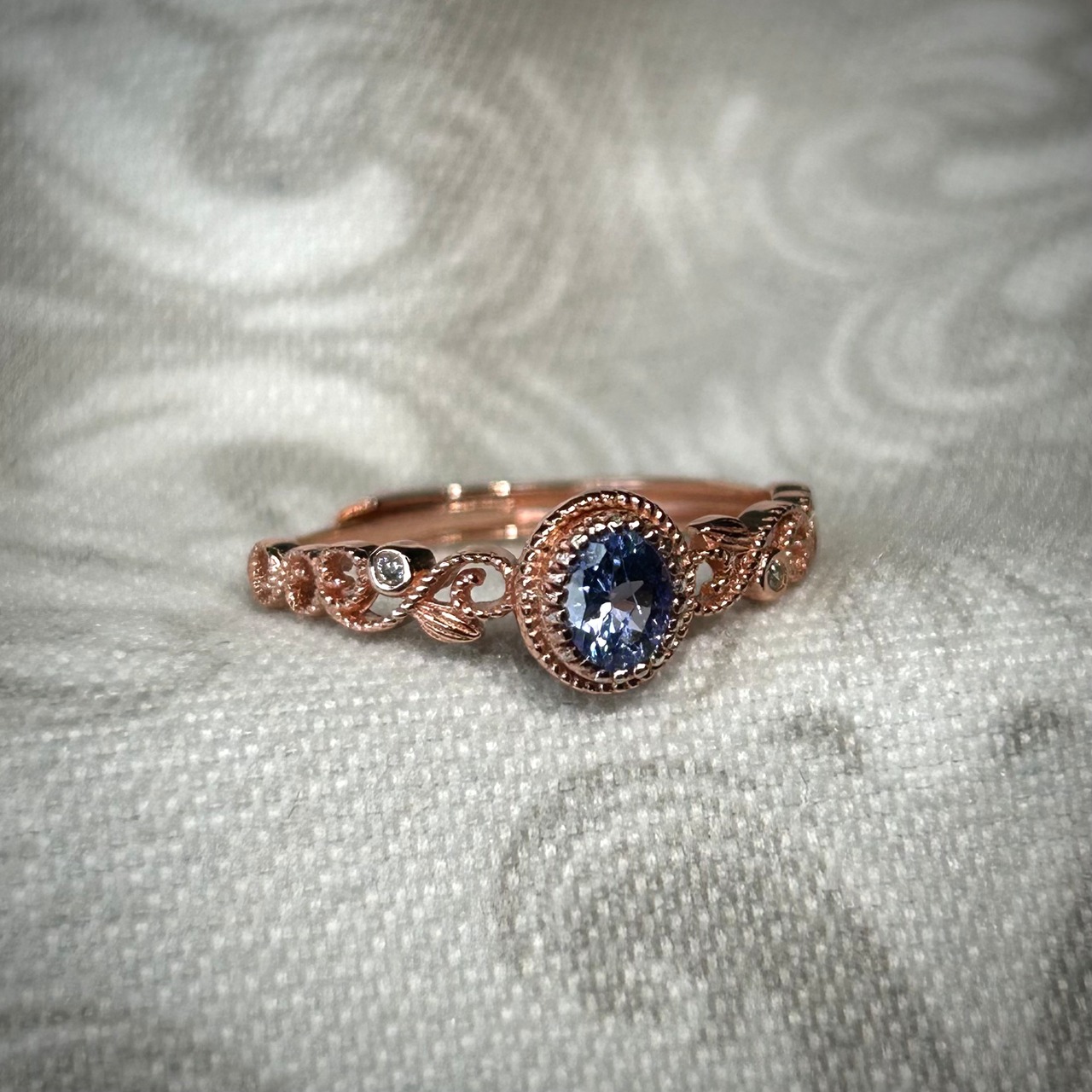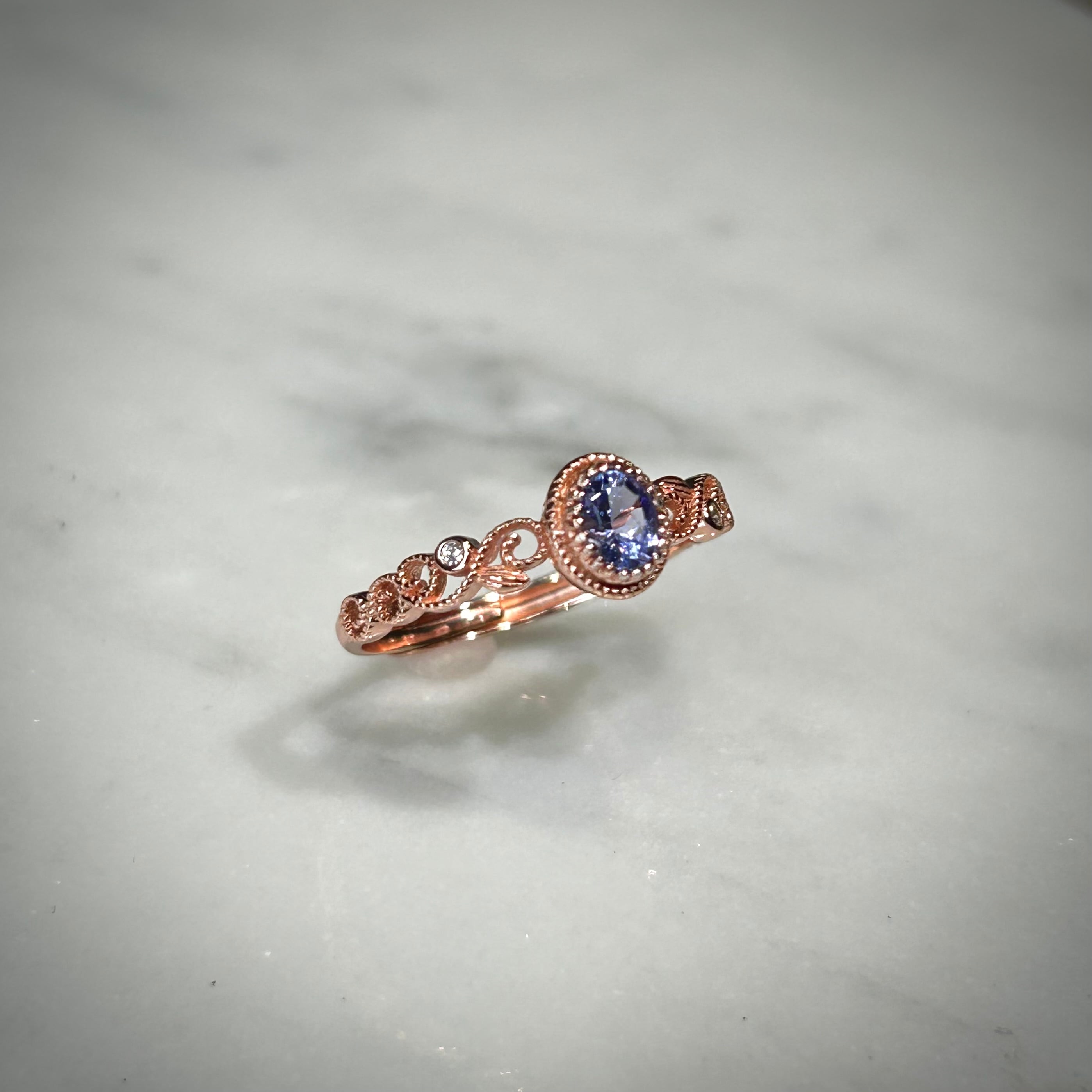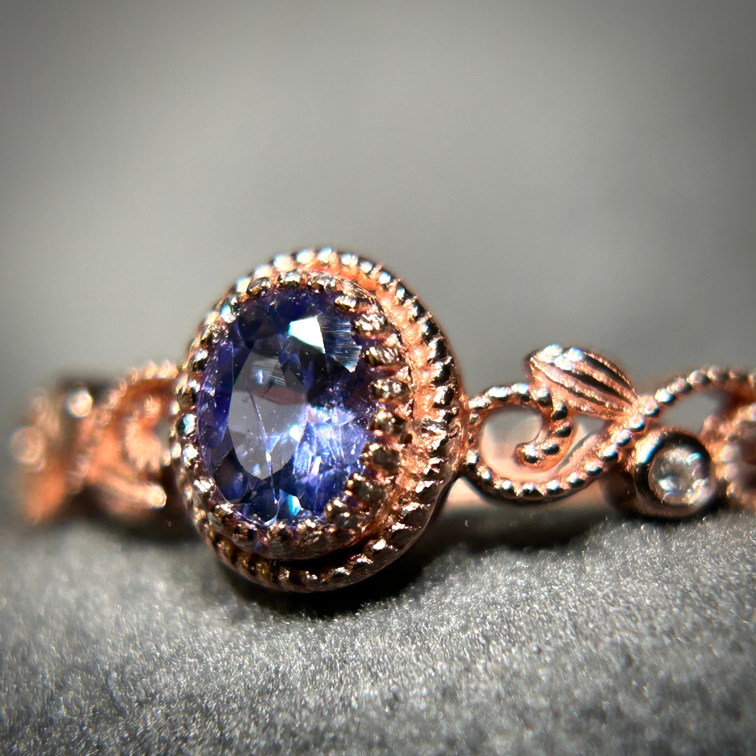 シルバー製ピンクゴールドカラー、タンザナイトのオリエンタルリング。