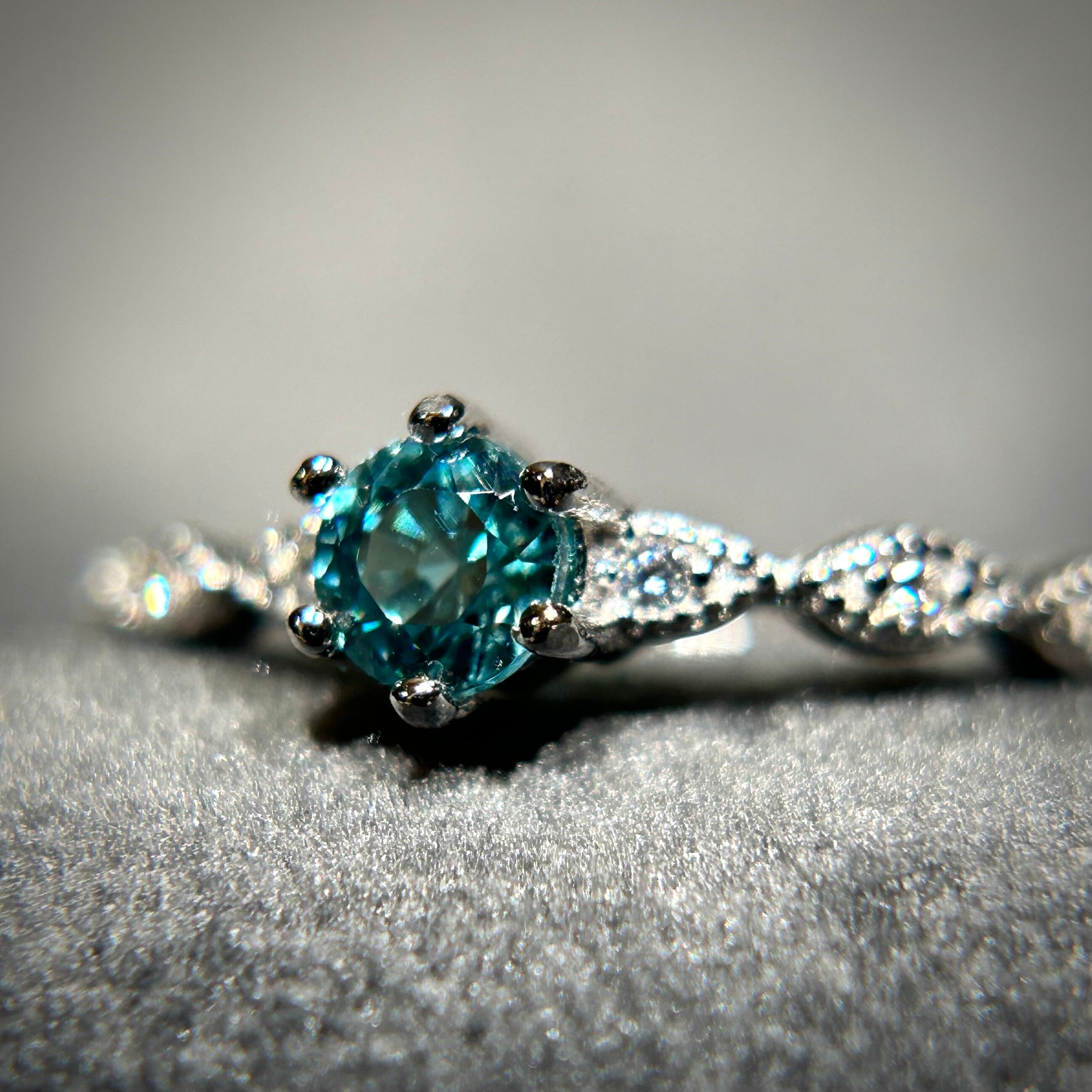 輝くブルーカラーのジルコンを使用。