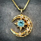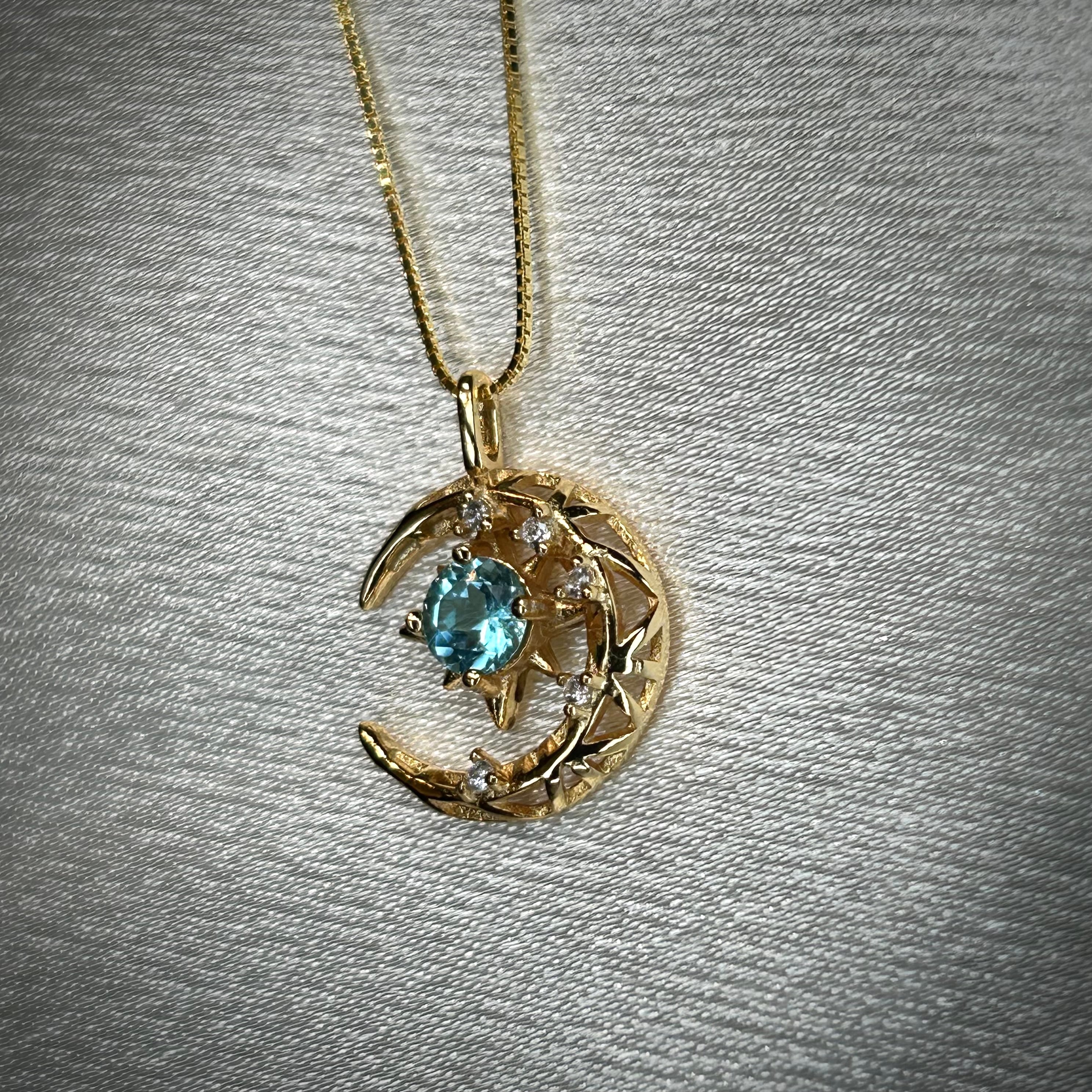 シルバー製ゴールドカラー、スイスブルートパーズのクレセントムーンネックレス。
