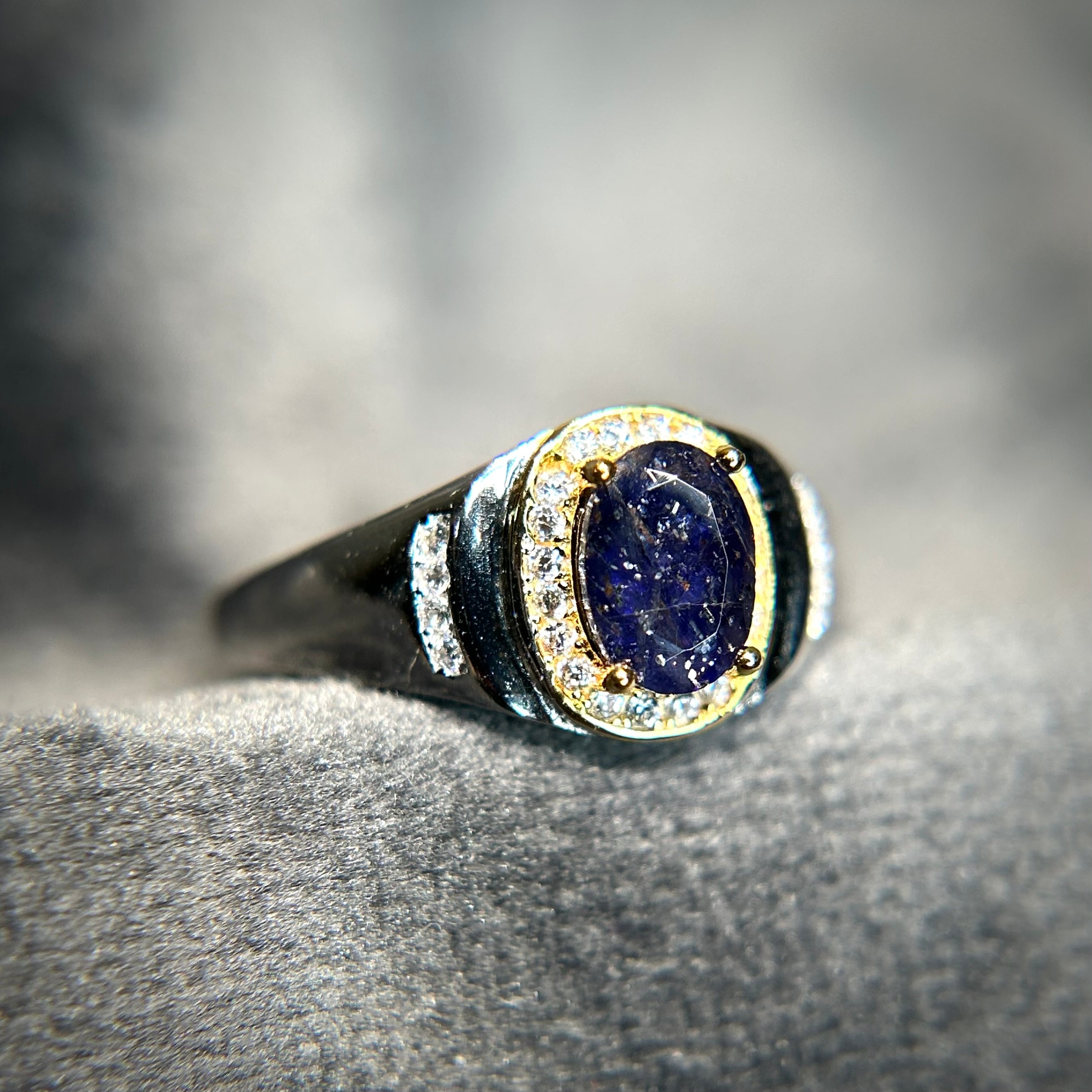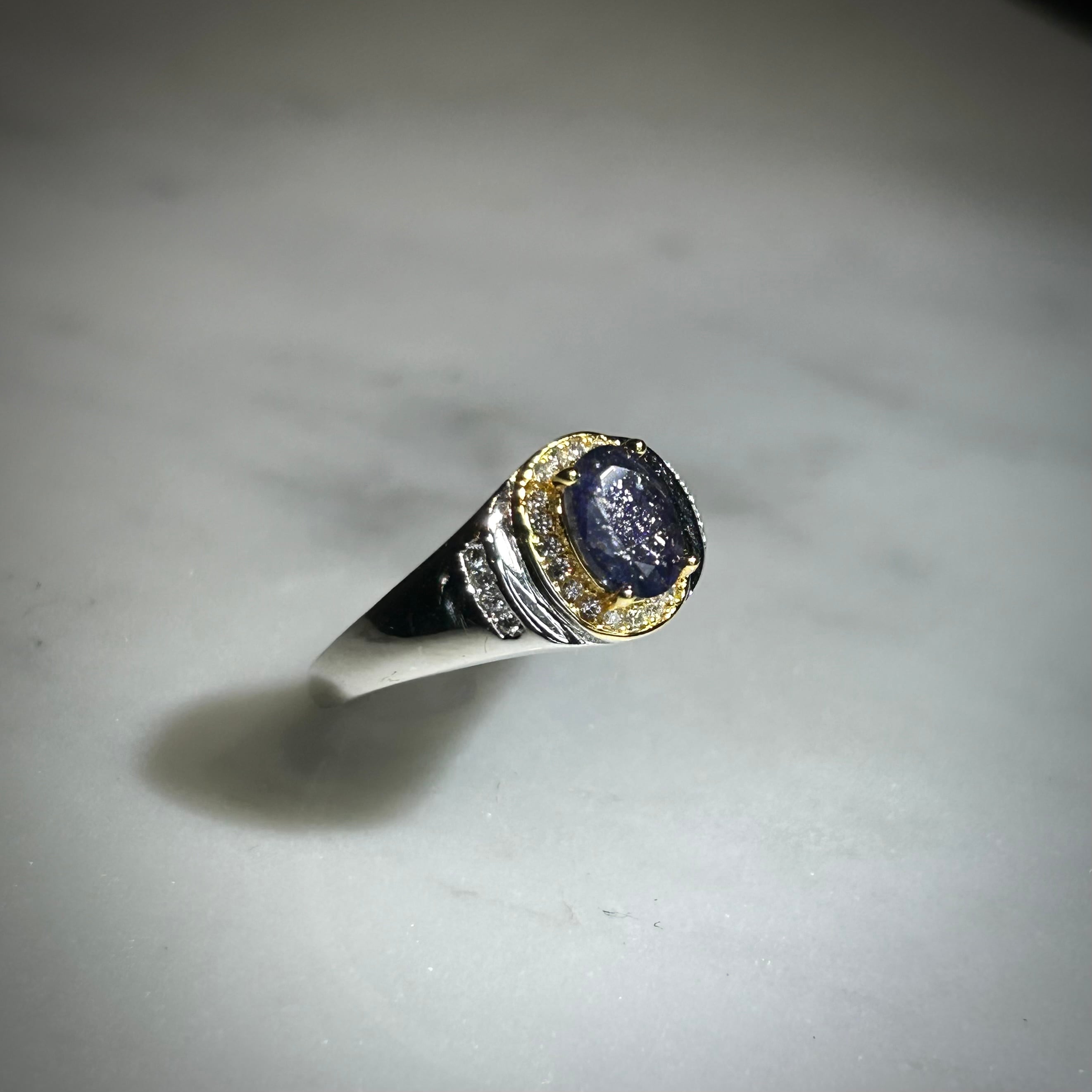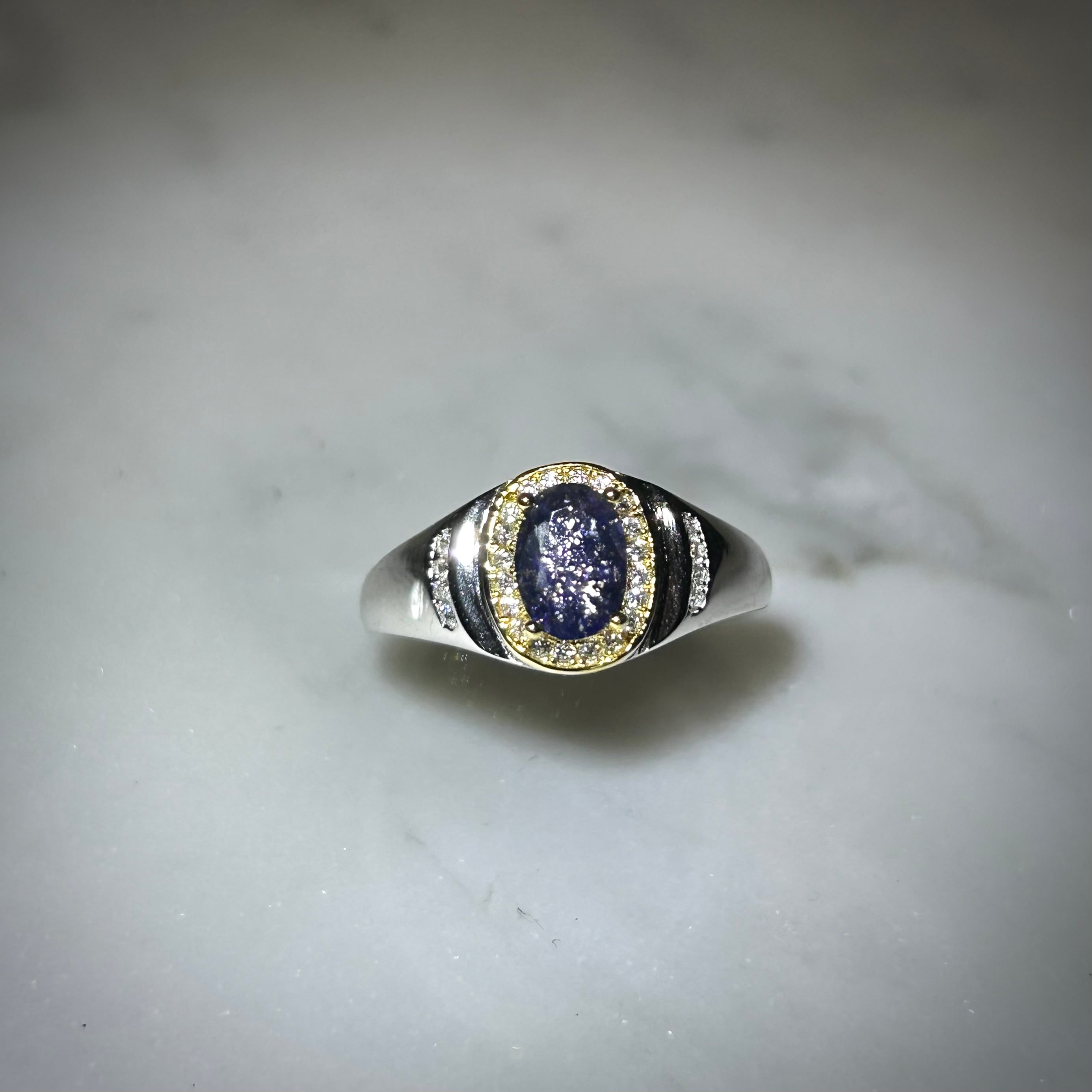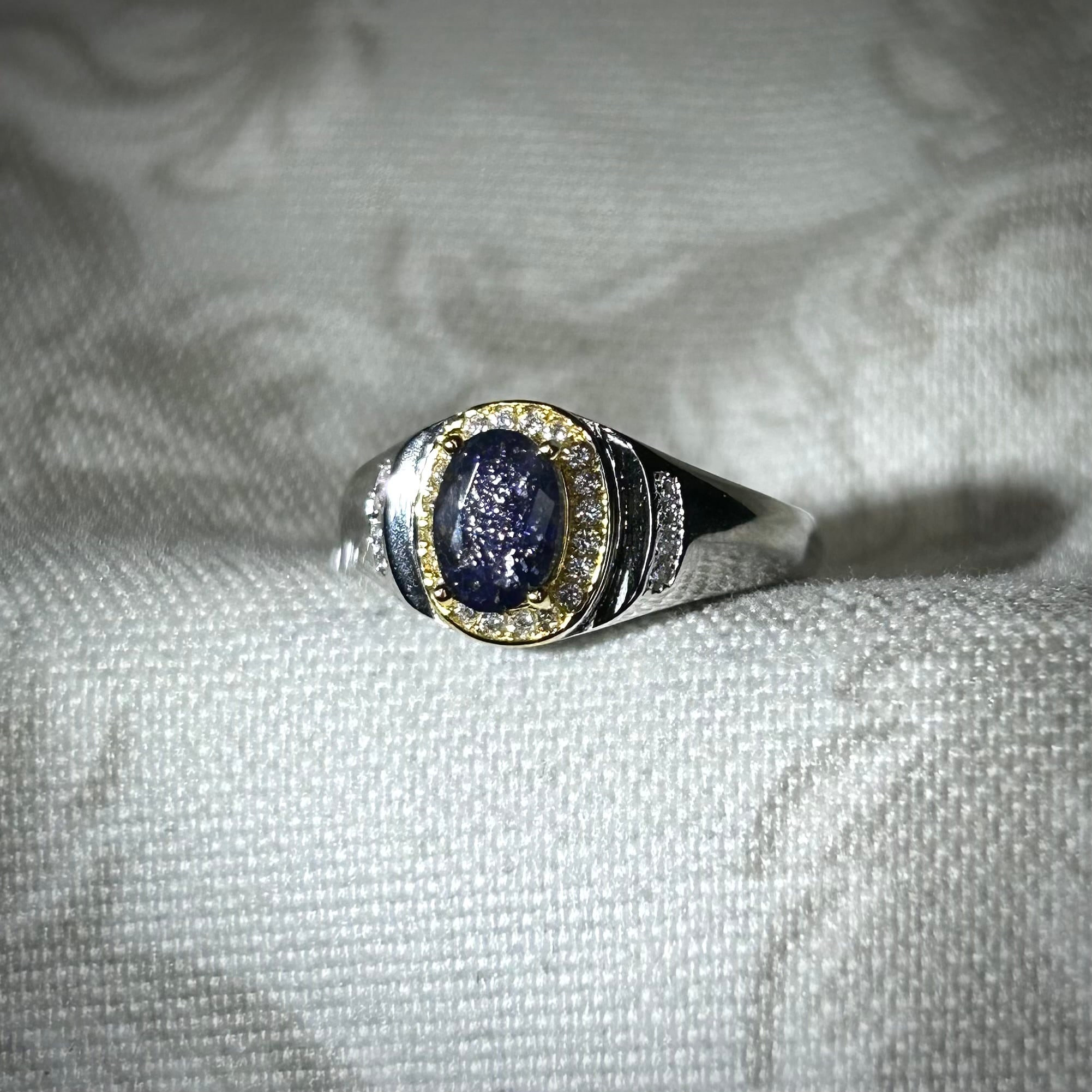 シルバー製コンビカラー、アイオライトサンストーンのオーバルリング。
