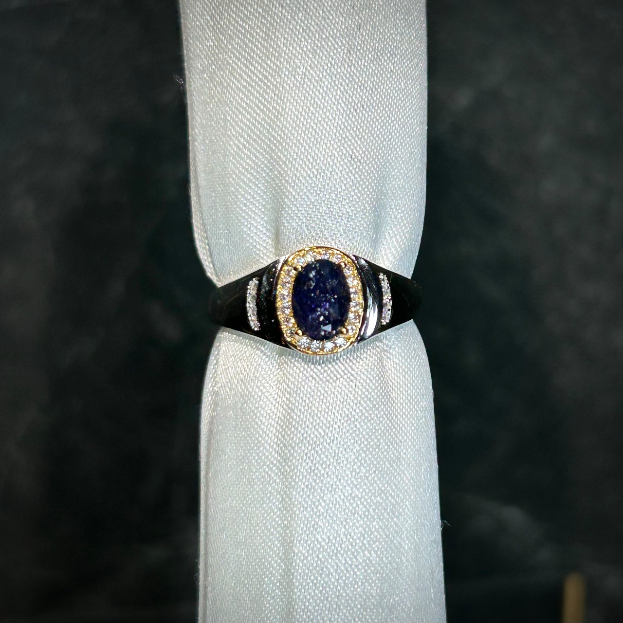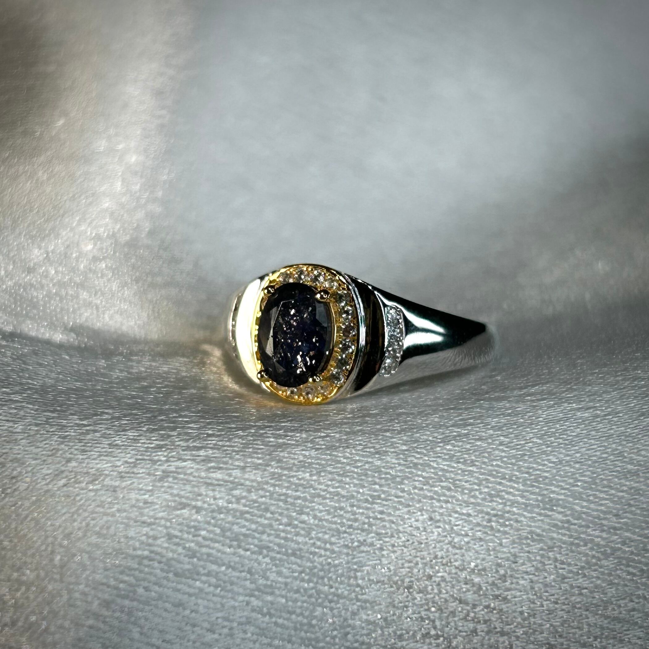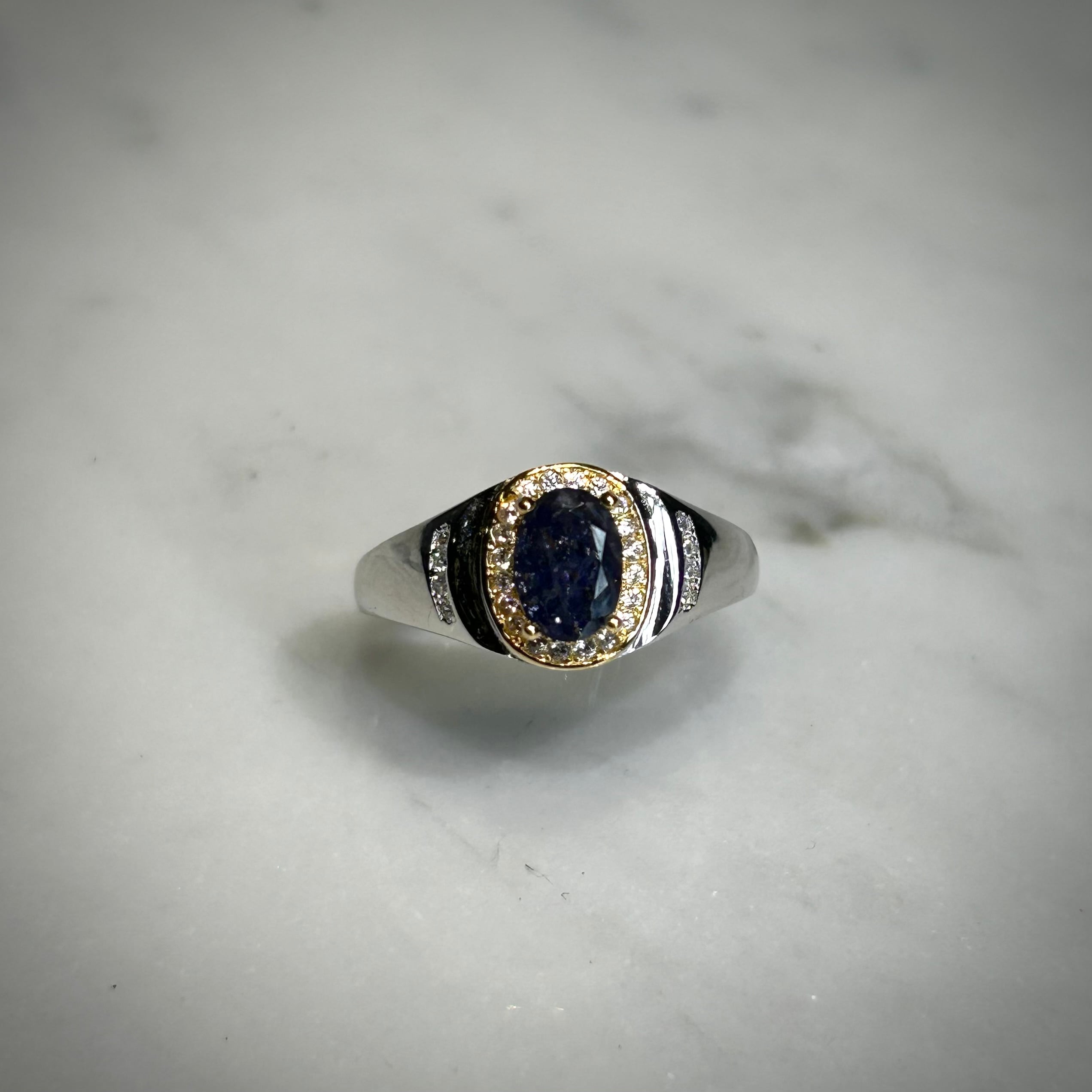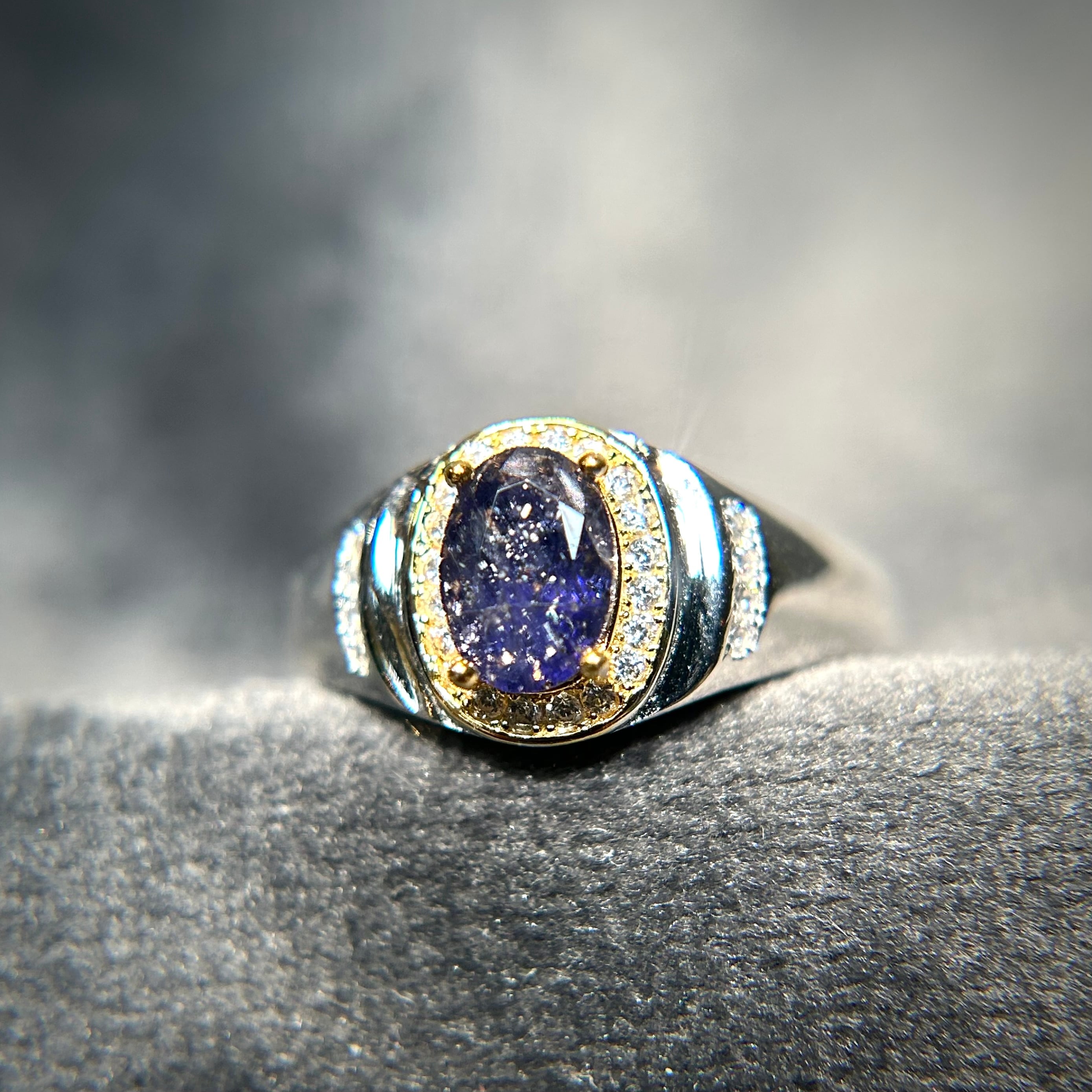 シルバー製コンビカラー、アイオライトサンストーンのオーバルリング。