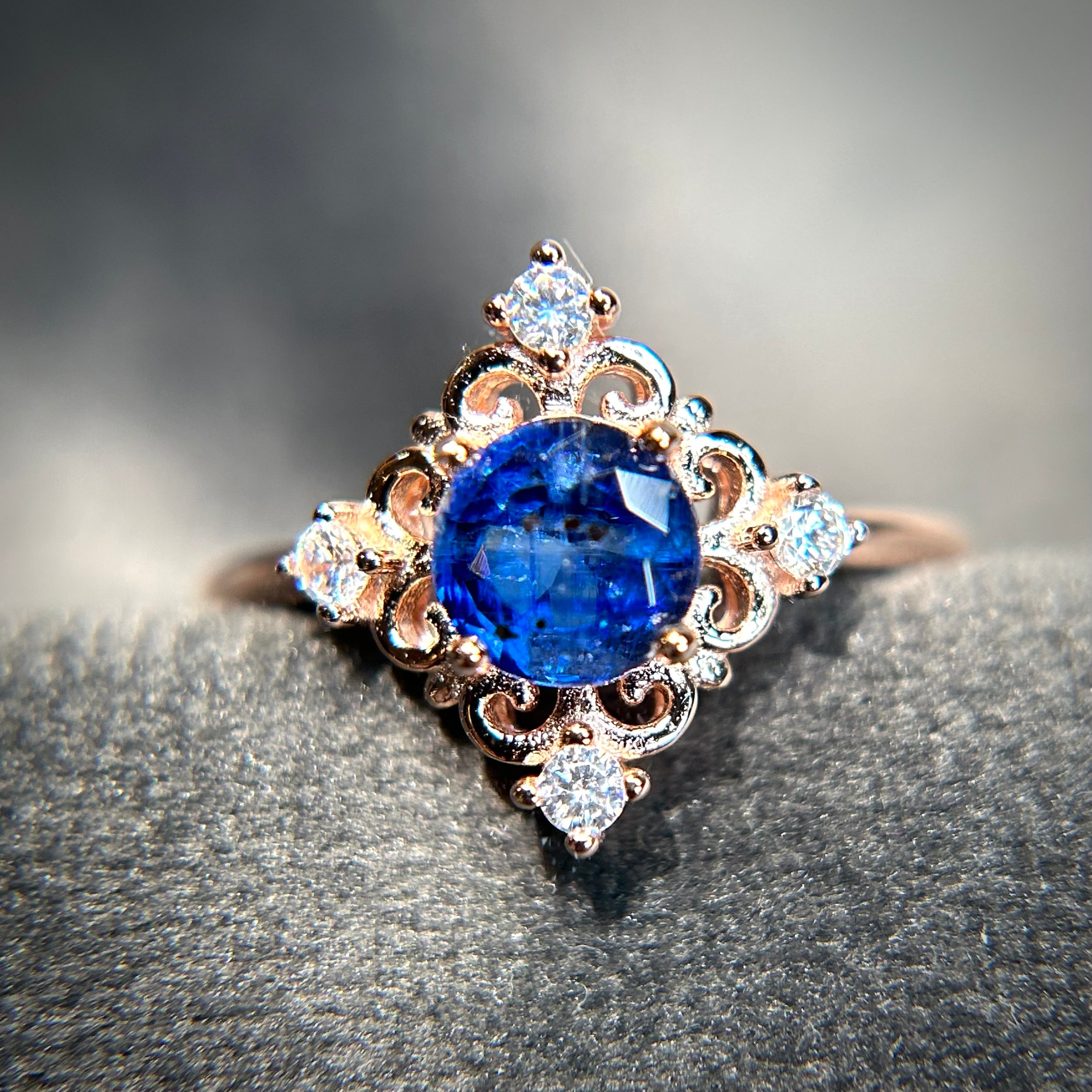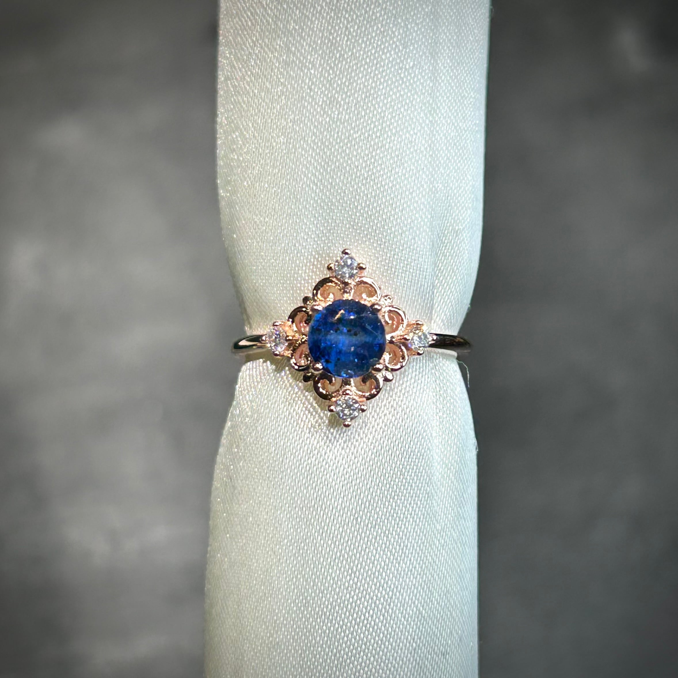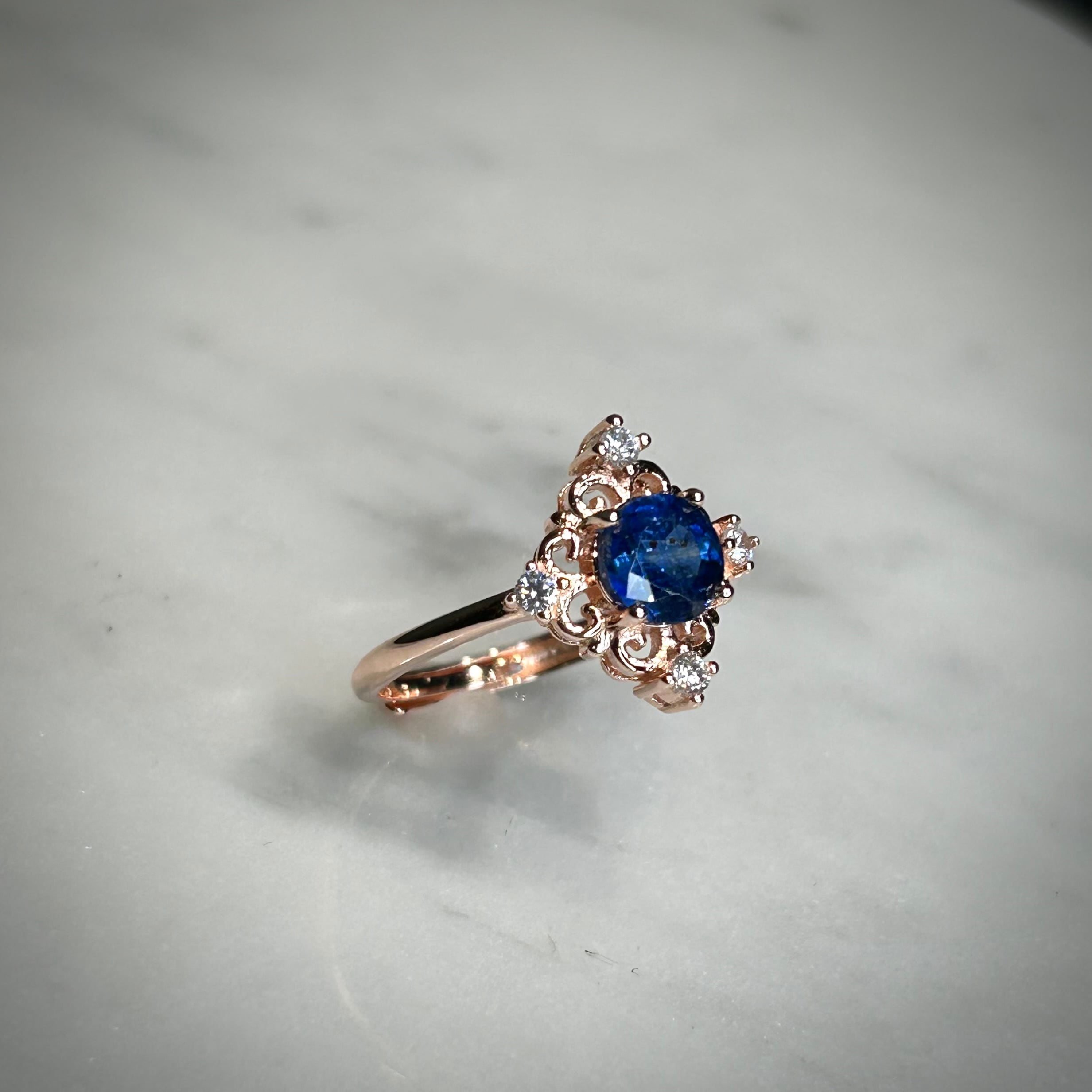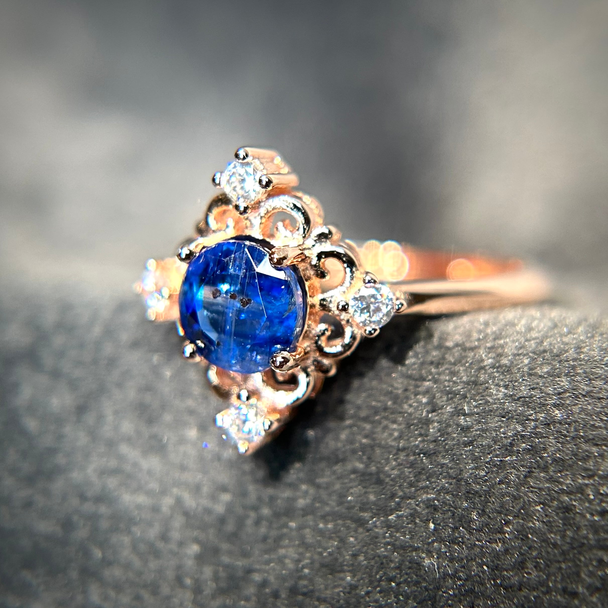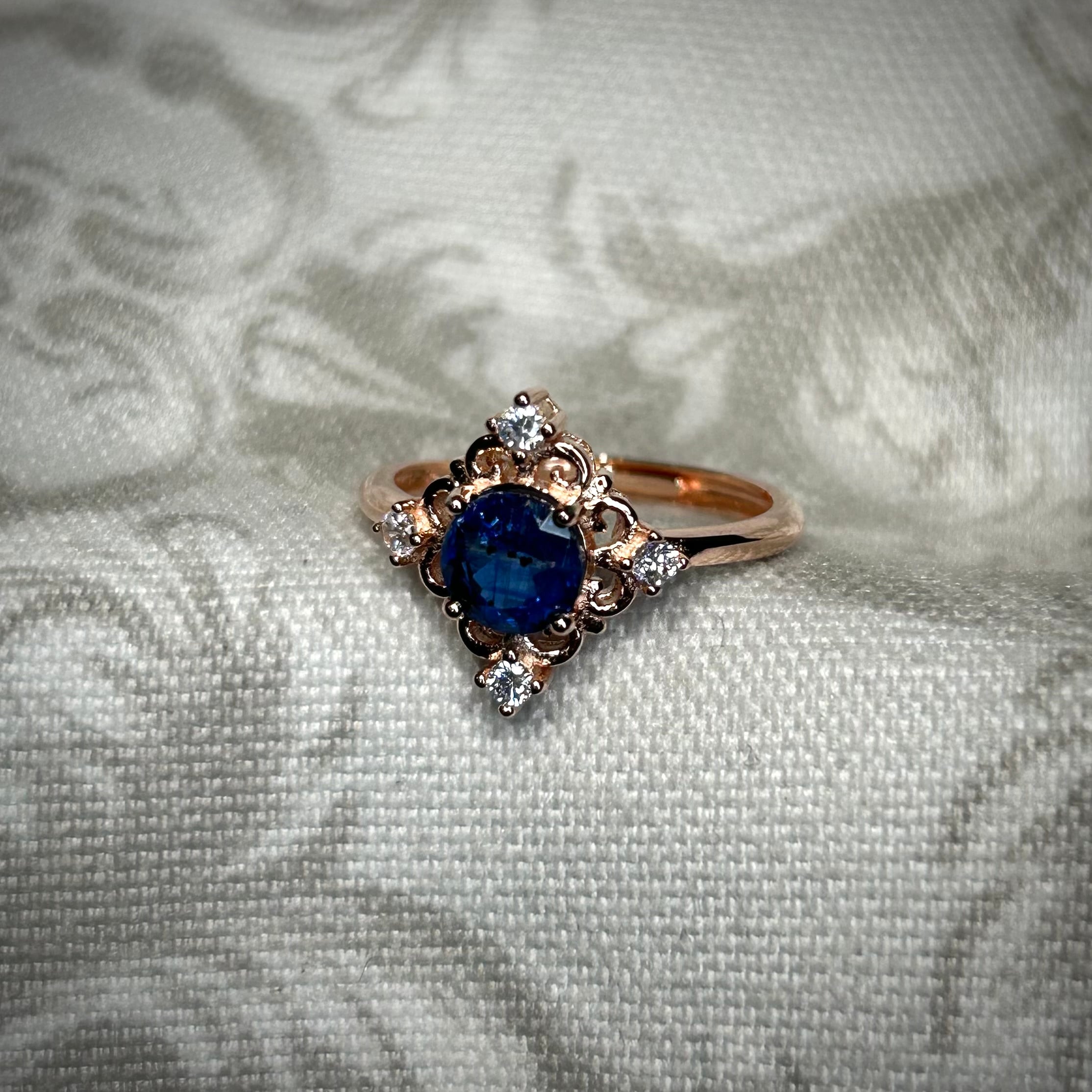 シルバー製ピンクゴールドカラー、カイヤナイトのアンティークデザインリング。