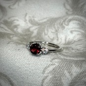 シルバー製 ガーネット スリーストーンリング 1月誕生石 フリーサイズ