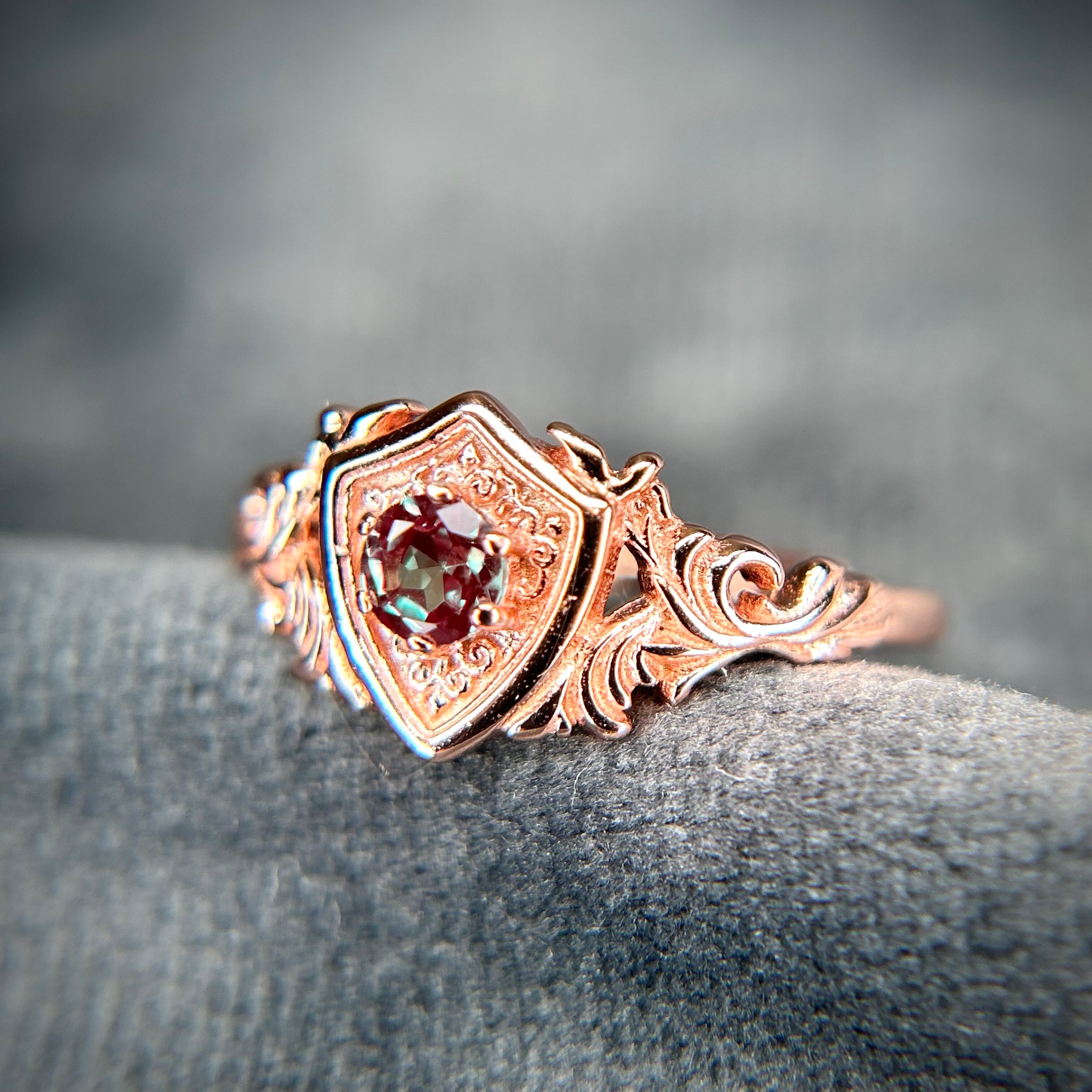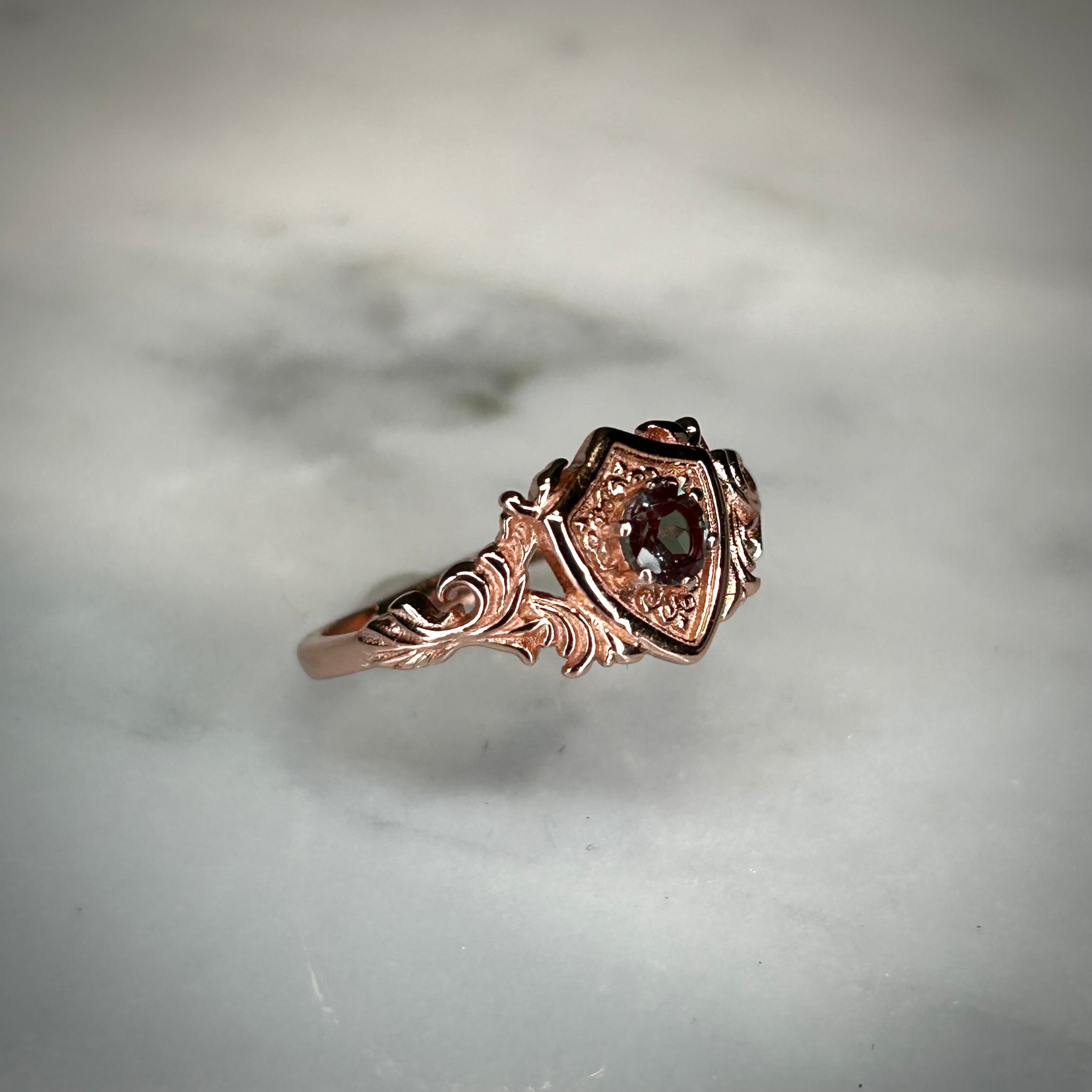 シルバー製ピンクゴールドカラー 合成アレキサンドライト ガーディアンリング 10号以上での使用推奨
