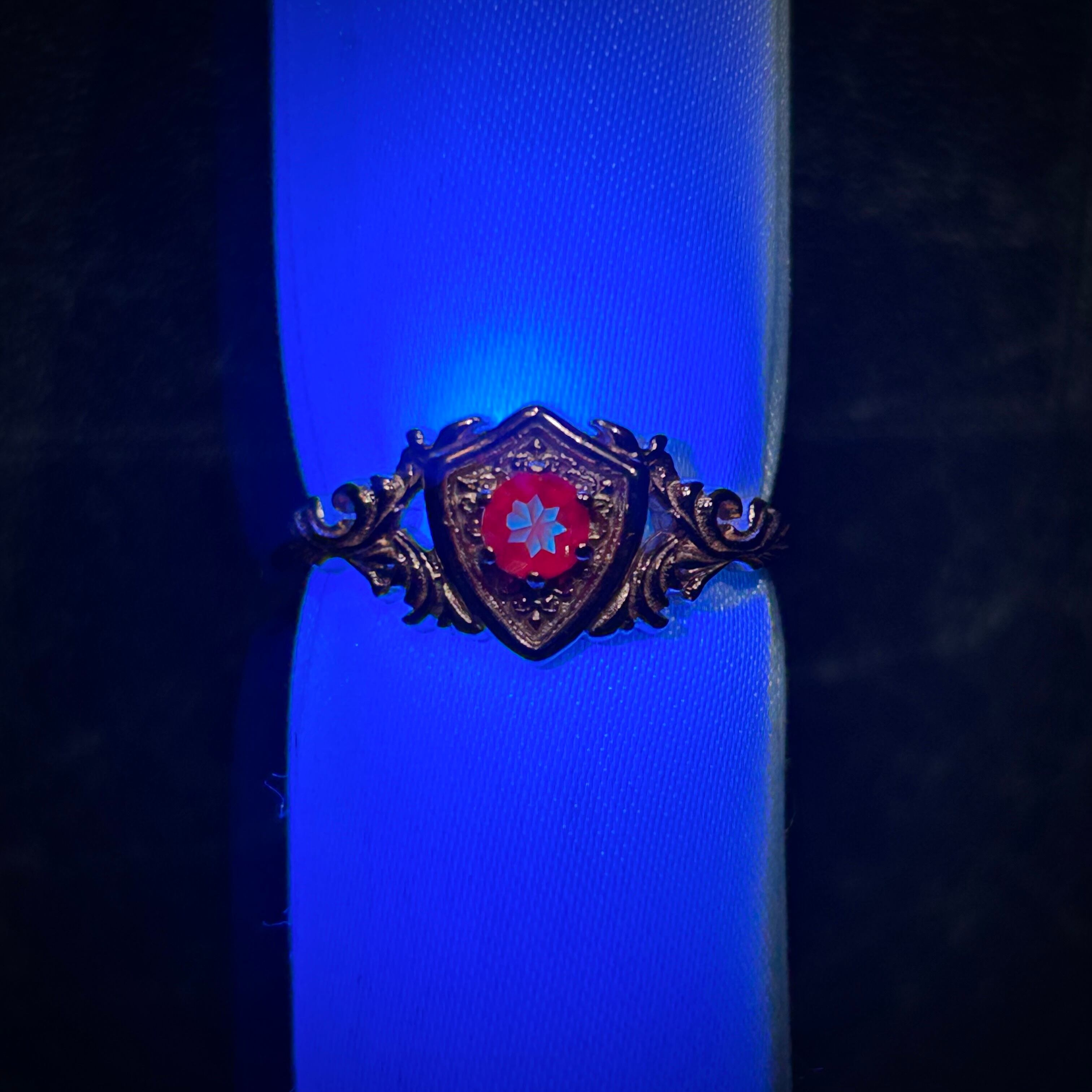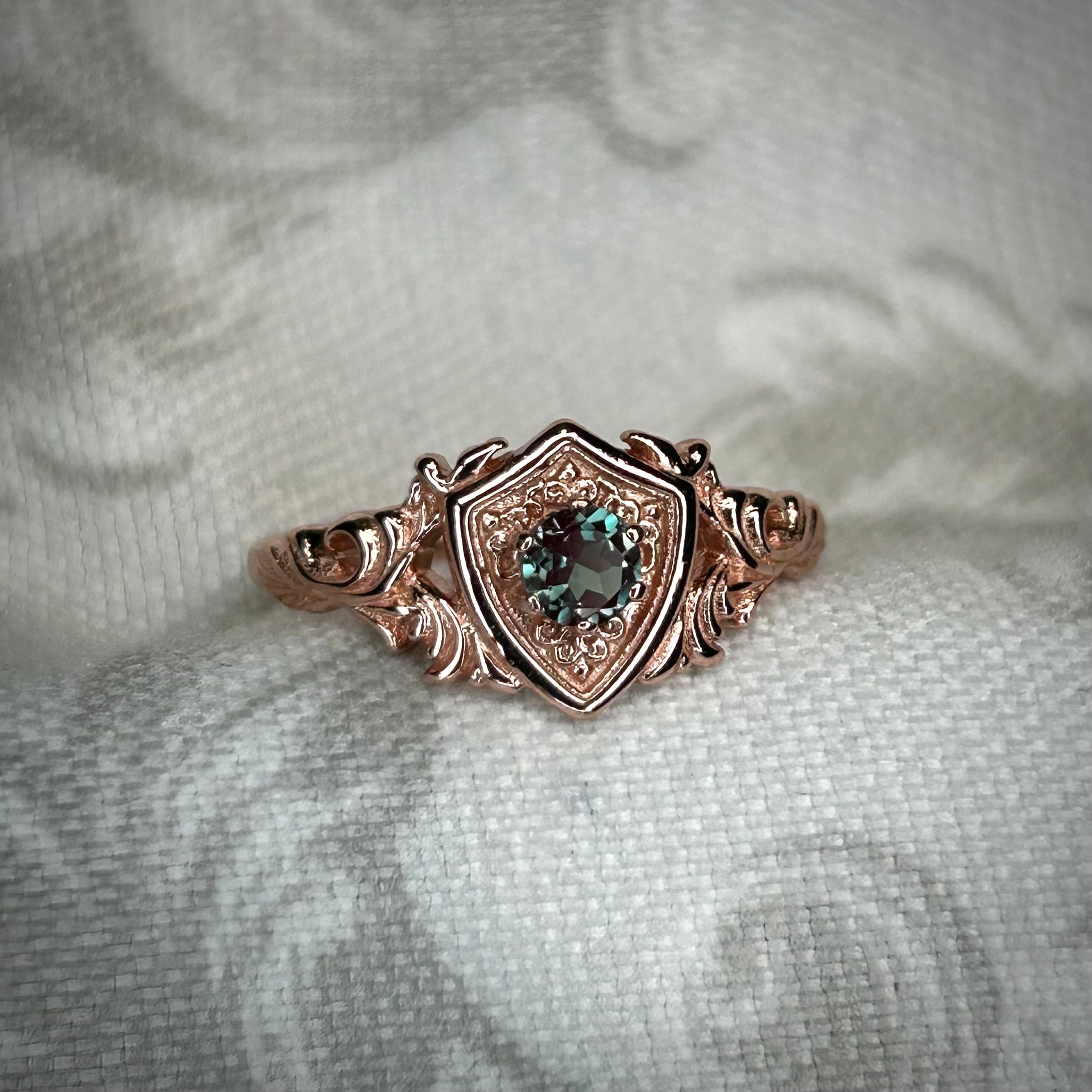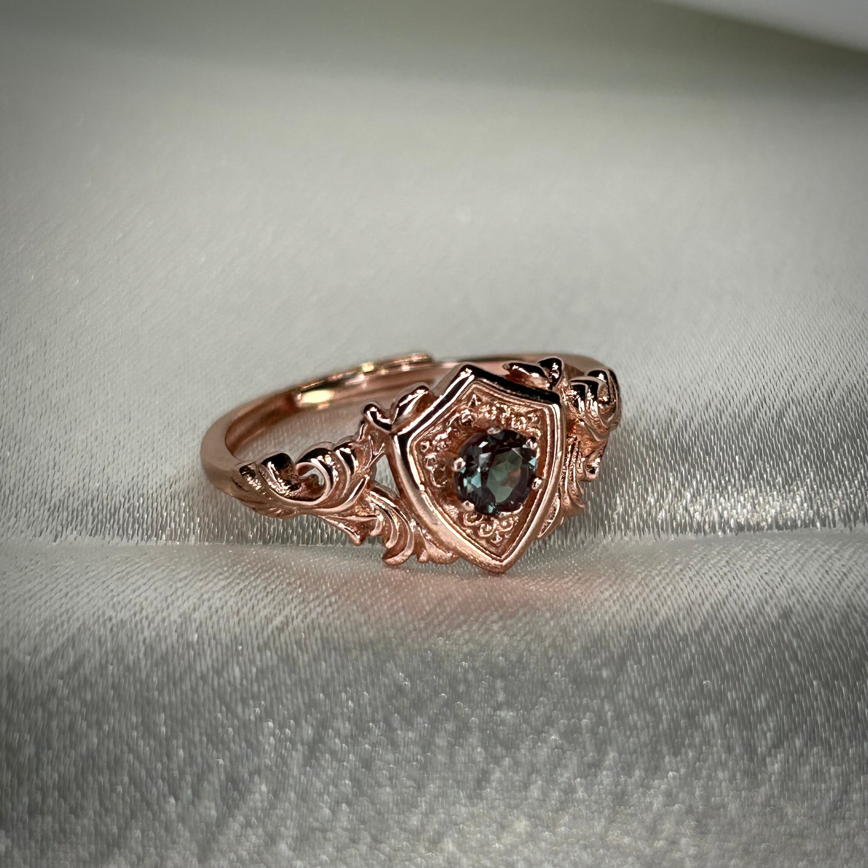 シルバー製ゴールドカラー、合成アレキサンドライトのガーディアンリング。