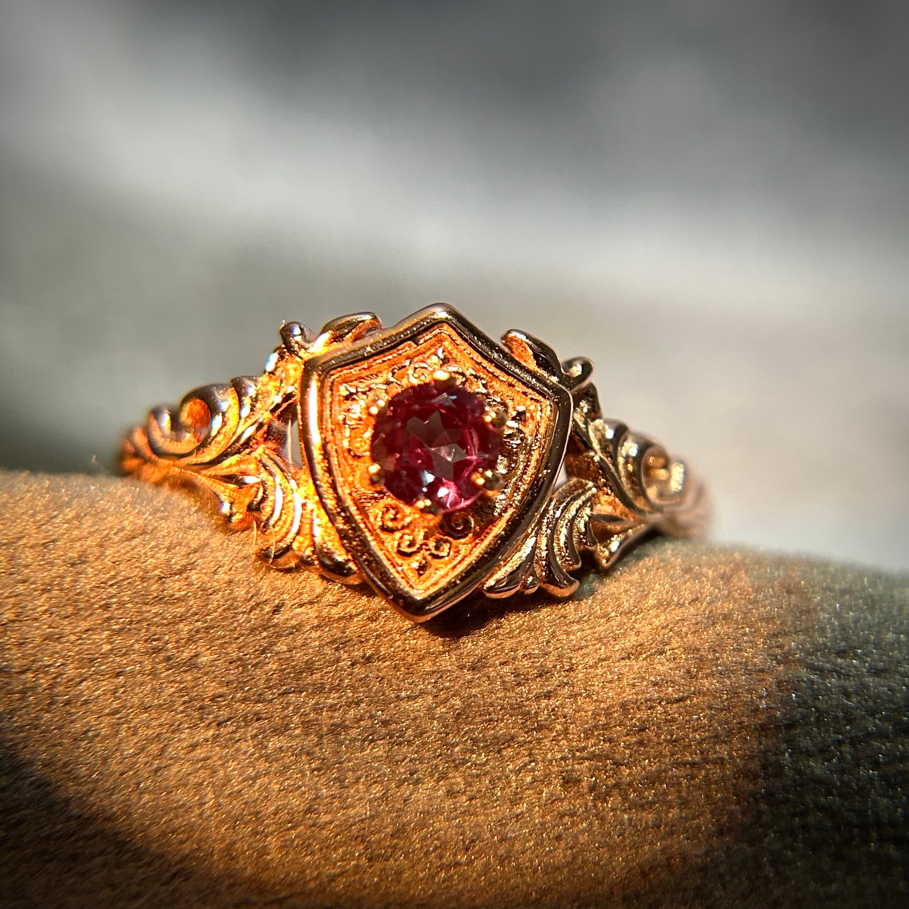 クールな盾モチーフと天然石の組み合わせが守護神のようなガーディアンリング。