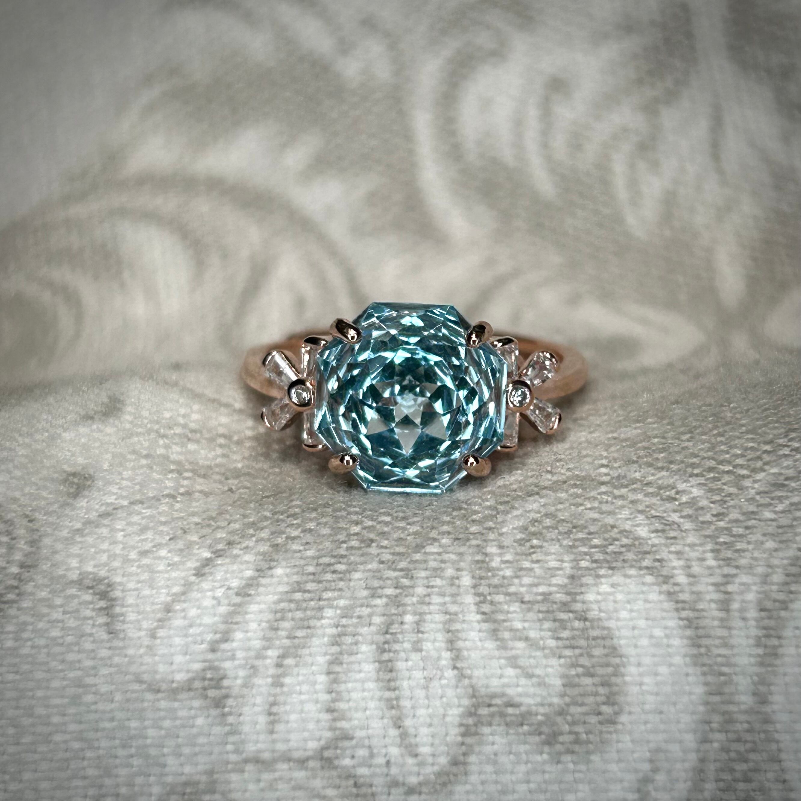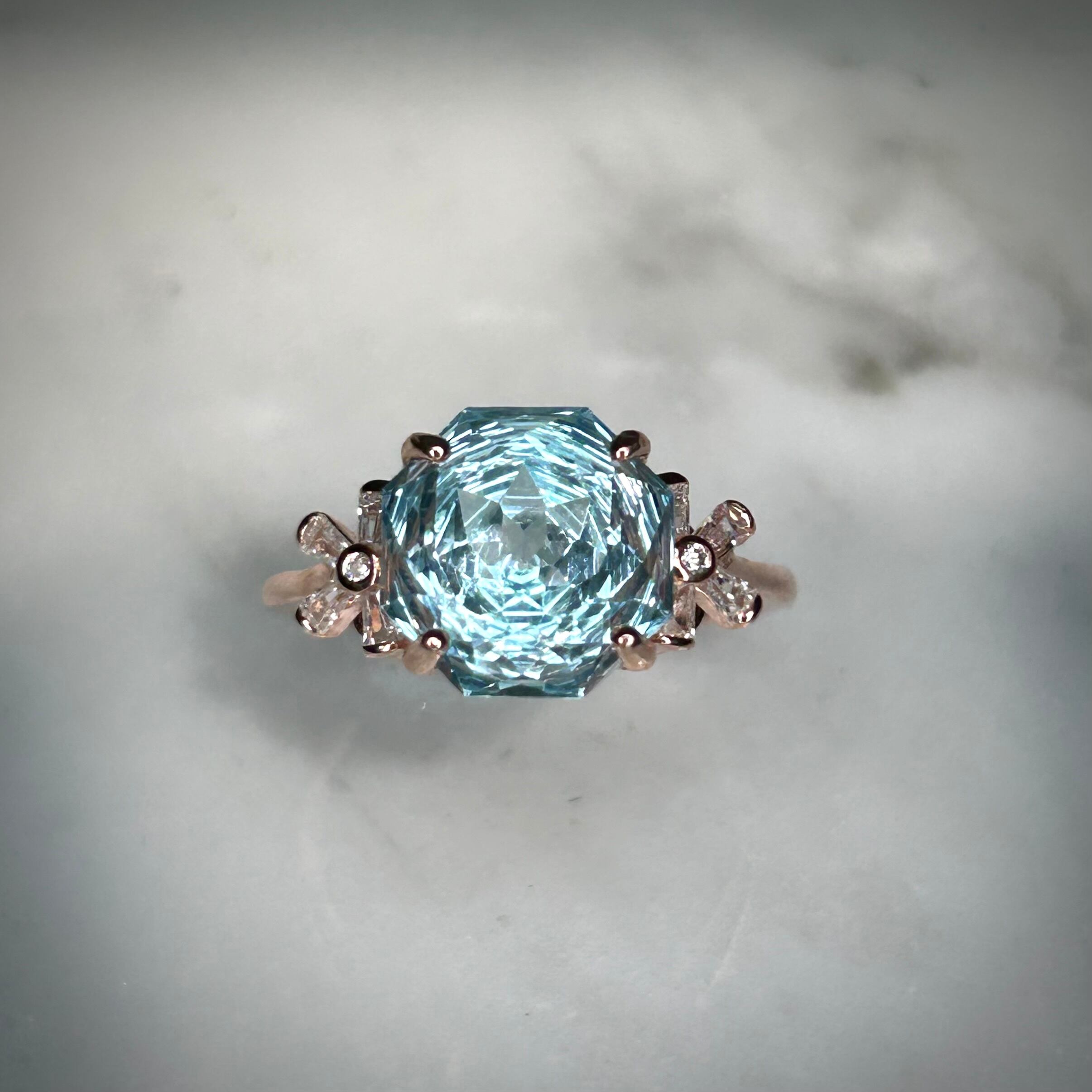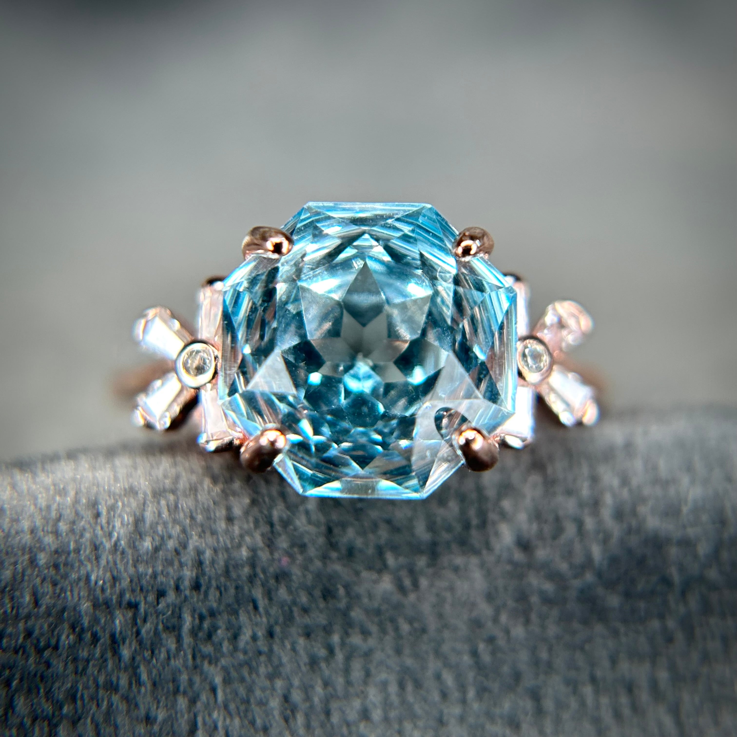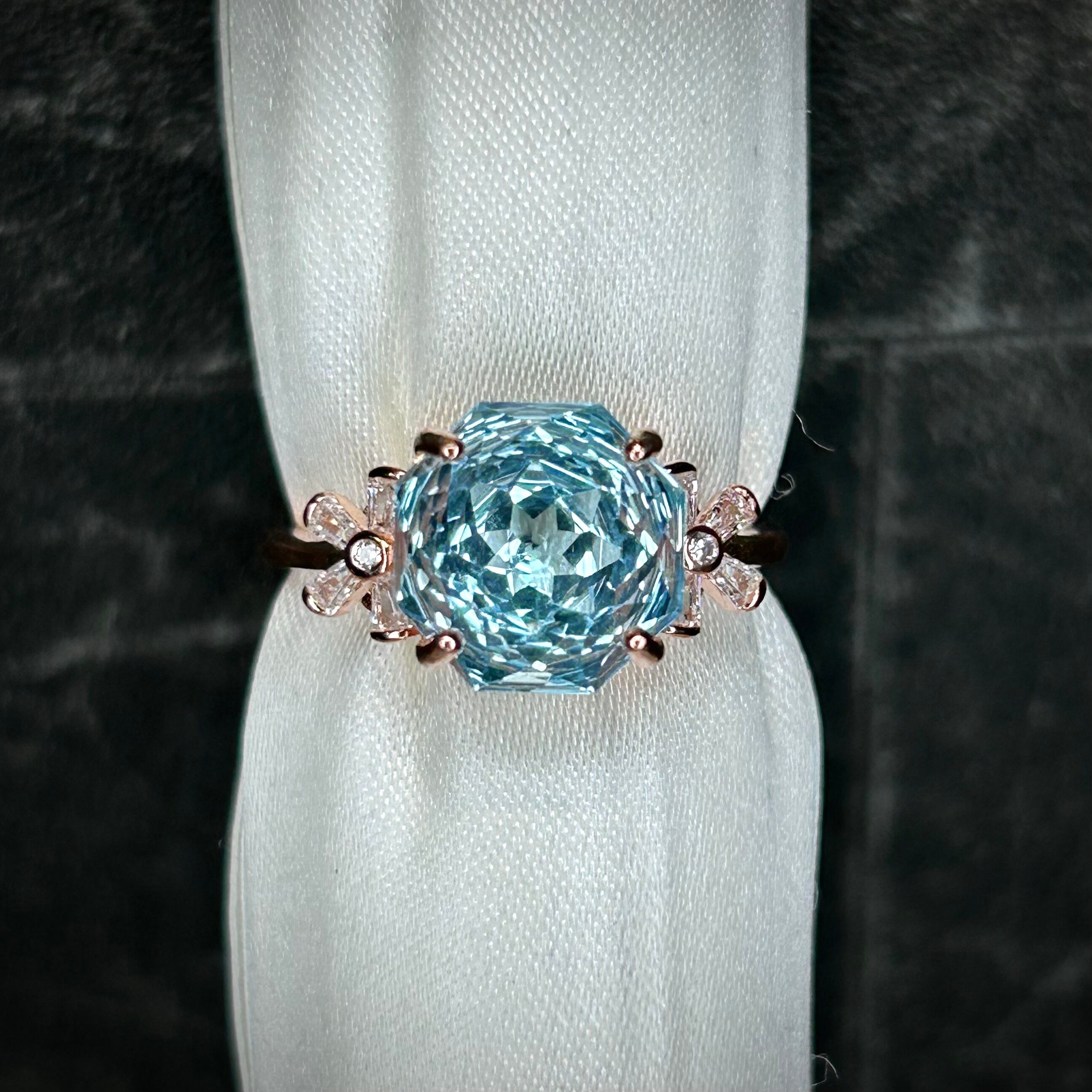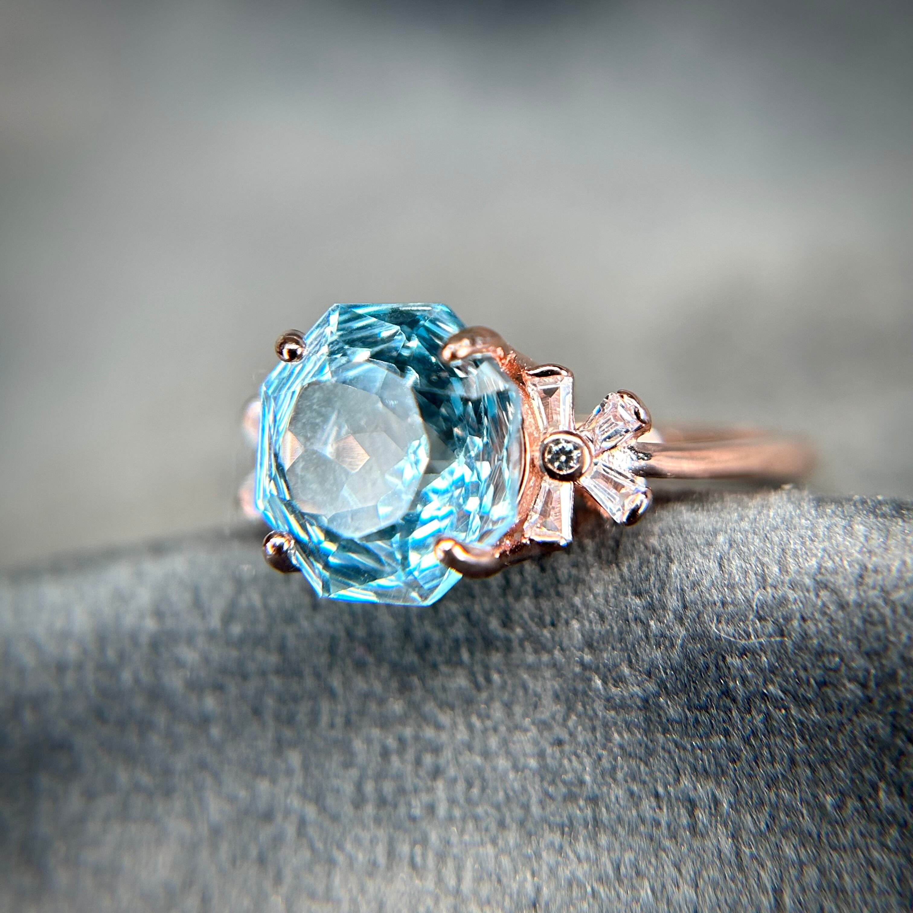 爽やかで煌めきのあるブルーカラーで、八角形のオクタゴンカットのトパーズを使用。