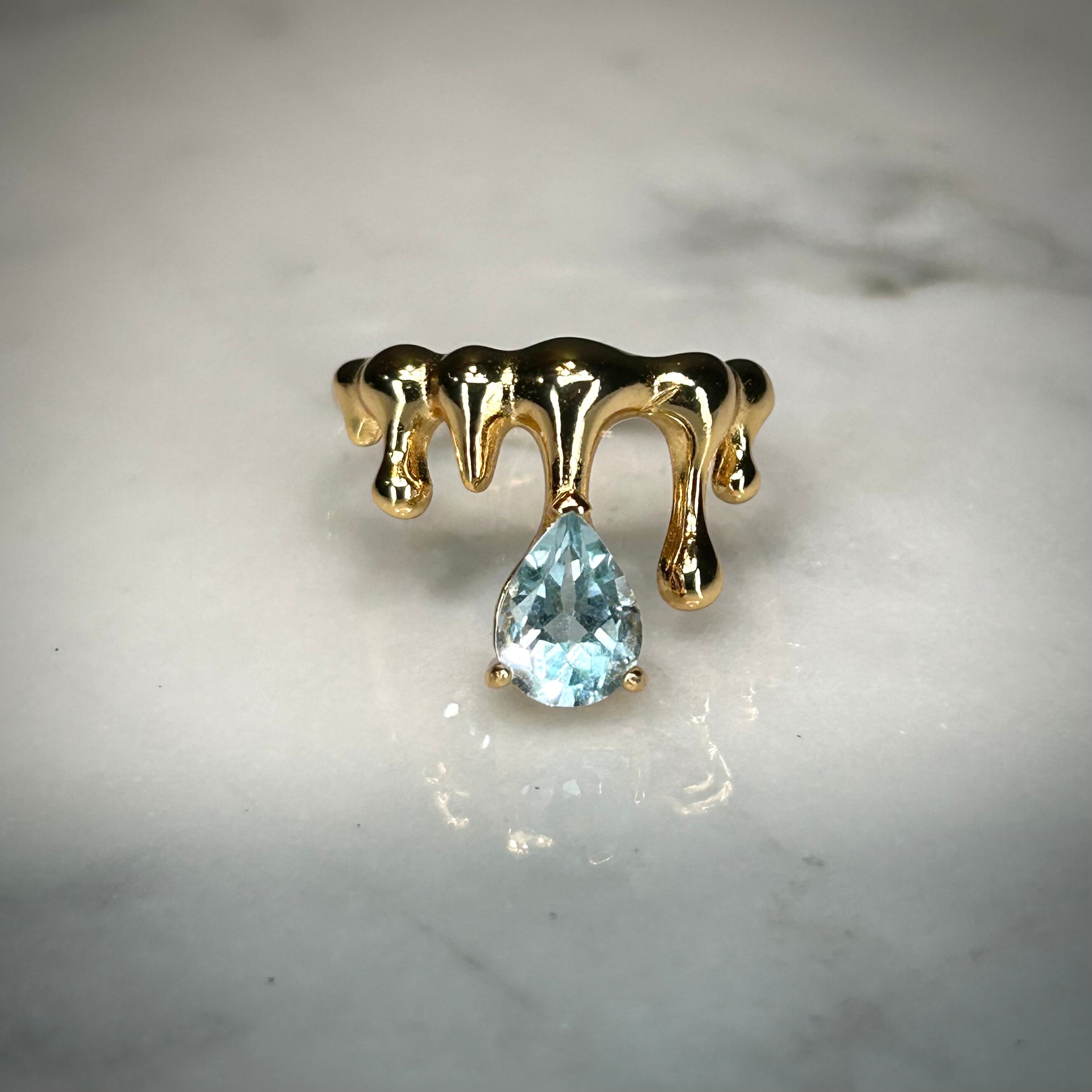 シルバー製ゴールドカラー、トパーズのドロップリング。
