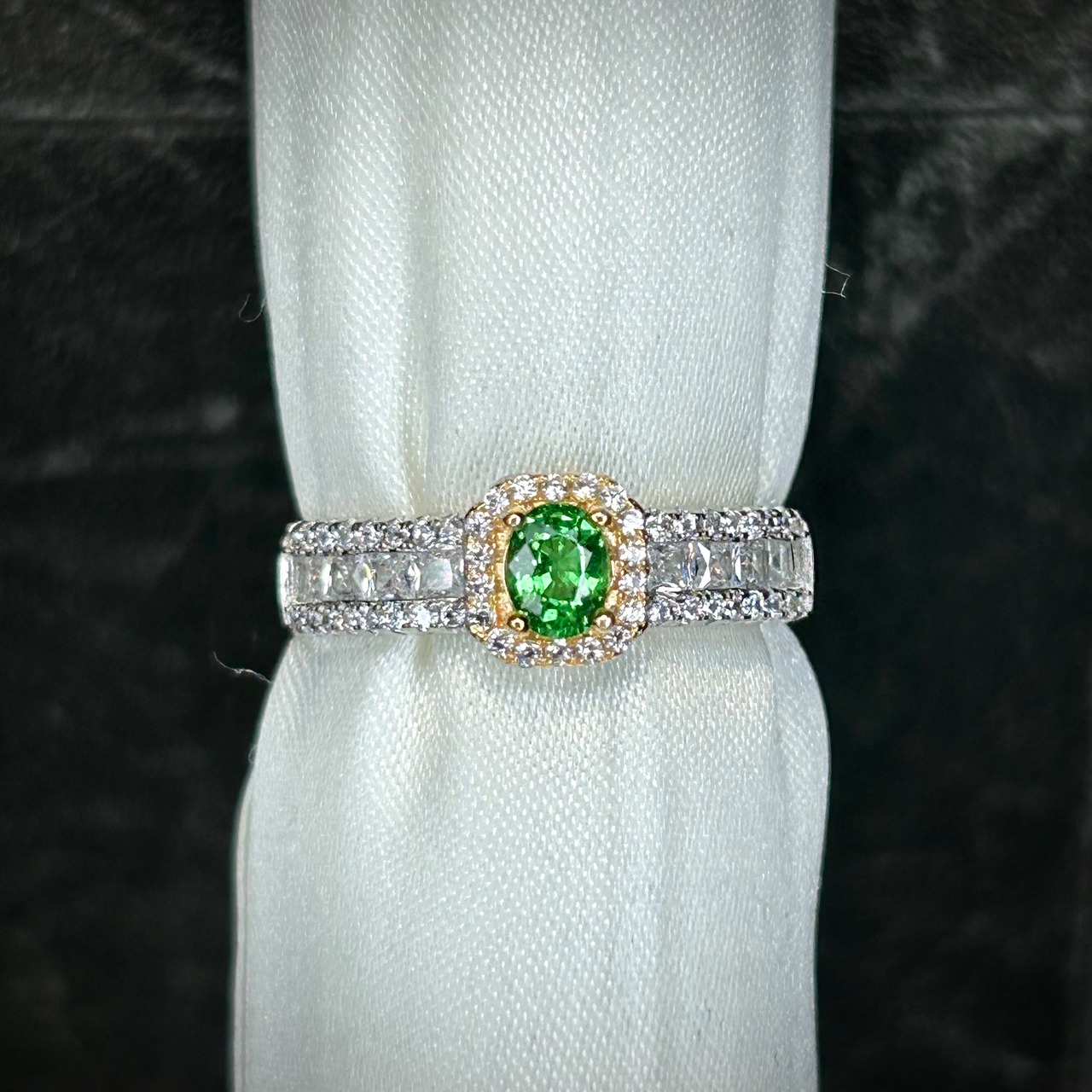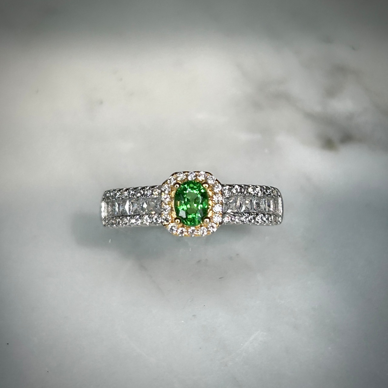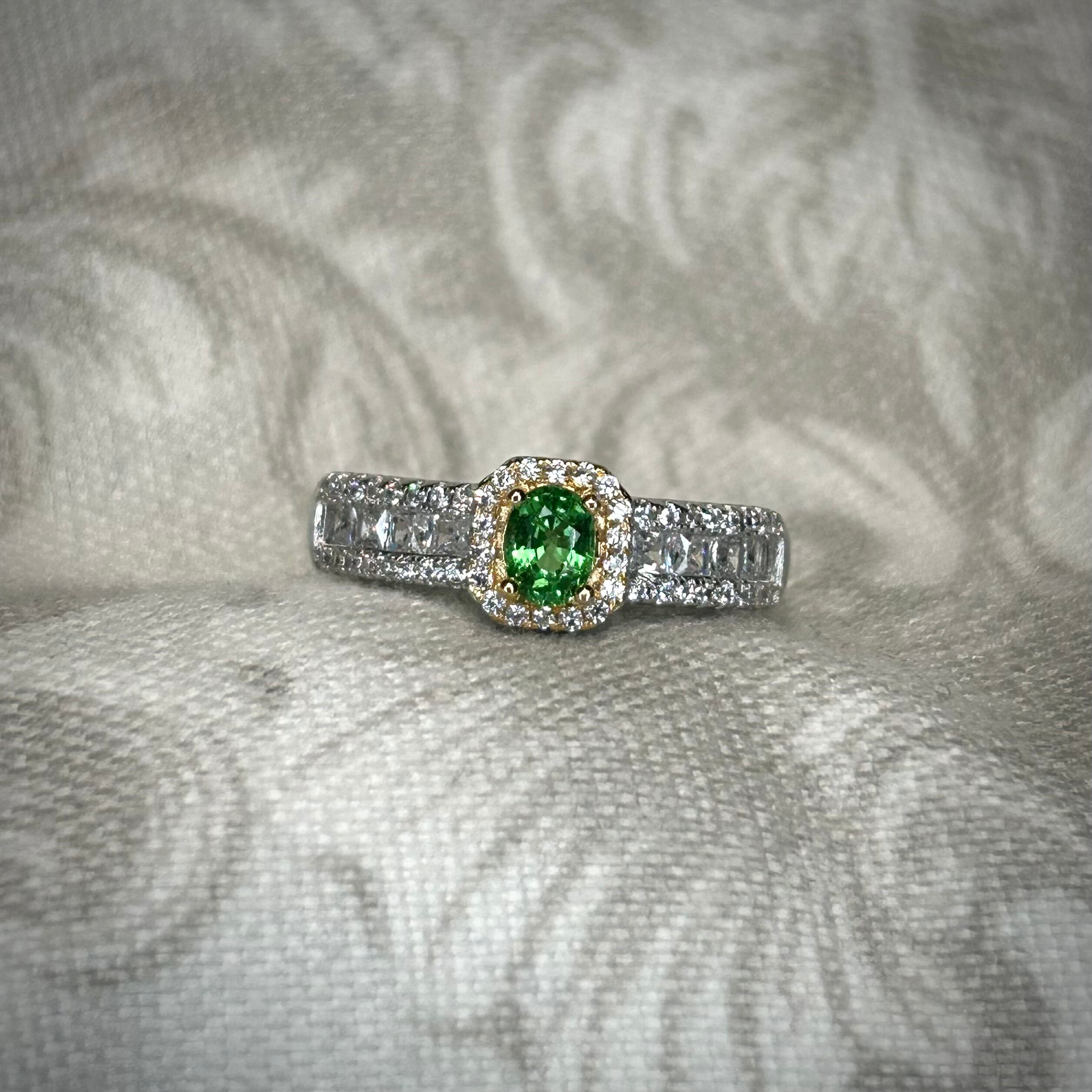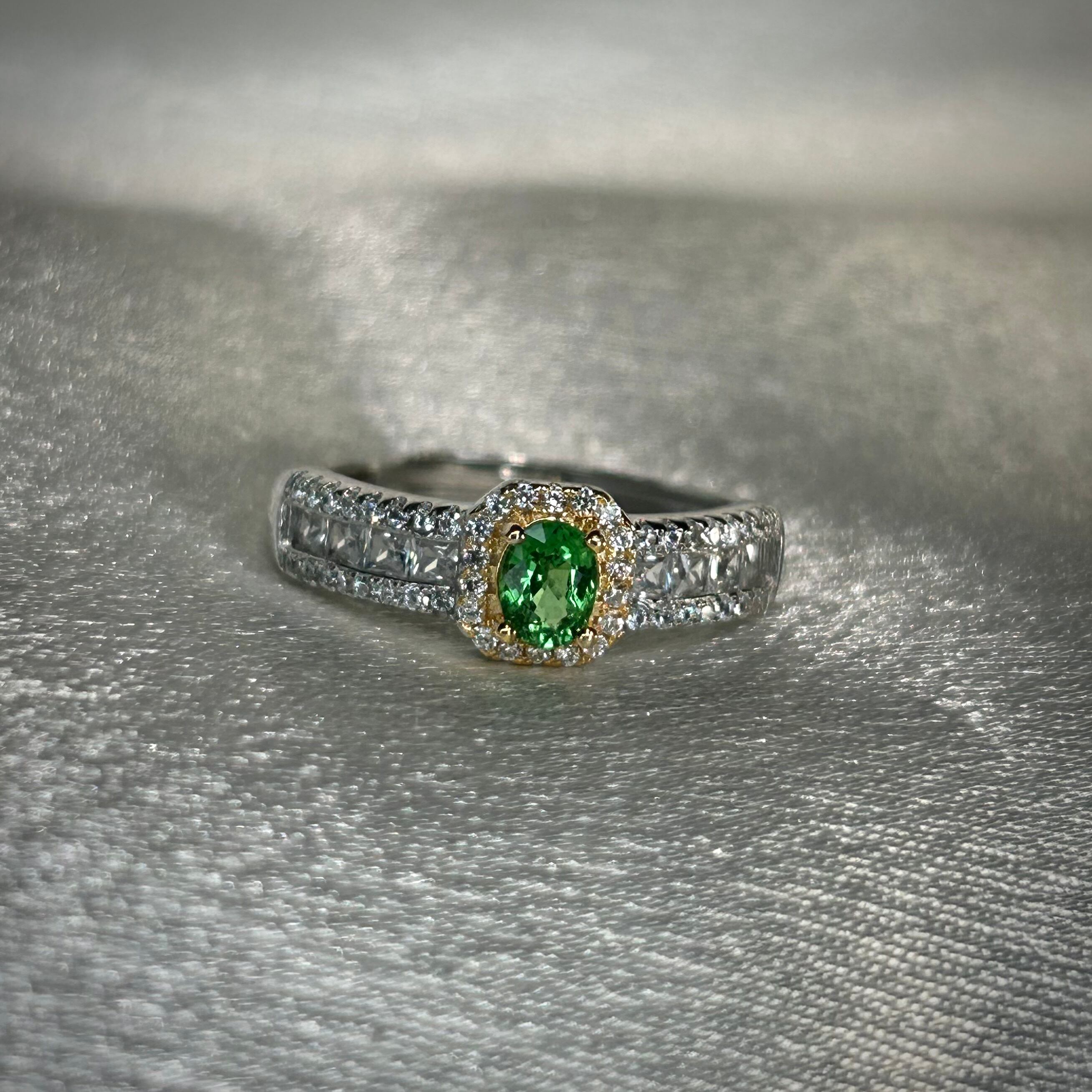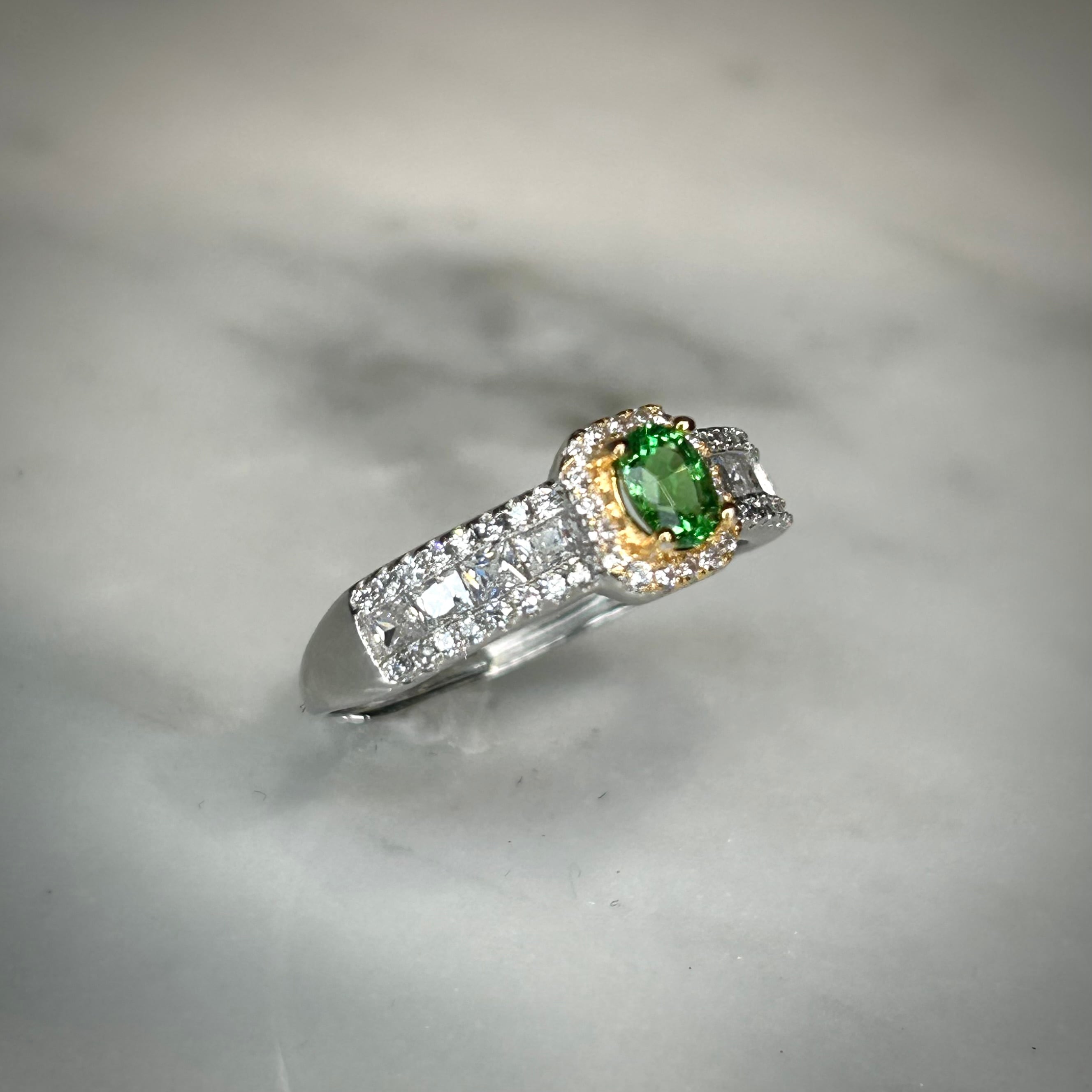 コンビカラーに映える美しいグリーンカラーのツァボライトガーネット。