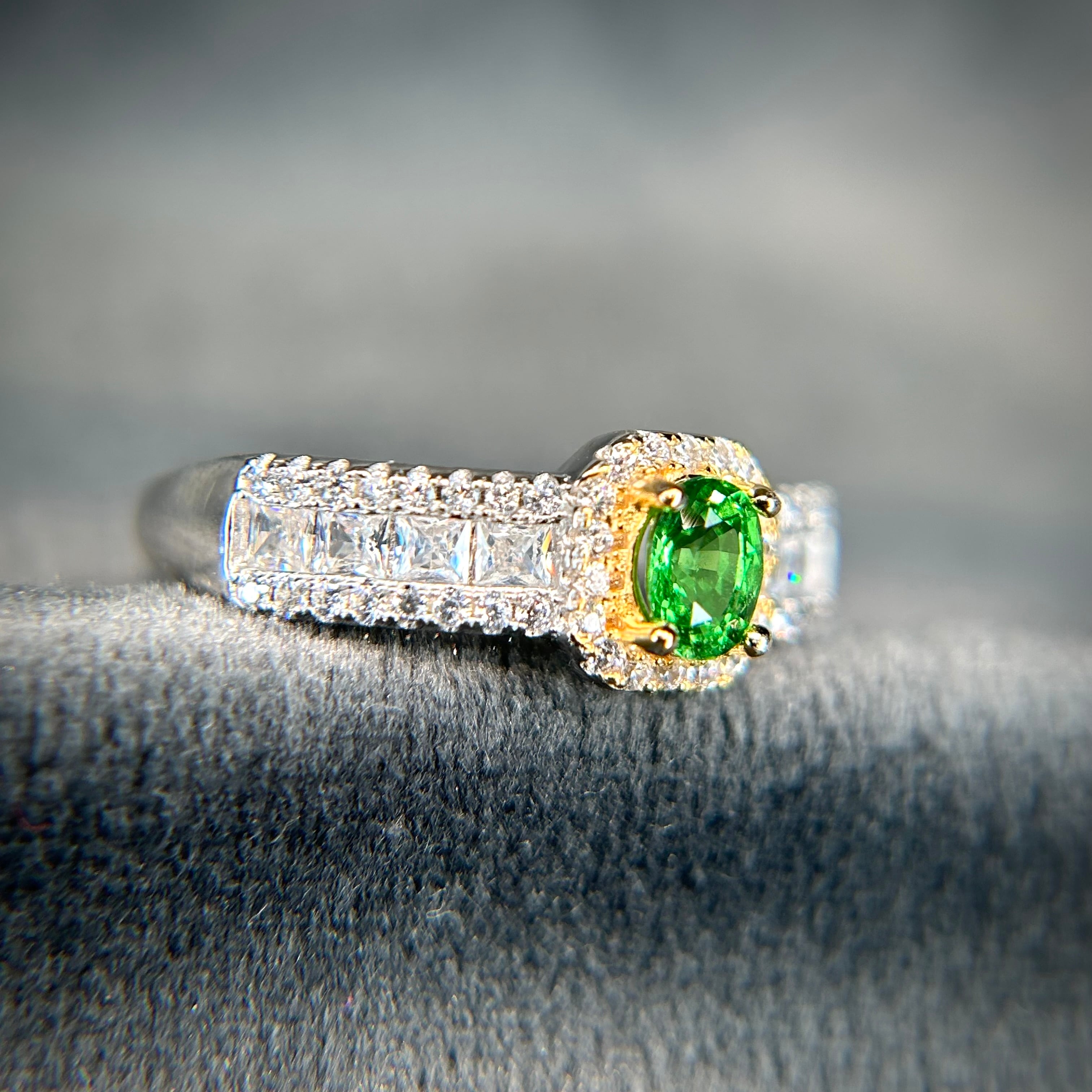 グリーンカラーの煌めくツァボライトガーネットを使用。