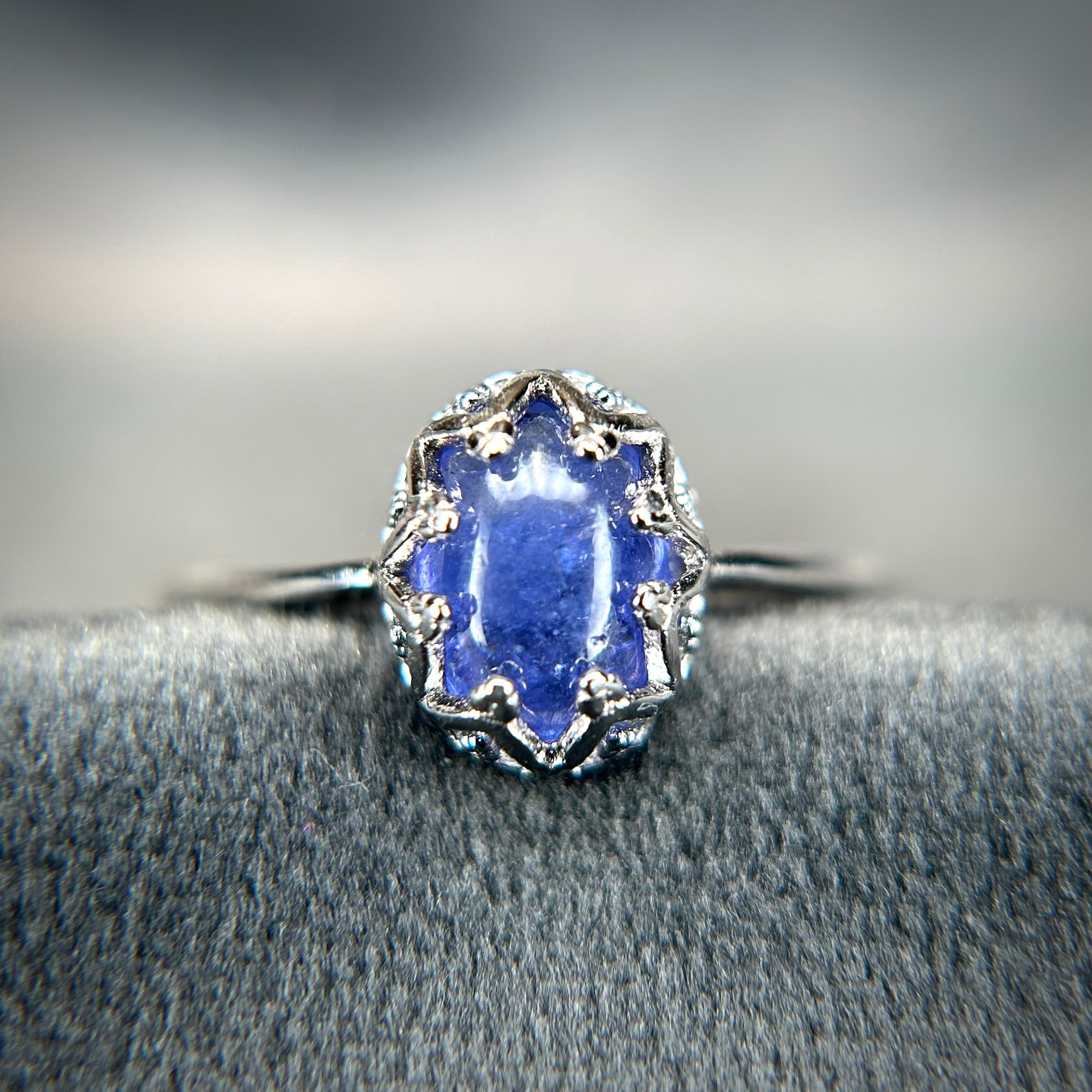 ファセットカットには無い、可愛い雰囲気のカボションカットのタンザナイト。