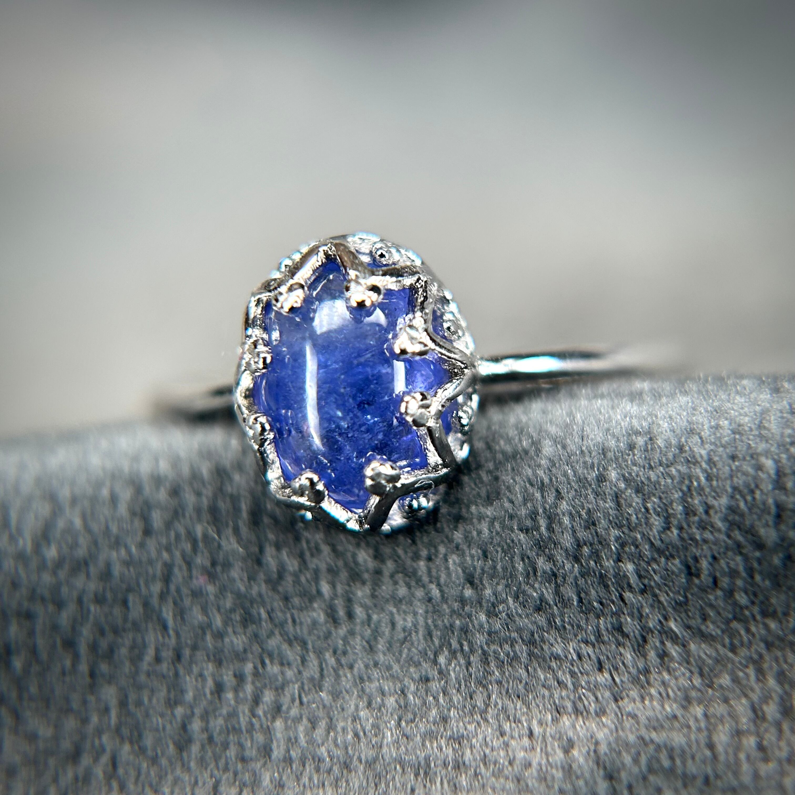 ぷるんと可愛いカボションカットのタンザナイトを使用。