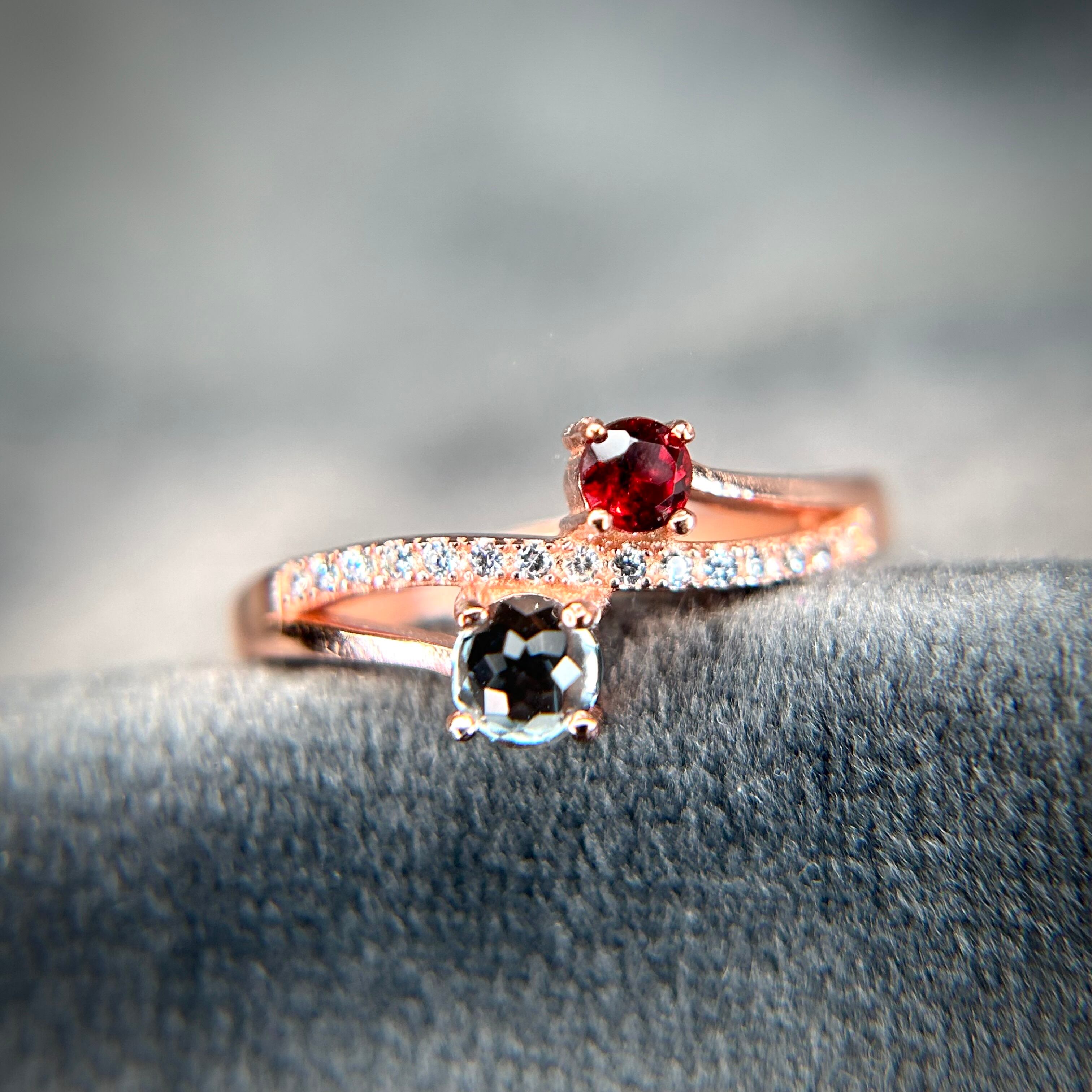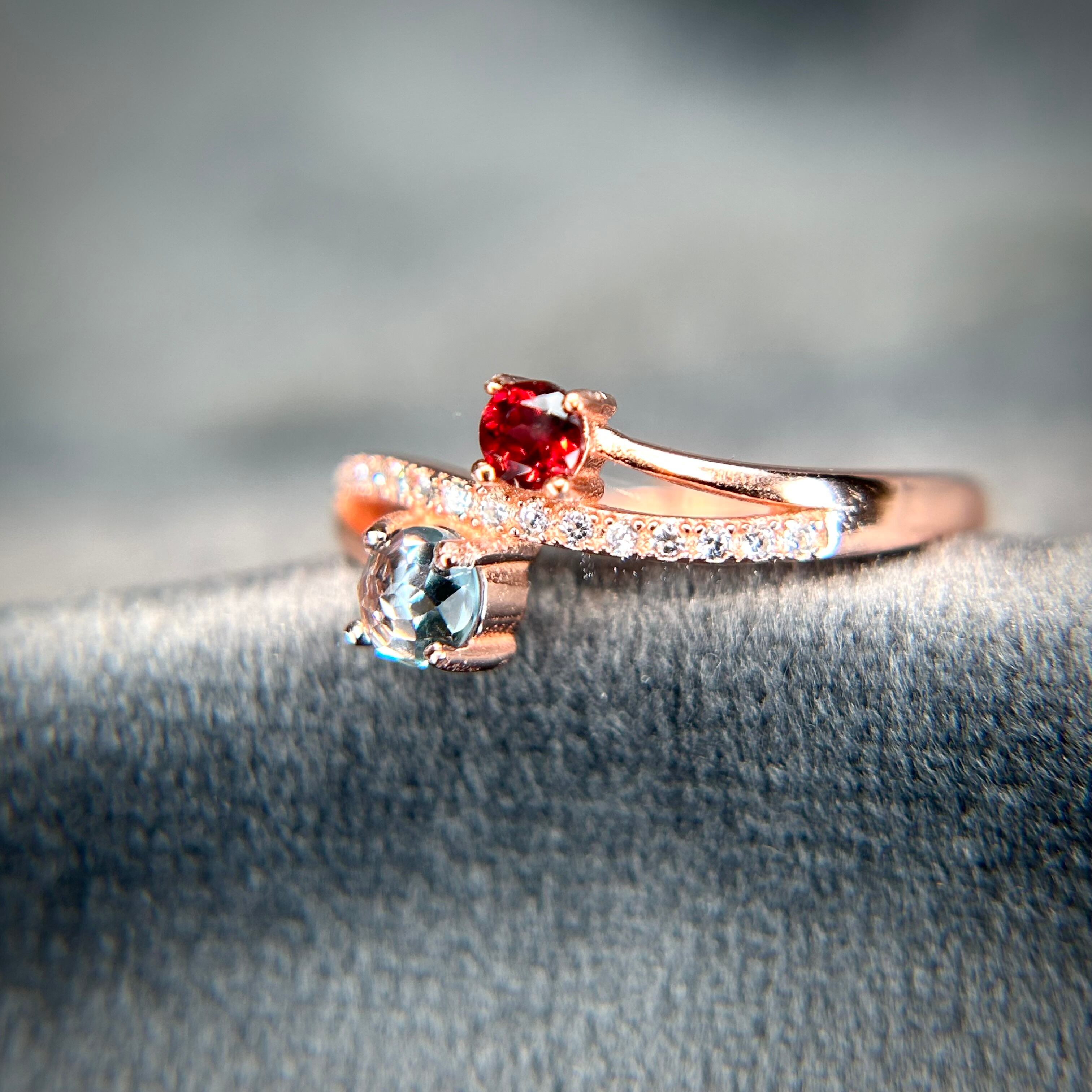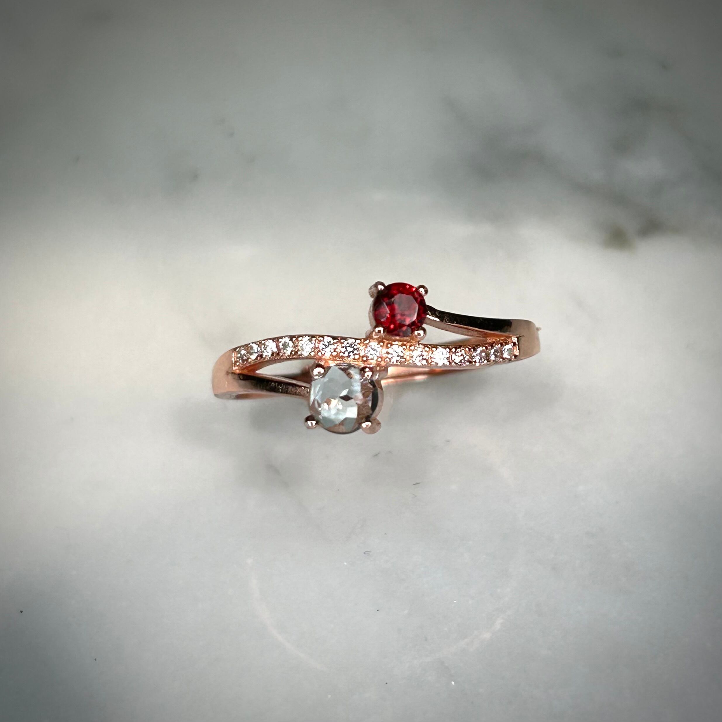 シルバー製ピンクゴールドカラー 、ガーネット&トパーズのツインリング。