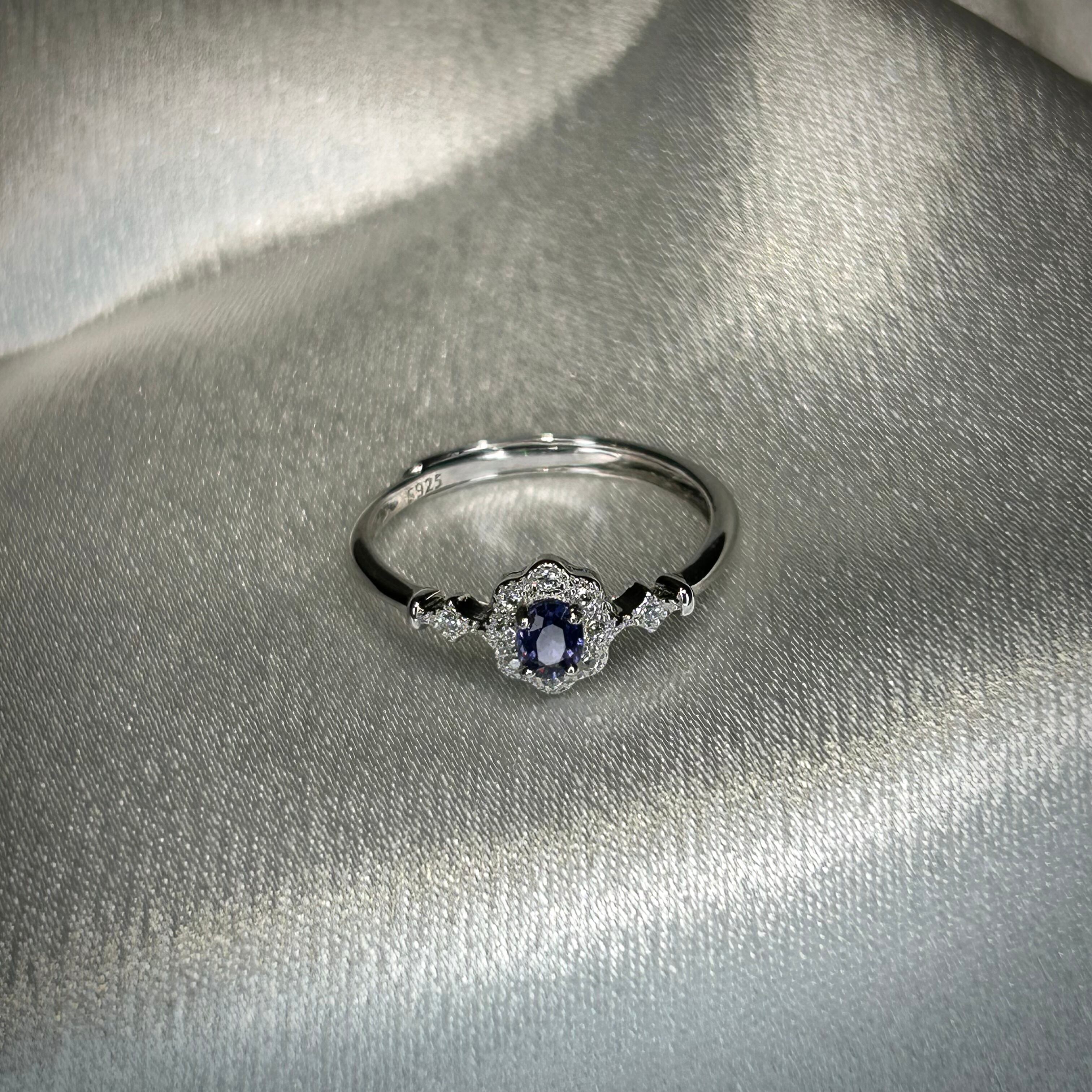 シルバー製 サファイア ミニクラシカルリング 9月誕生石 フリーサイズ