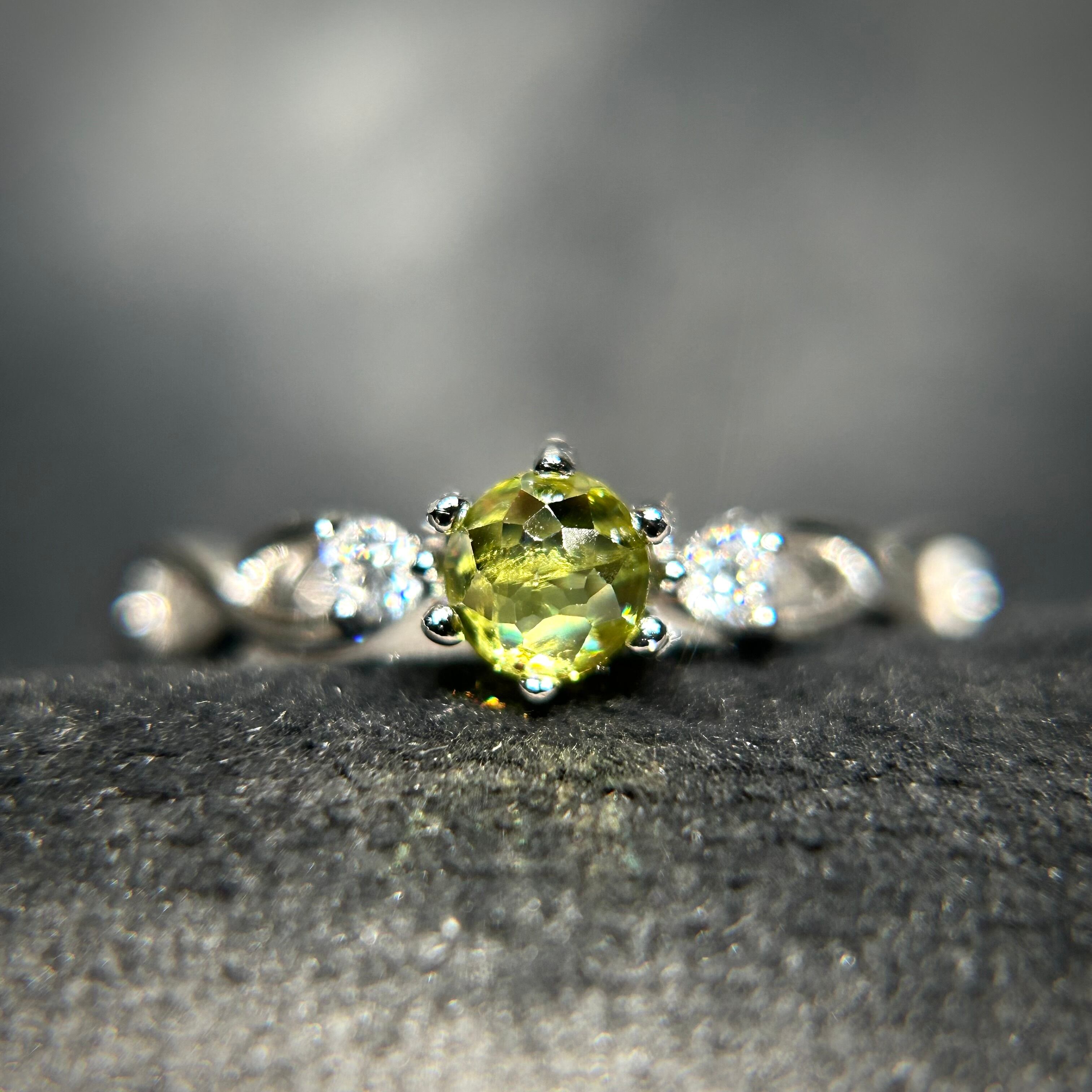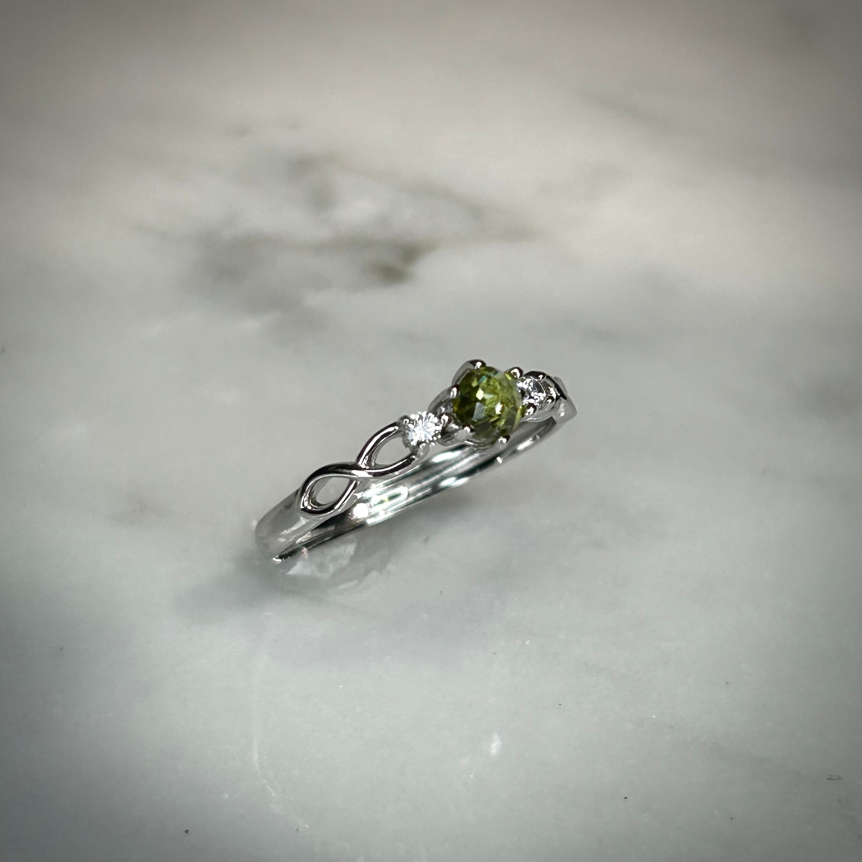 ローズカットでイエローグリーンカラーのスフェーンを使用。